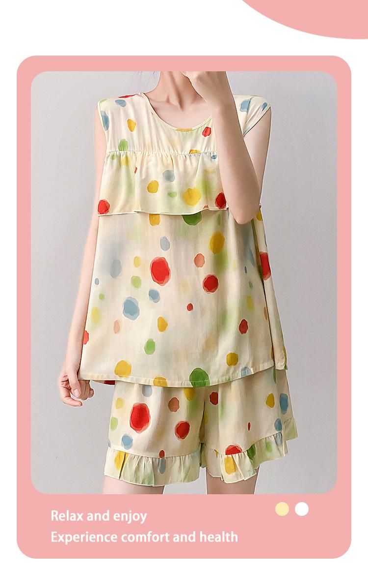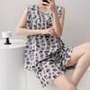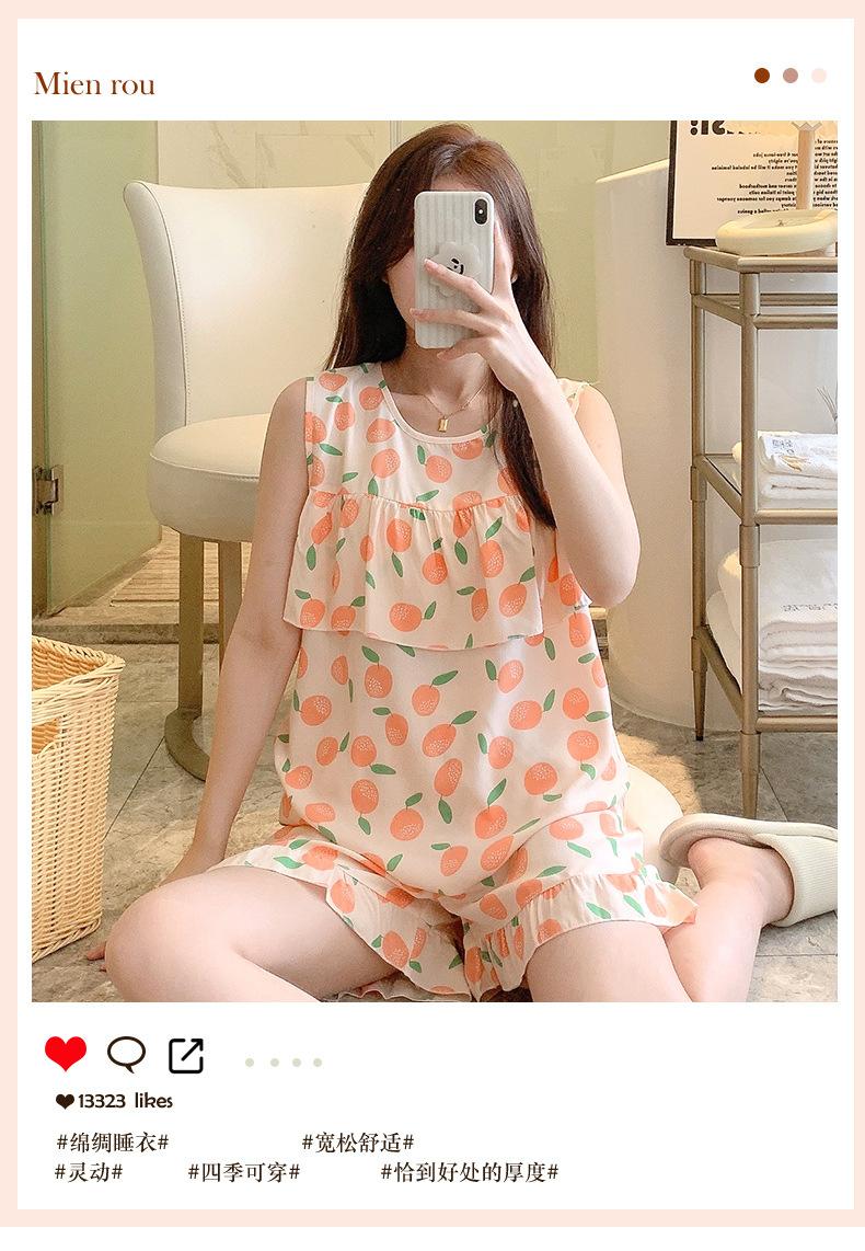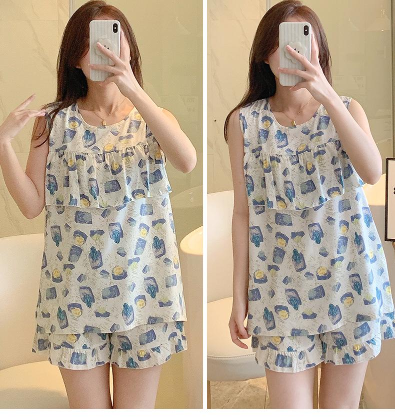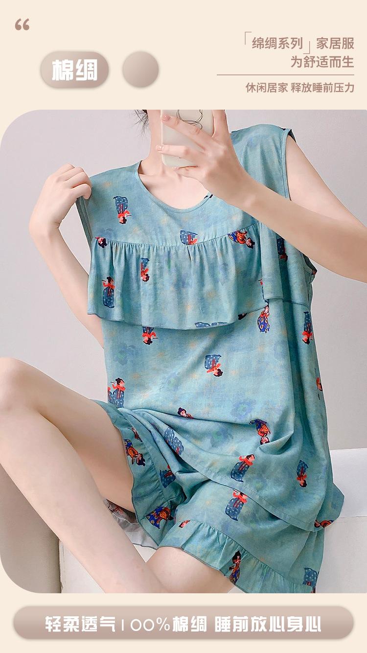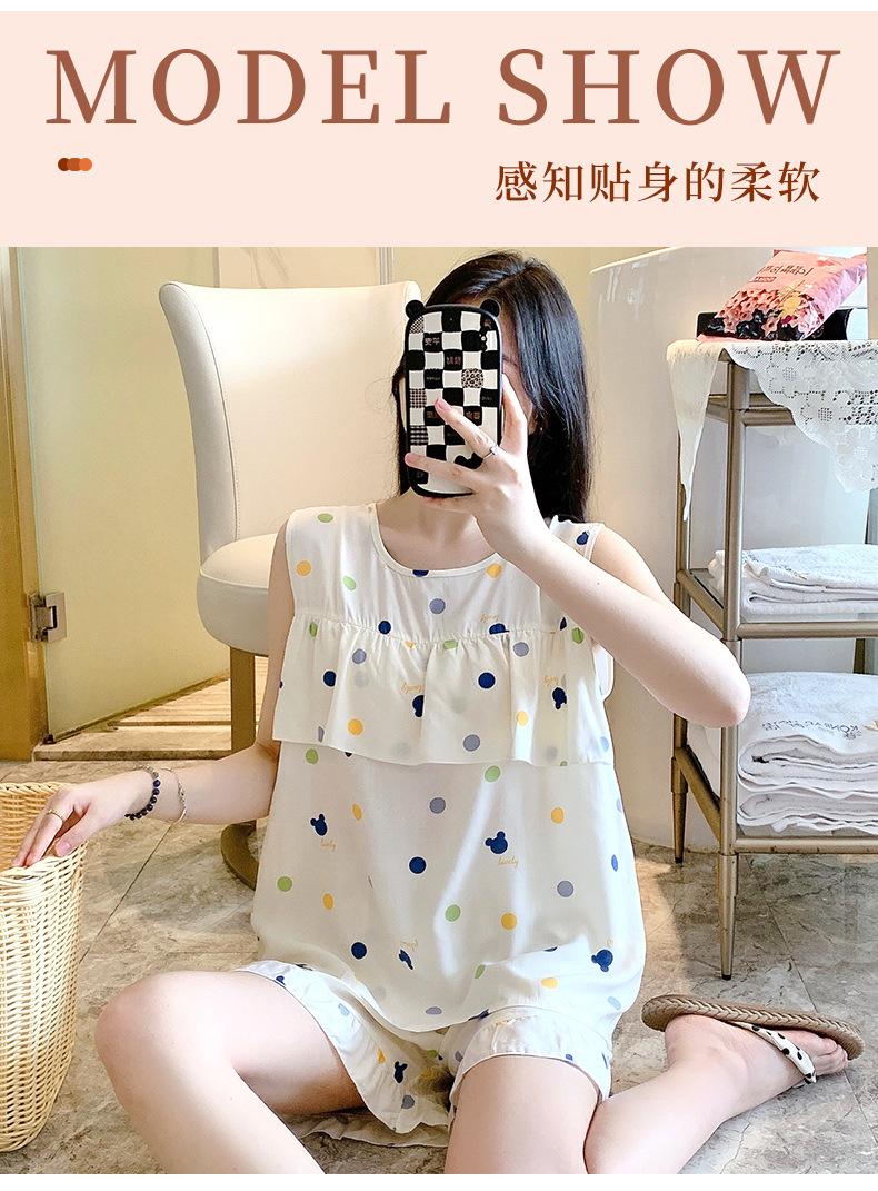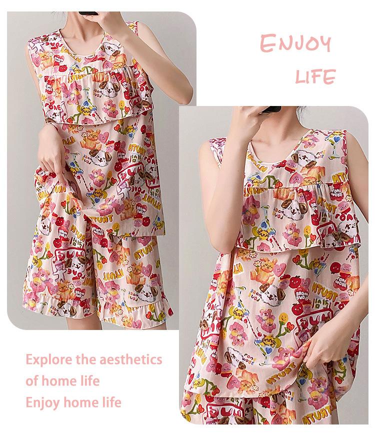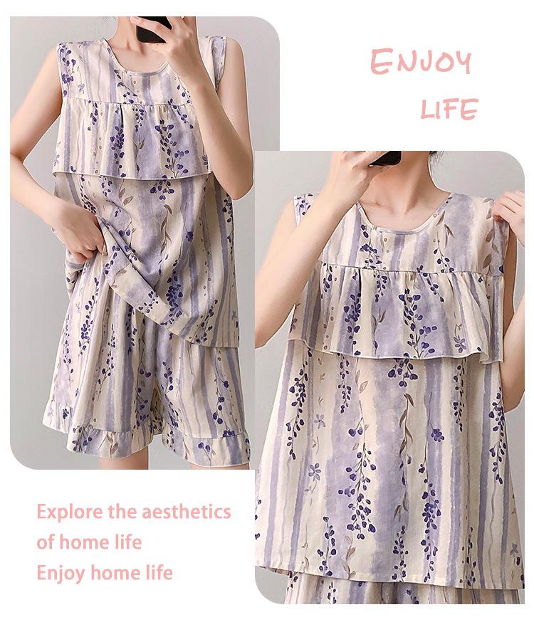 Pijama antigolpes de verano para mujer, ultrafino, de algodón y seda, sin mangas, con tirantes, pantalones cortos, ropa de casa de algodón y seda de tacto fresco.
