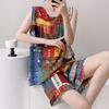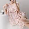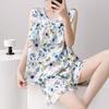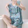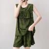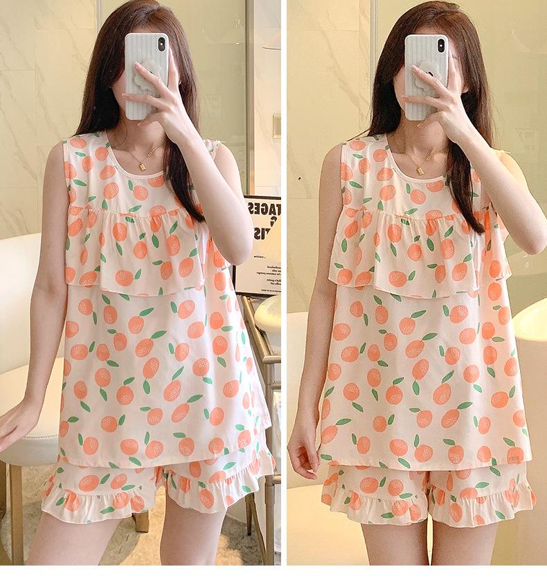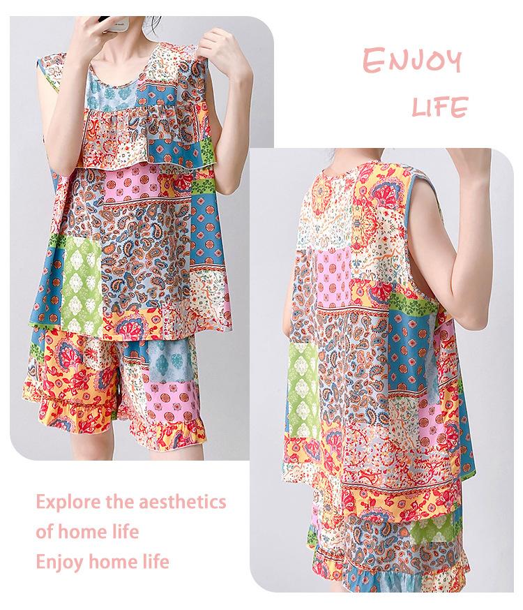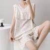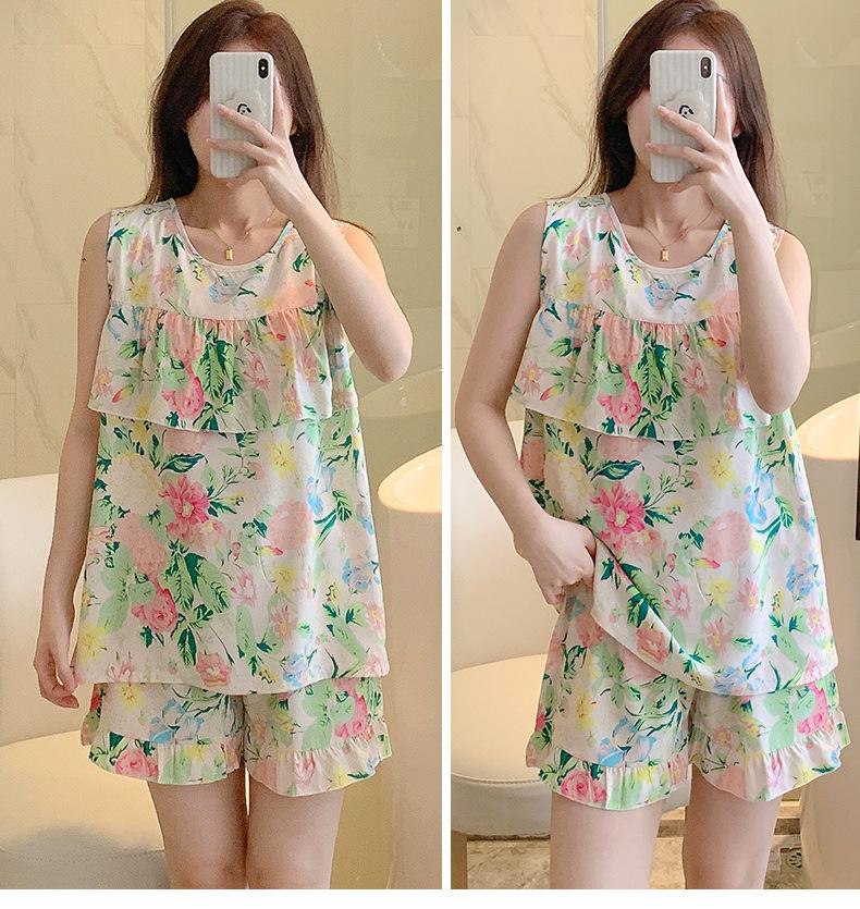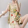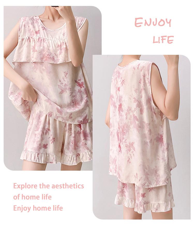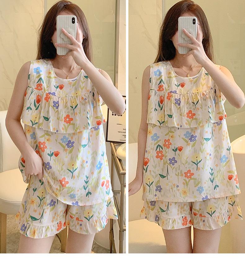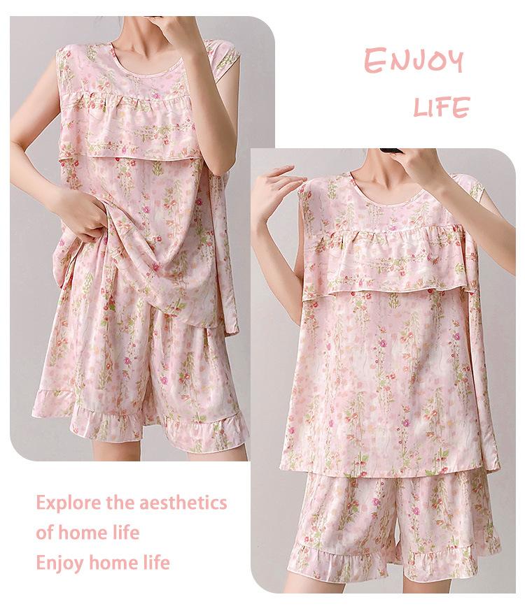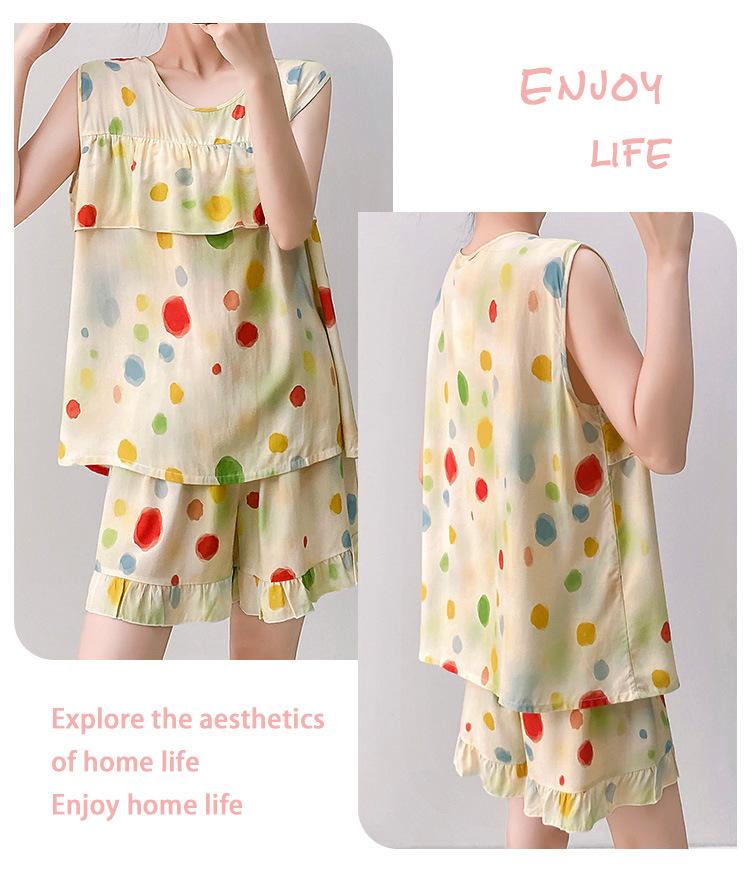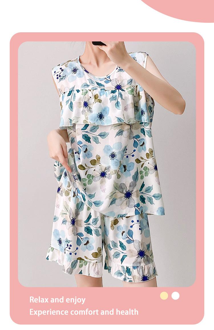 Pijama antigolpes de verano para mujer, ultrafino, de algodón y seda, sin mangas, con tirantes, pantalones cortos, ropa de casa de algodón y seda de tacto fresco.