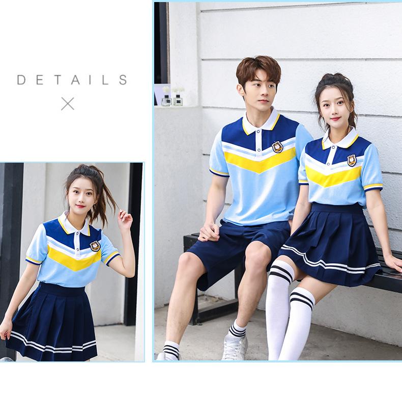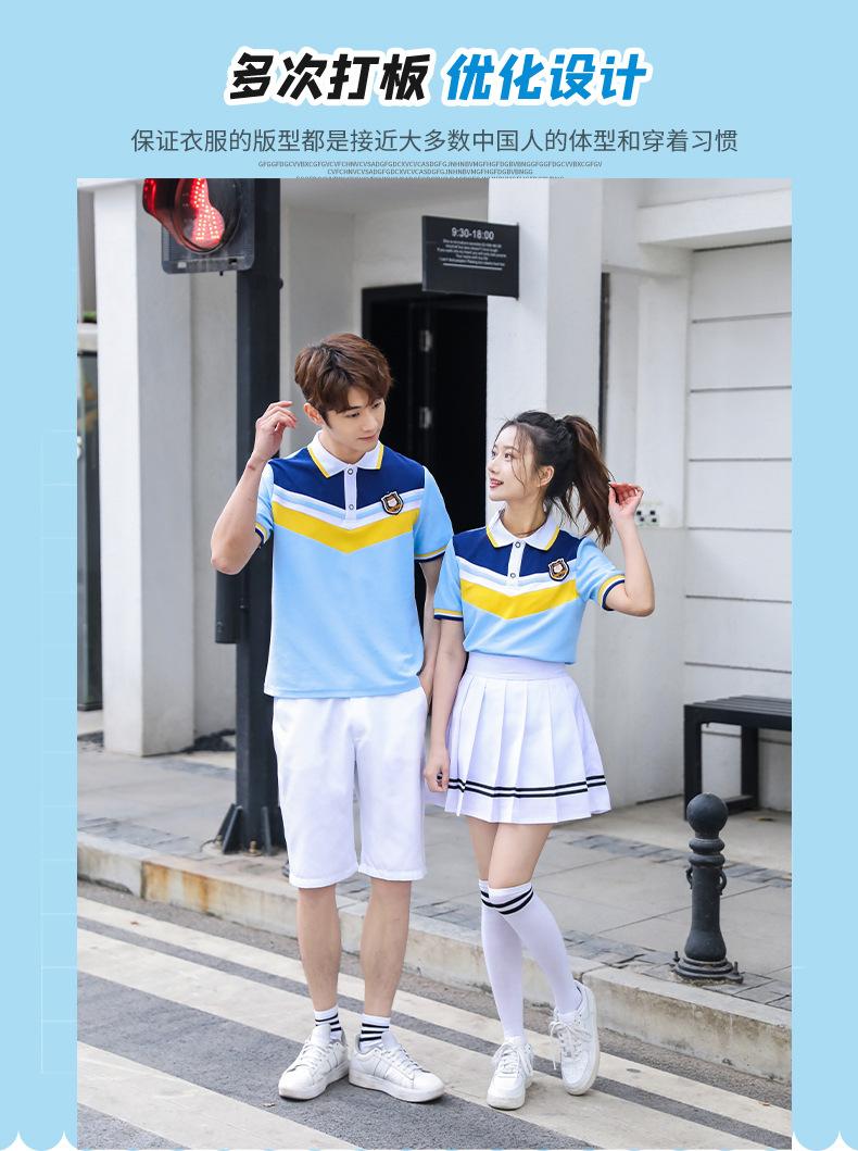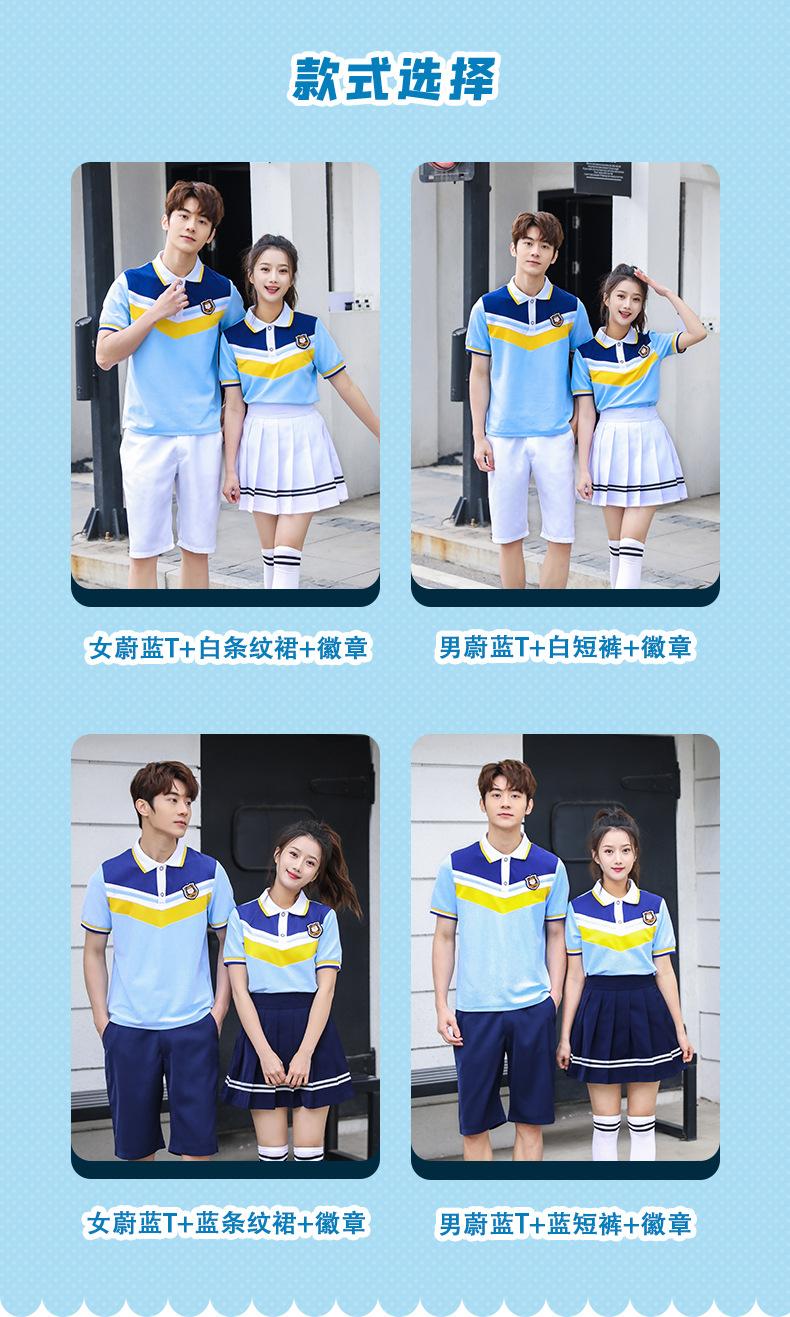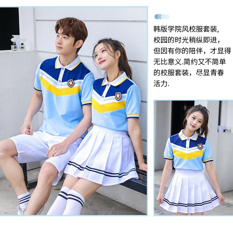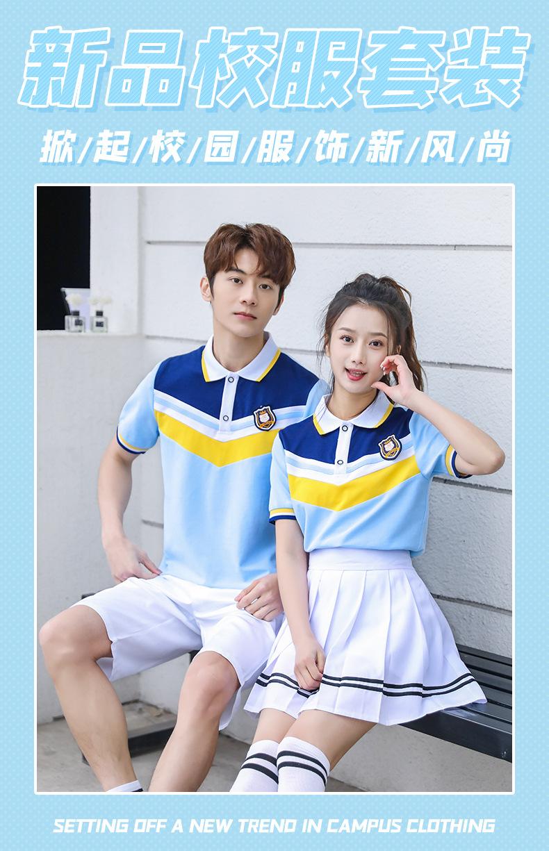 Uniforme de clase para estudiante de secundaria estilo universitario traje de uniforme escolar camiseta azul nueva foto de graduación del 1 de junio ropa deportiva de verano al por mayor
