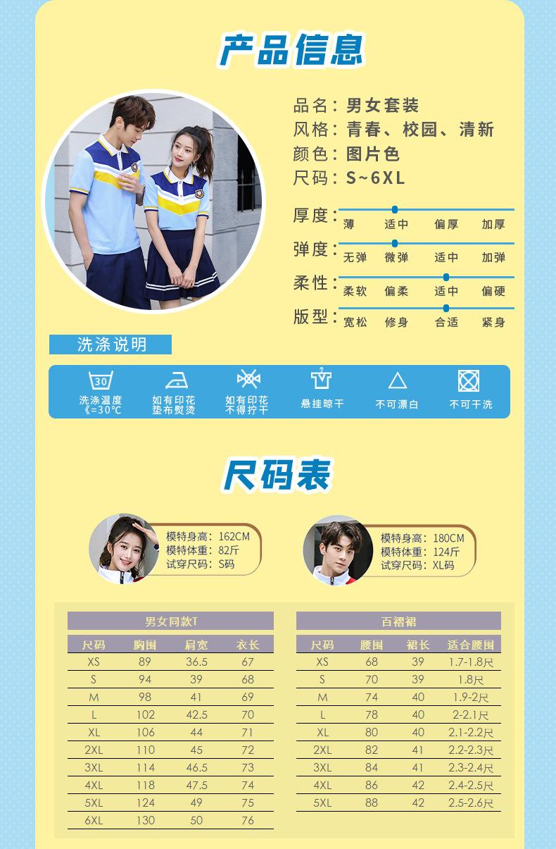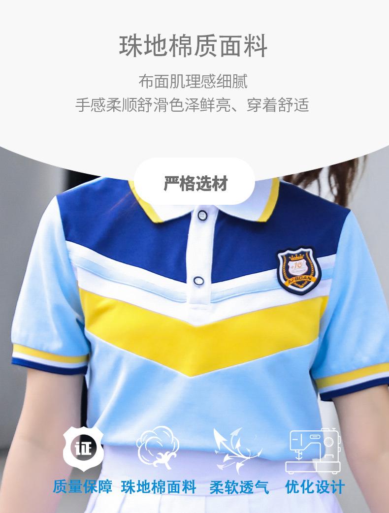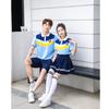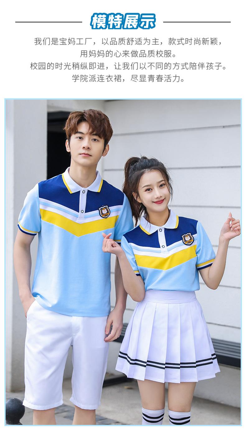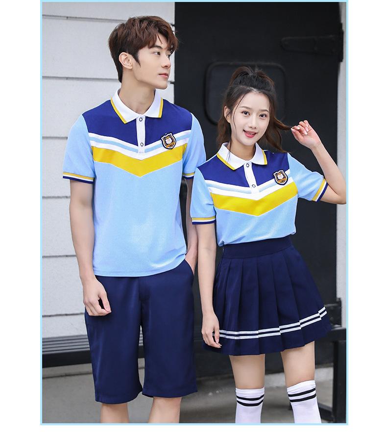 Uniforme de clase para estudiante de secundaria estilo universitario traje de uniforme escolar camiseta azul nueva foto de graduación del 1 de junio ropa deportiva de verano al por mayor