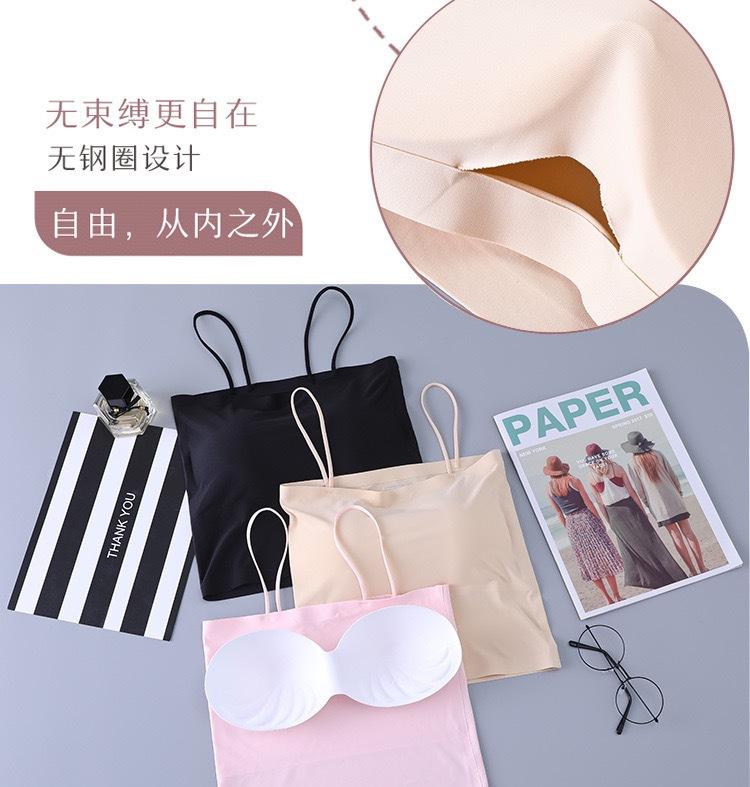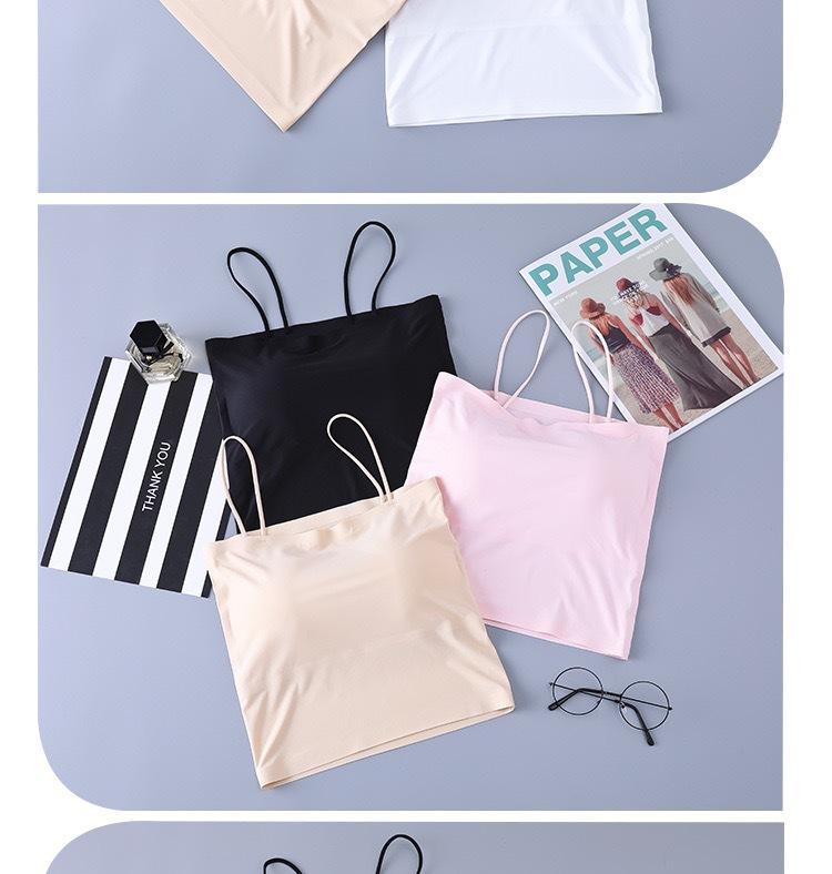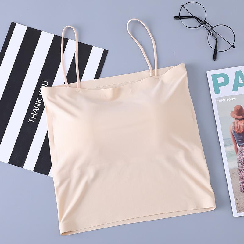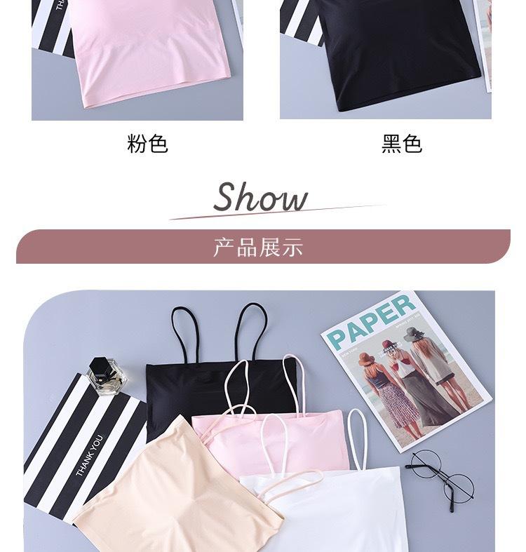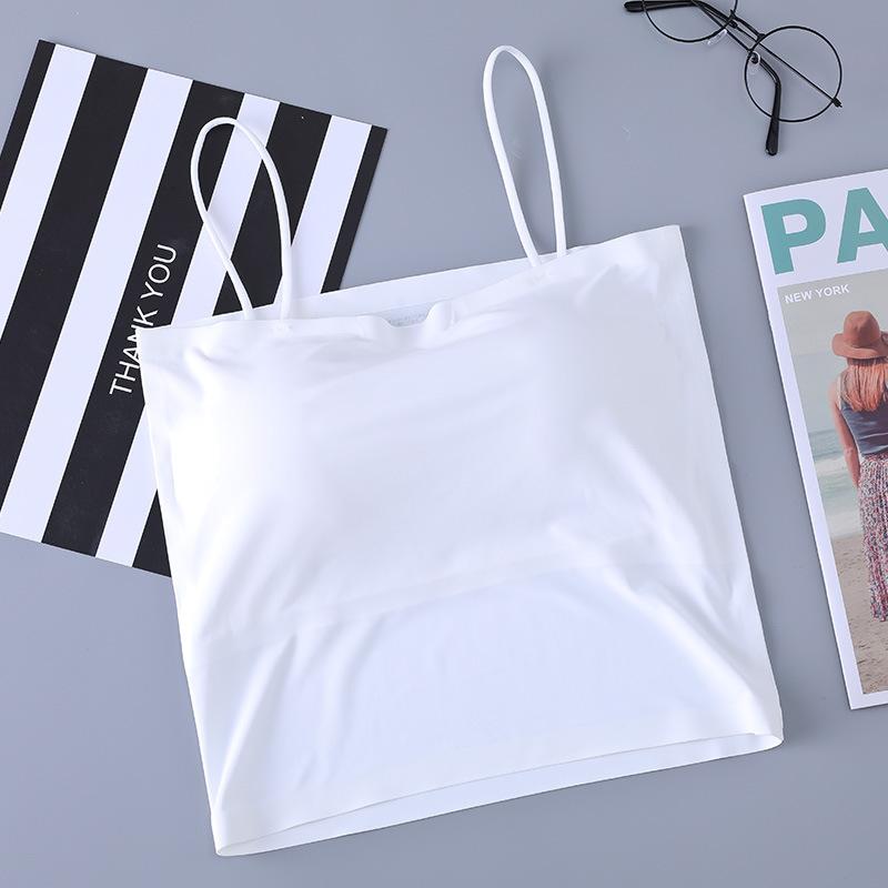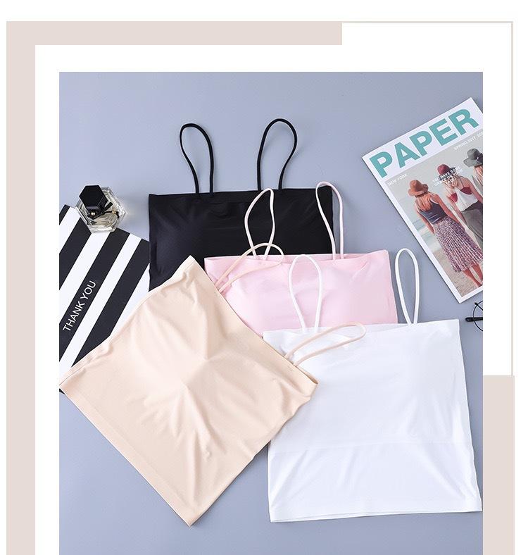 Top de tubo de seda de hielo de verano sin costuras con espalda hermosa, cinturón de pecho envolvente, almohadilla para el pecho, bandolera pequeña con hombros descubiertos, chaleco interior que combina con todo para mujer