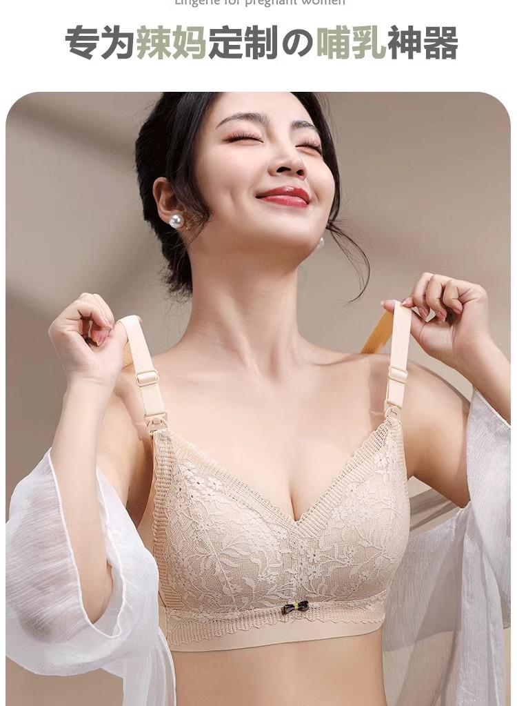 Ropa interior de lactancia para embarazadas, sujetador de lactancia posparto antiflacidez push up para embarazadas, fino, transpirable, inalámbrico
