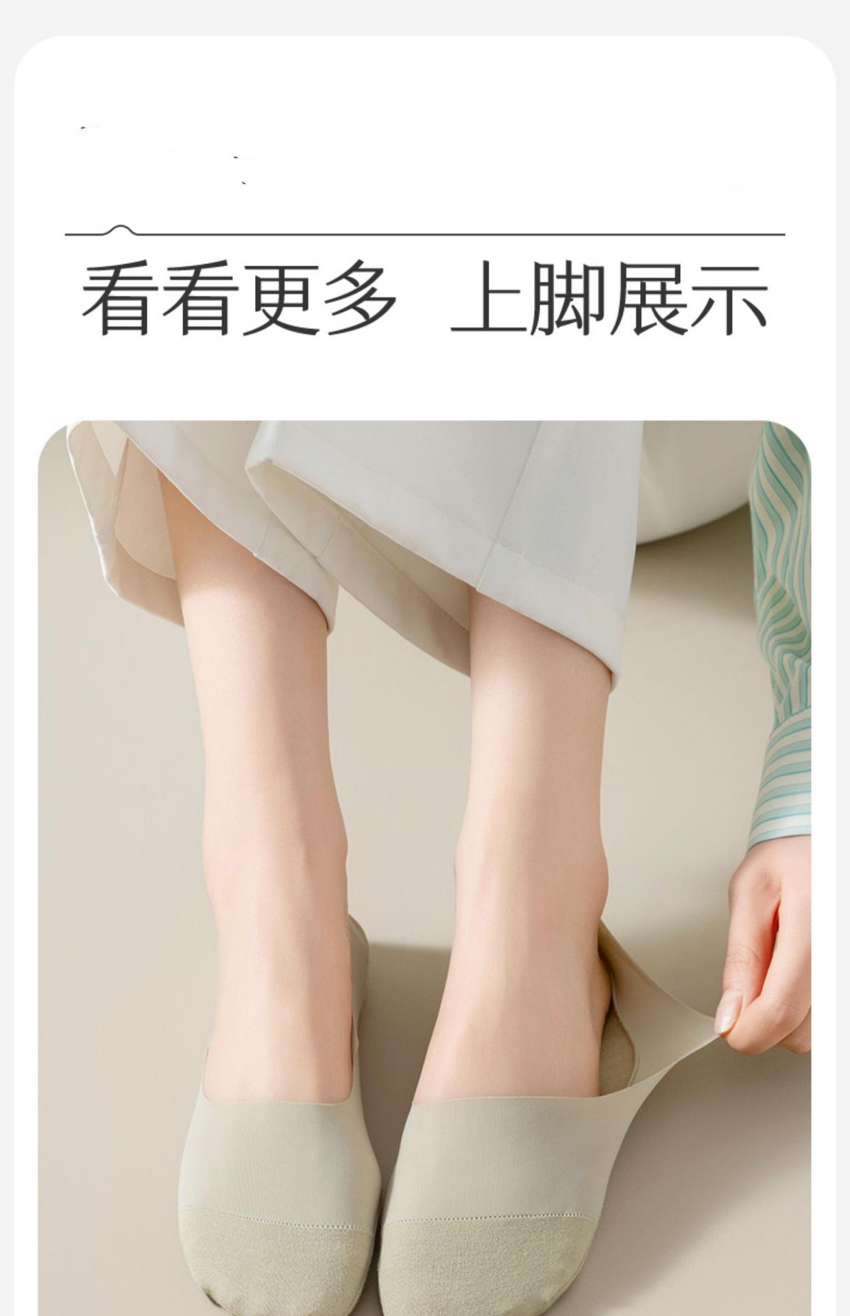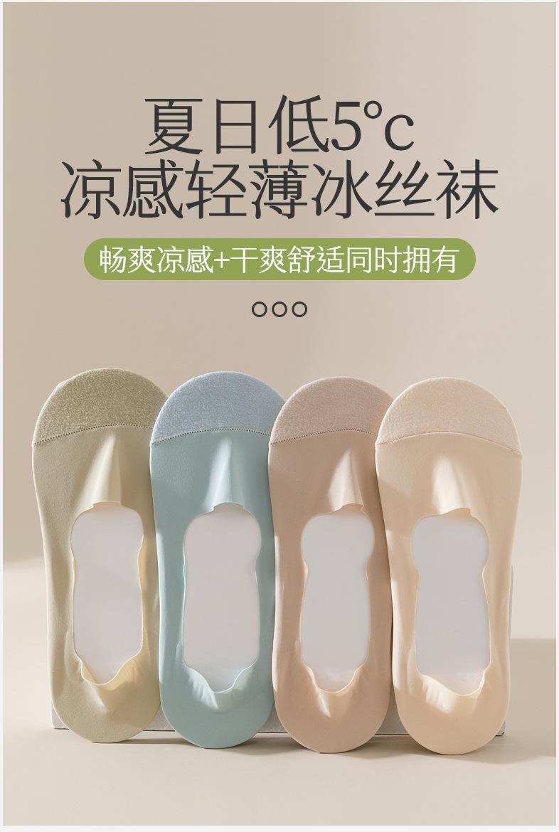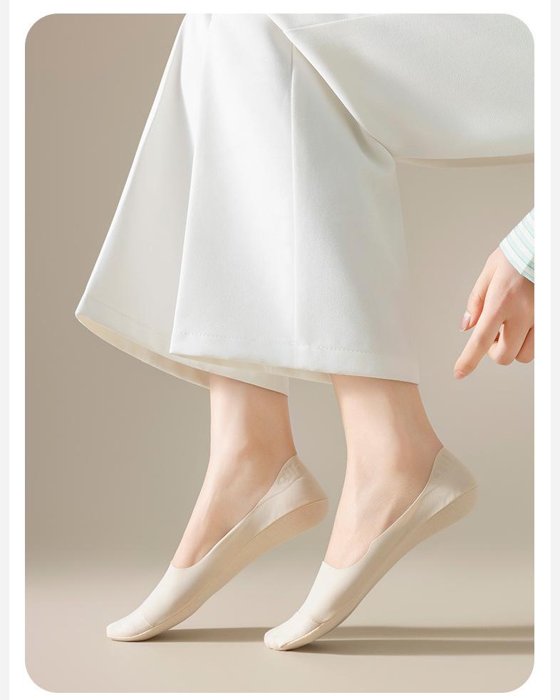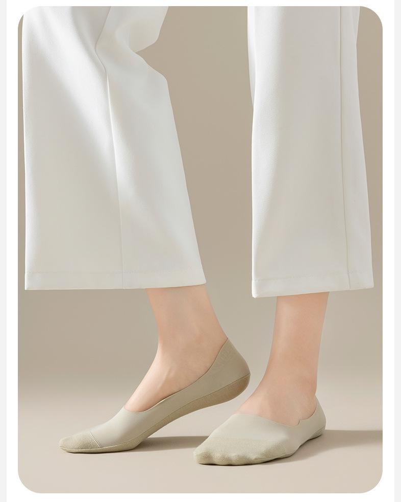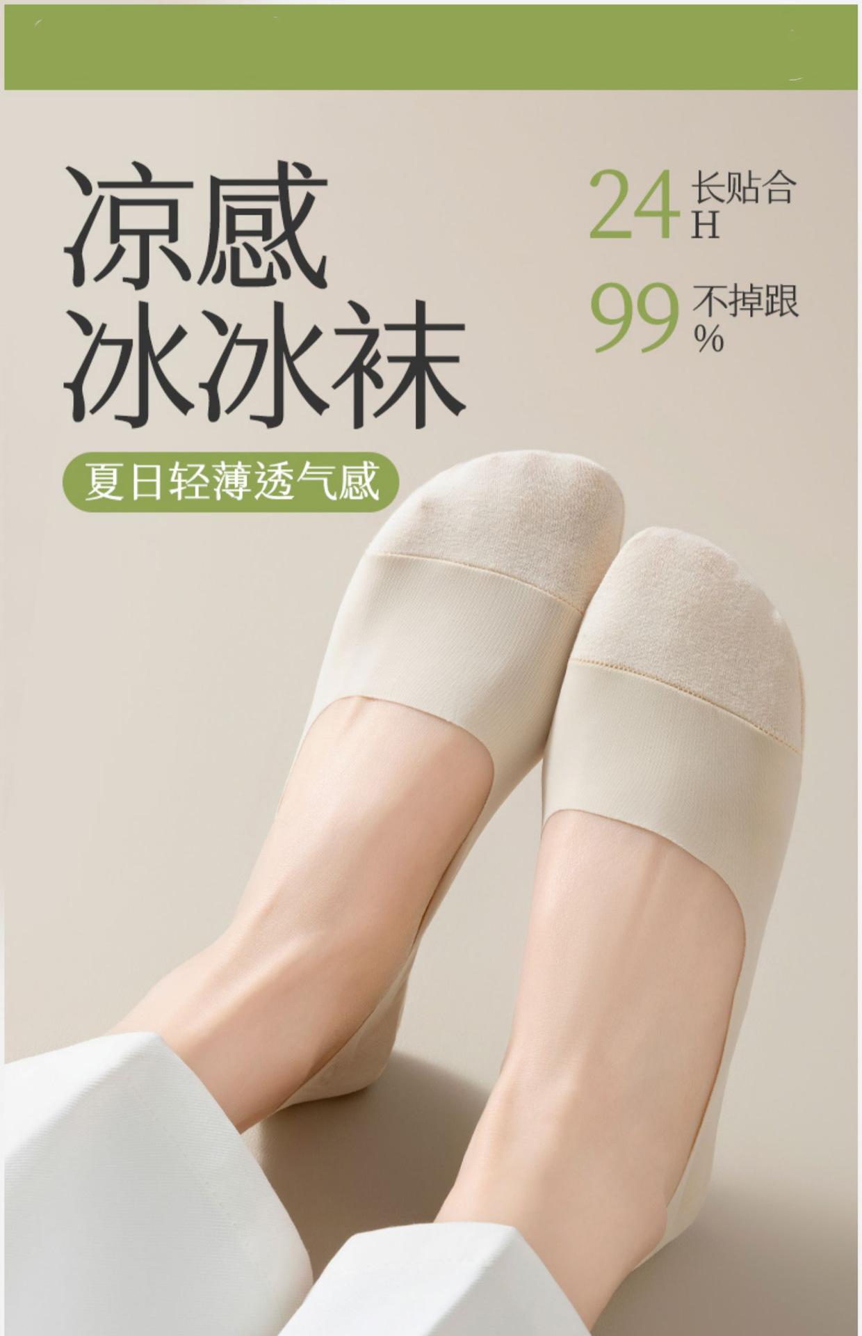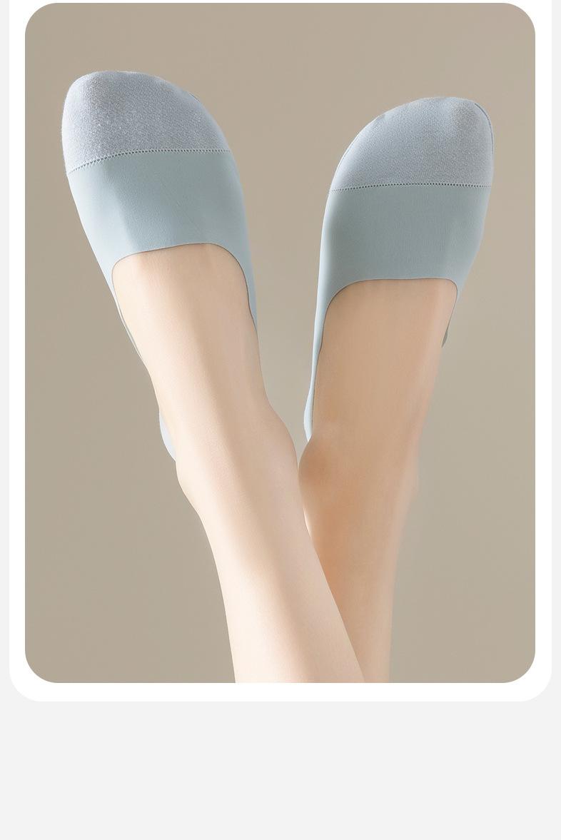 Calcetines de Barco de Seda de Hielo Anti-top para Mujer Verano Delgados Antideslizantes Talón que No se Cae Algodón de Seda de Hielo Boca Baja Tacones Altos Calcetines Invisibles