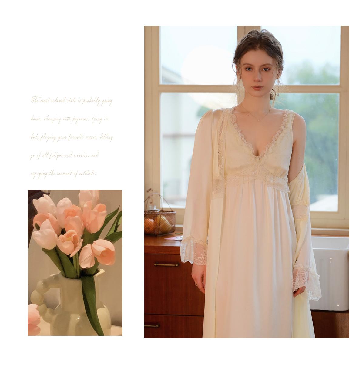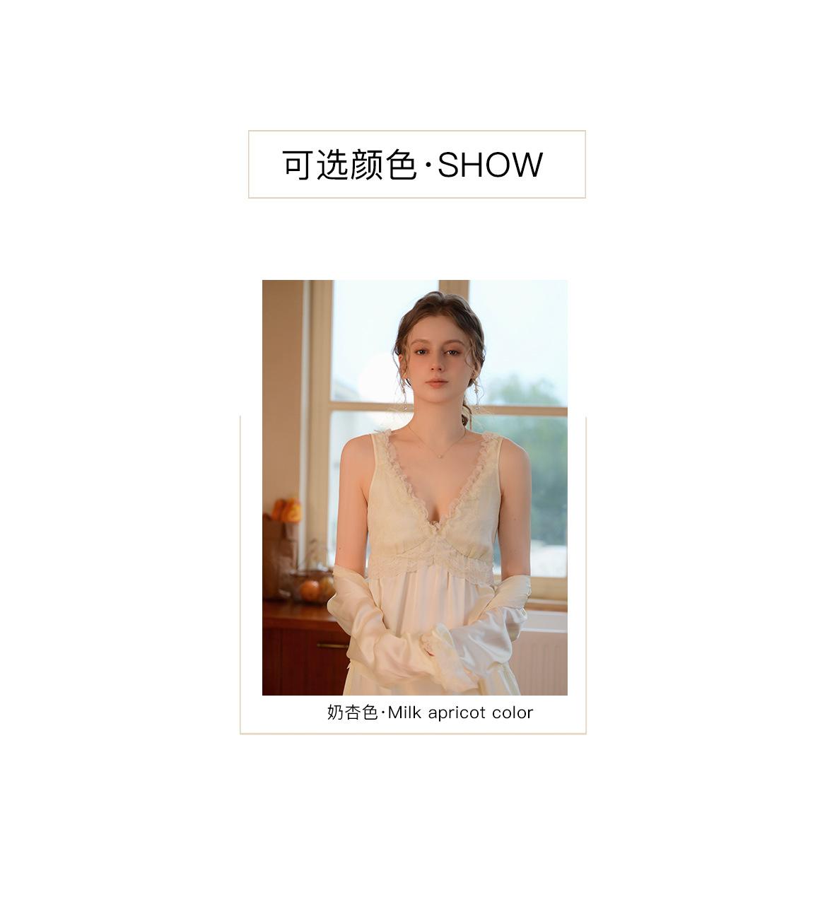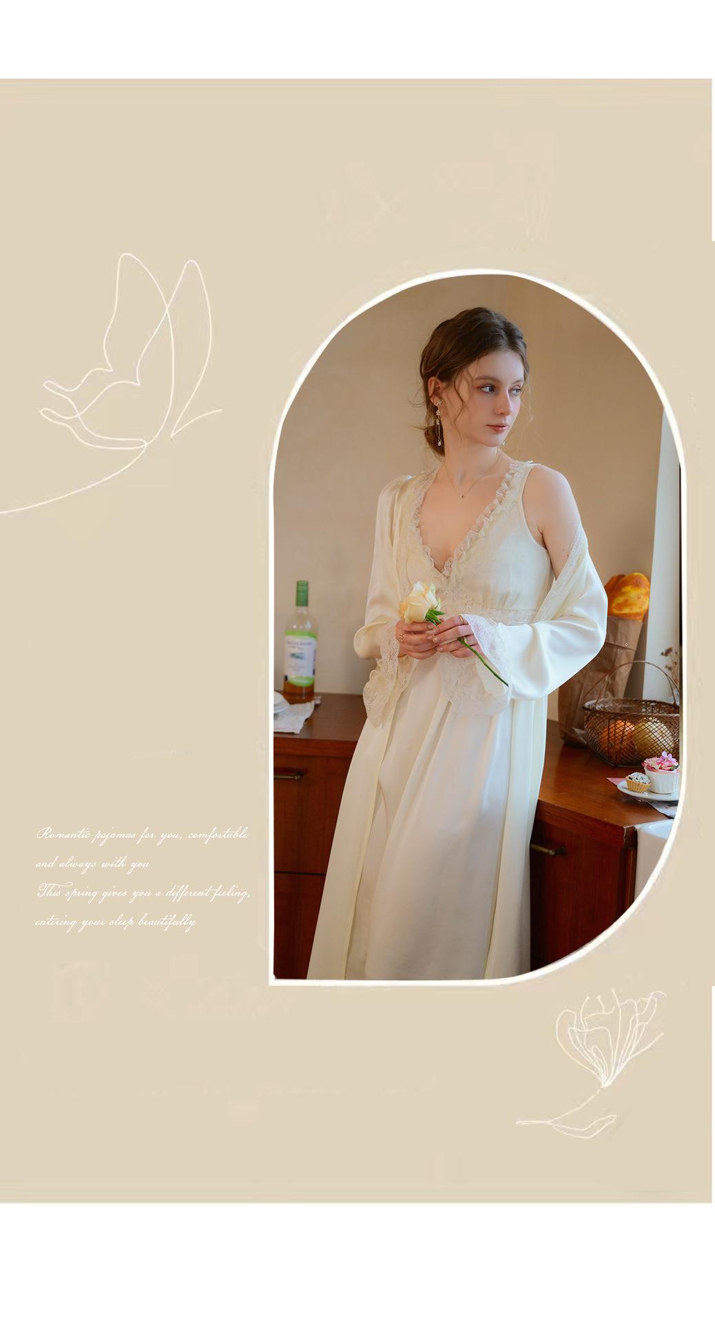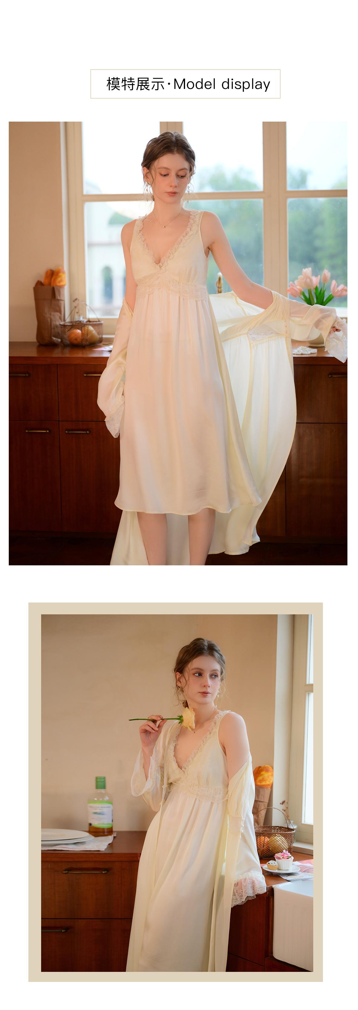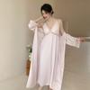 Camisón Sexy Francés Set de Dos Piezas para Mujer Primavera y Otoño Nuevo Satén Tirantes Encaje Pijama con Copas Verano Ropa para el Hogar