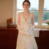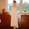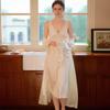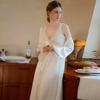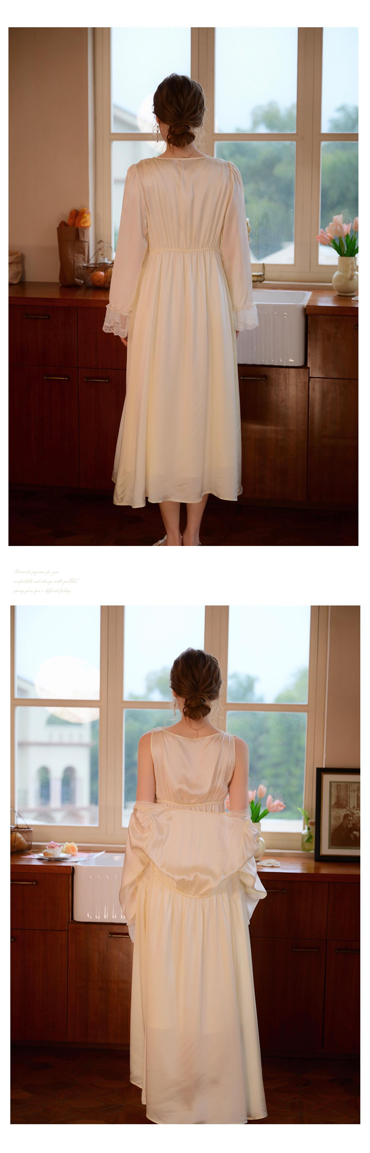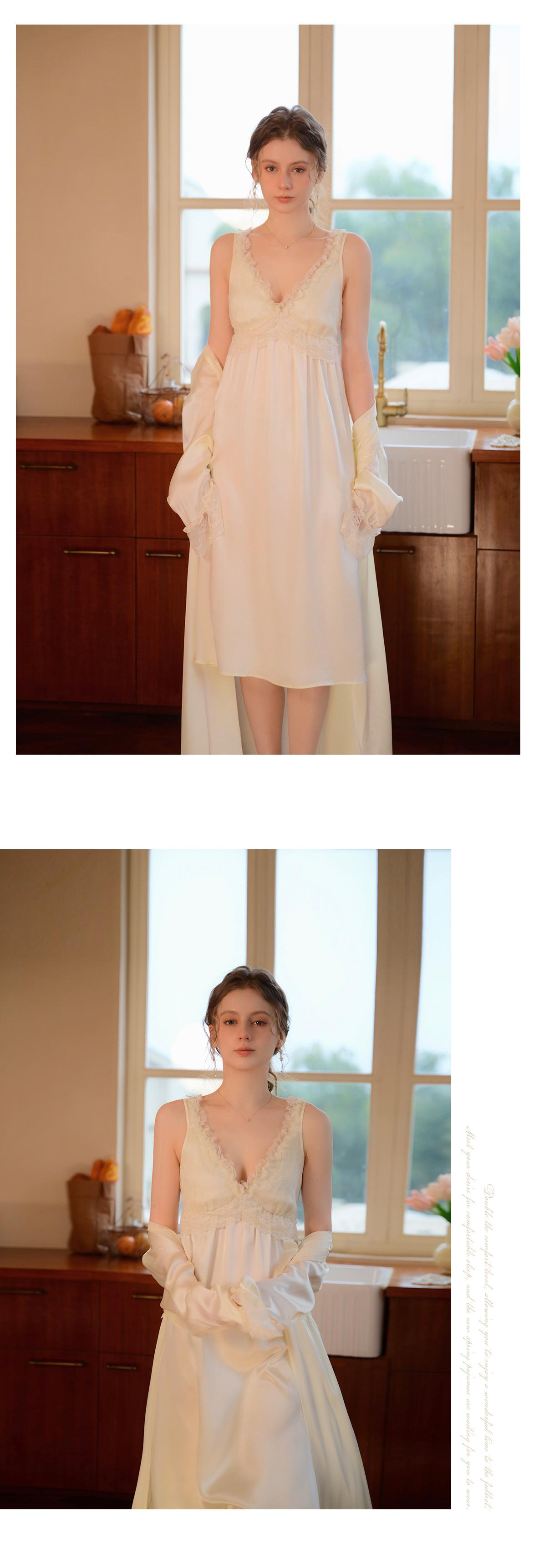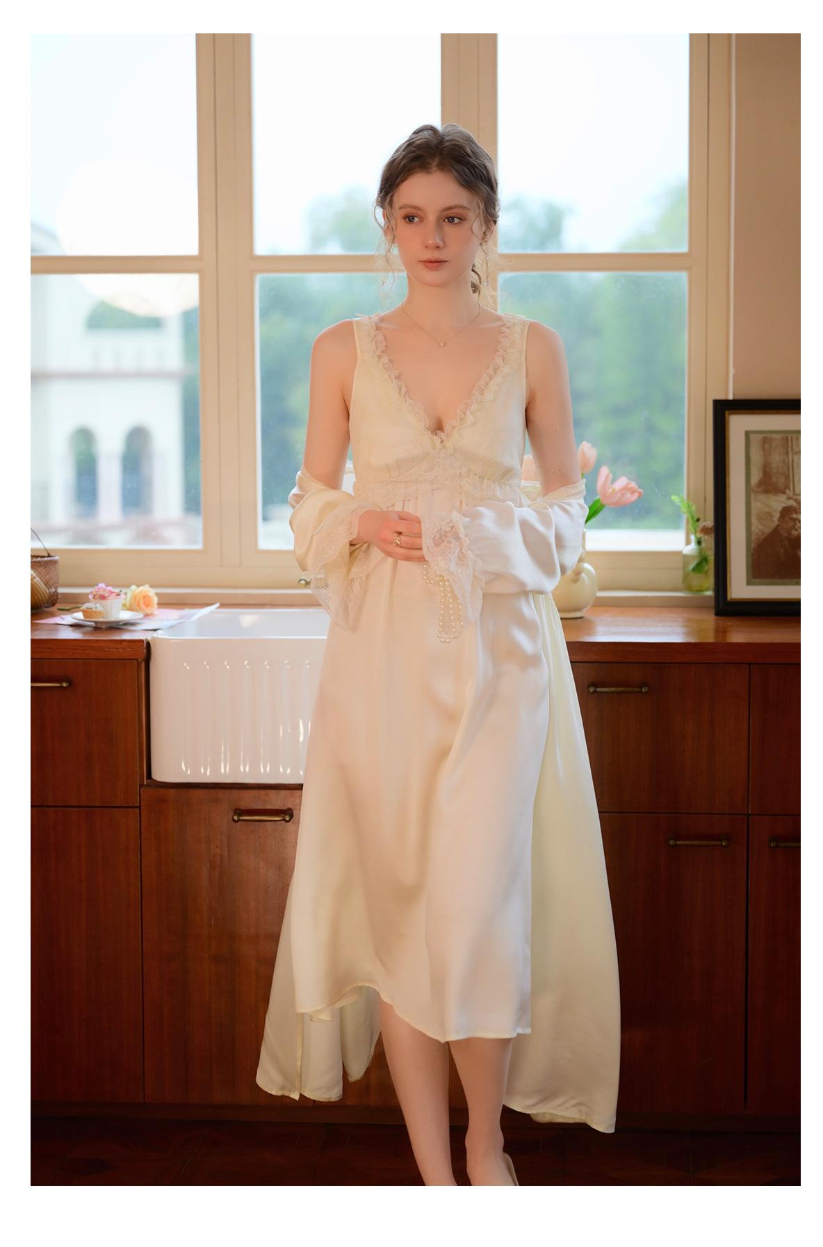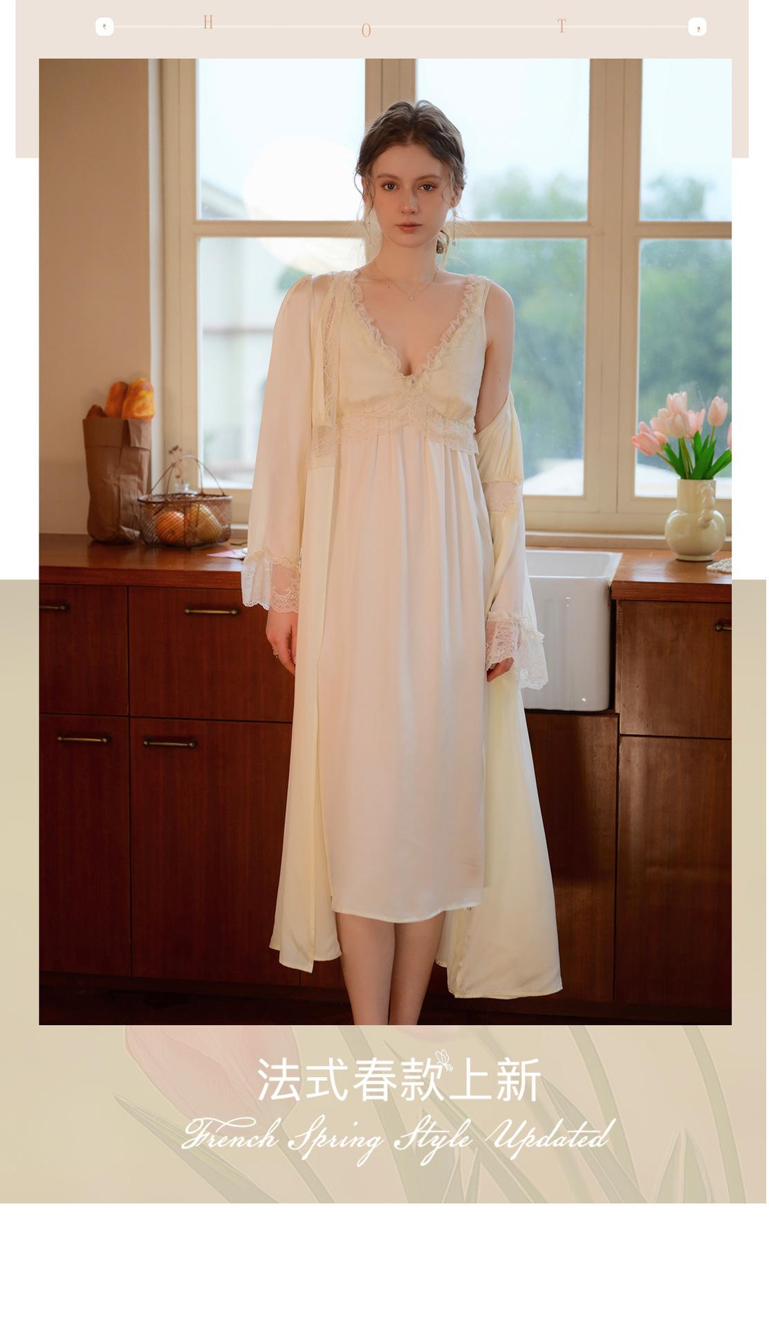 Camisón Sexy Francés Set de Dos Piezas para Mujer Primavera y Otoño Nuevo Satén Tirantes Encaje Pijama con Copas Verano Ropa para el Hogar