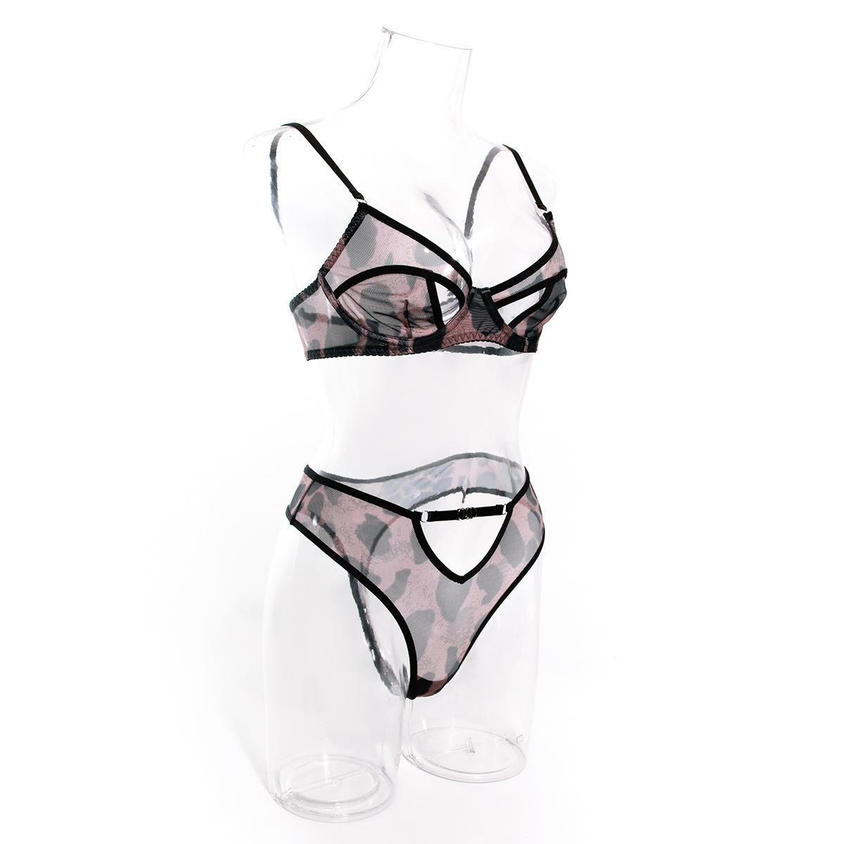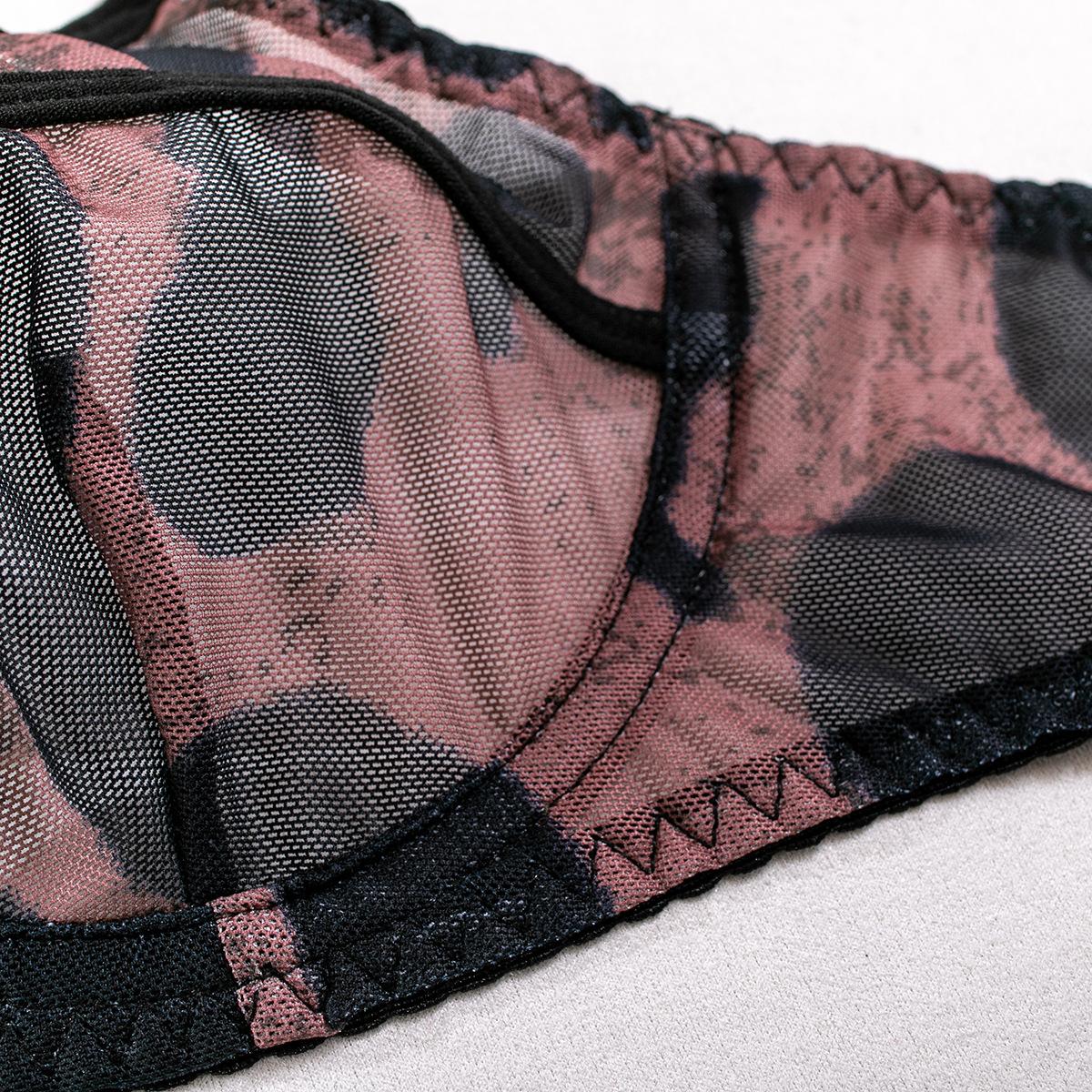 Nuevo conjunto de dos piezas de ropa interior sexy ultrafina hueca con sujetador de aro de acero para mujer de comercio exterior transfronterizo de INS Europa y Estados Unidos