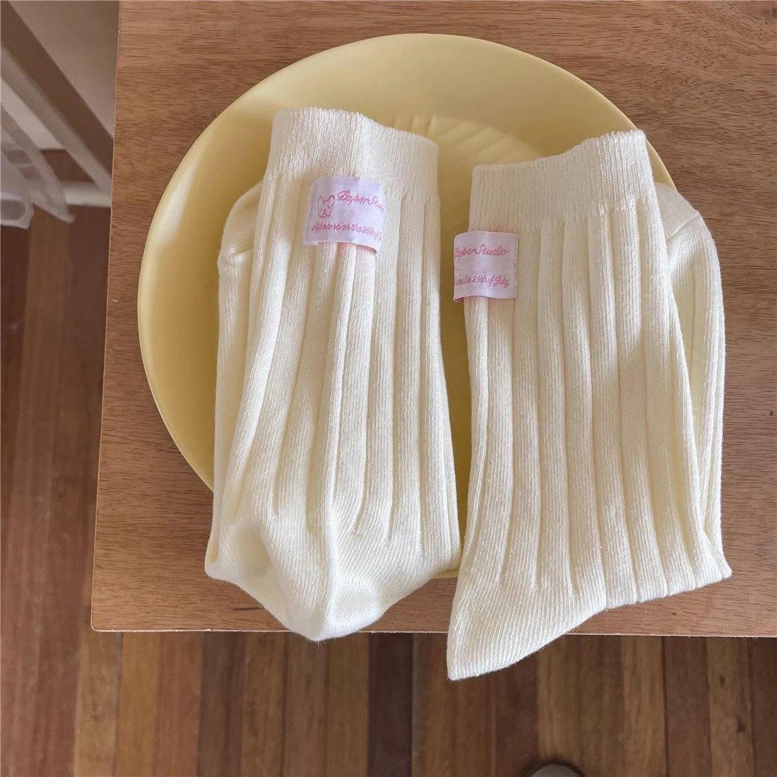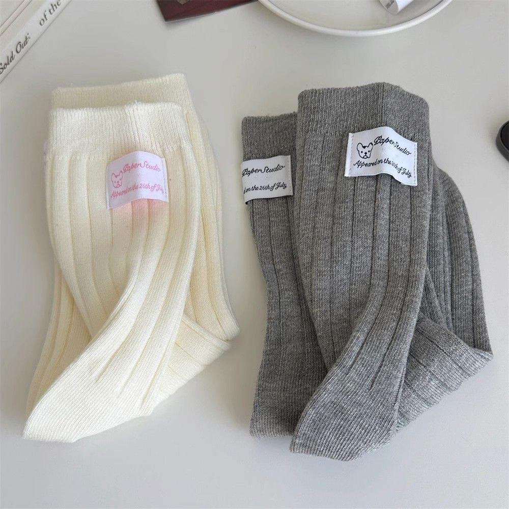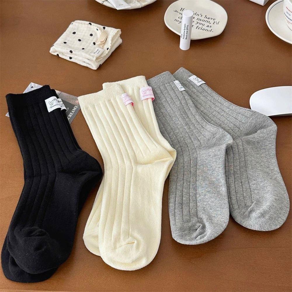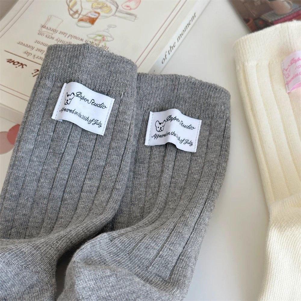 Logotipo básico de nicho/talón de tela, calcetines hasta la mitad de la pantorrilla para otoño e invierno, de algodón, para estudiante, color sólido