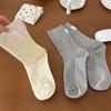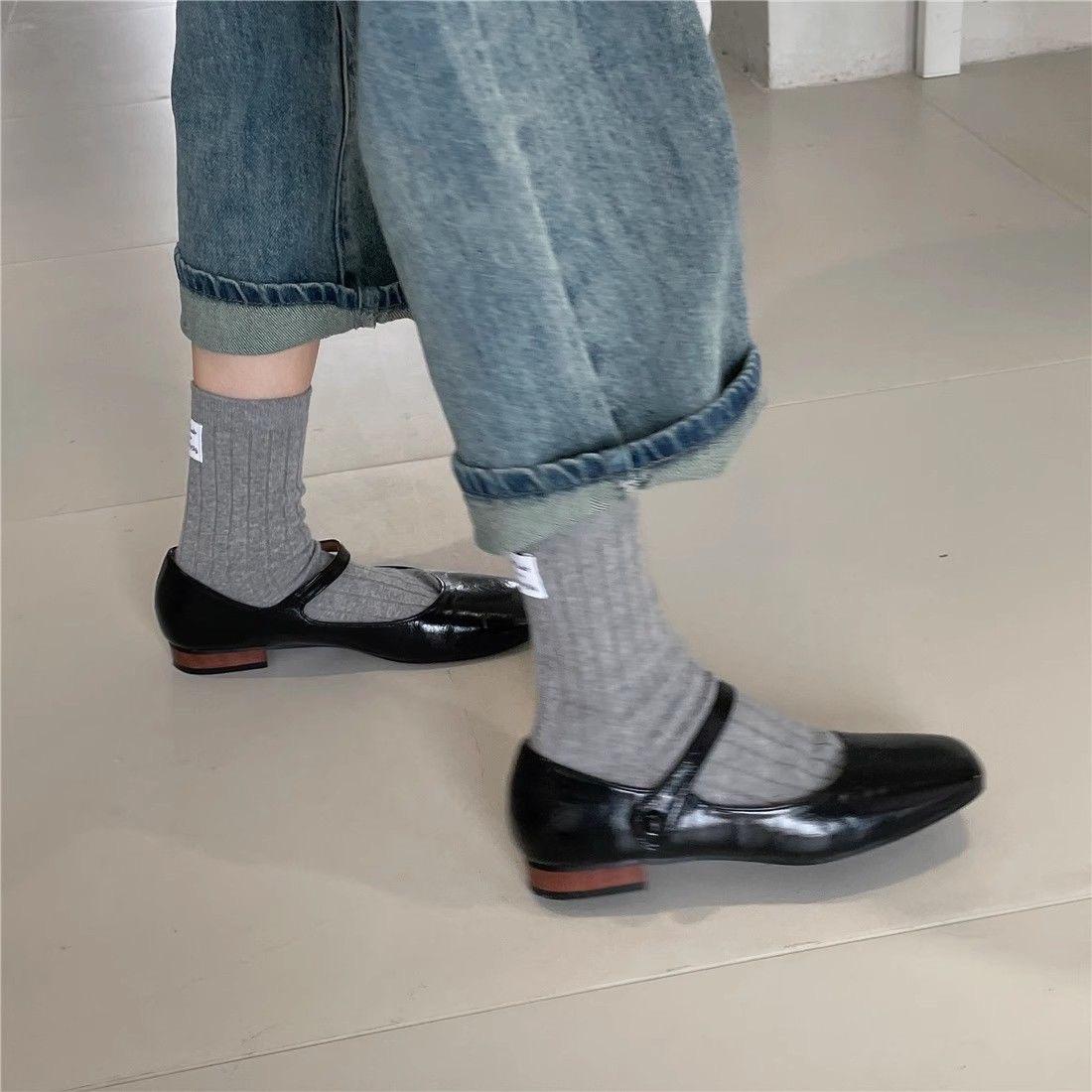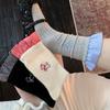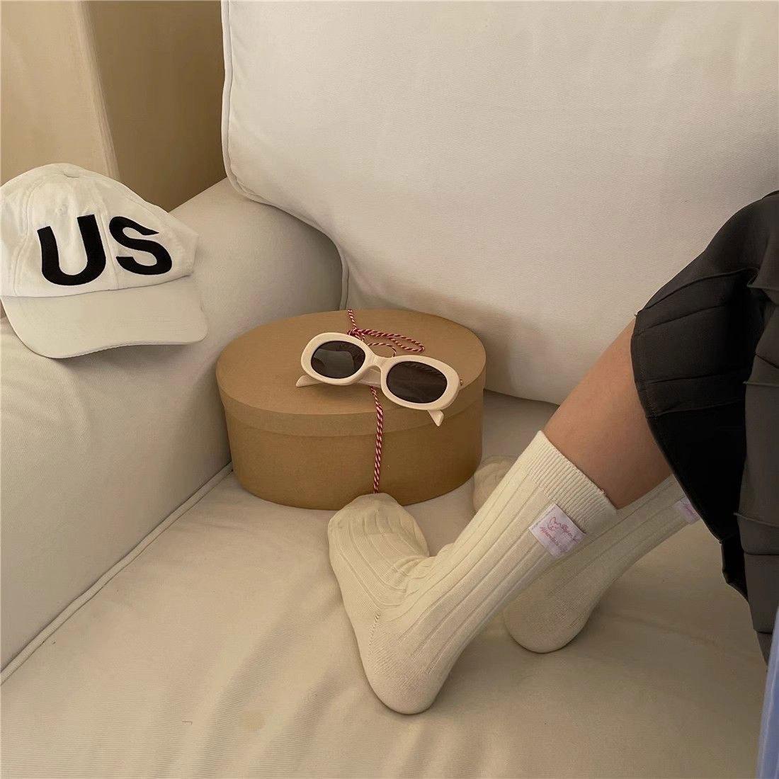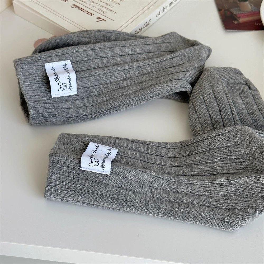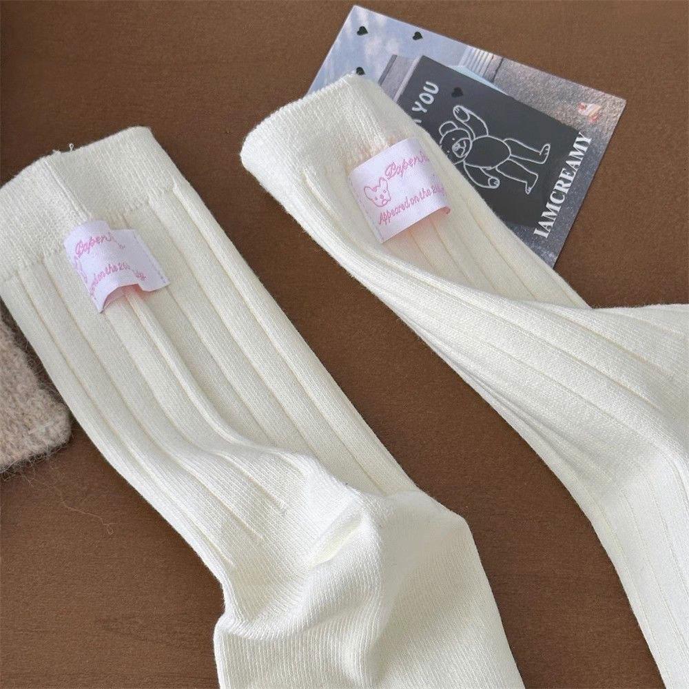 Logotipo básico de nicho/talón de tela, calcetines hasta la mitad de la pantorrilla para otoño e invierno, de algodón, para estudiante, color sólido