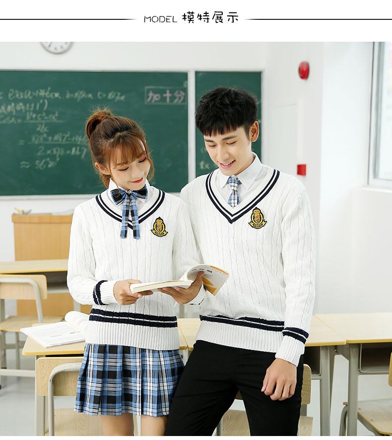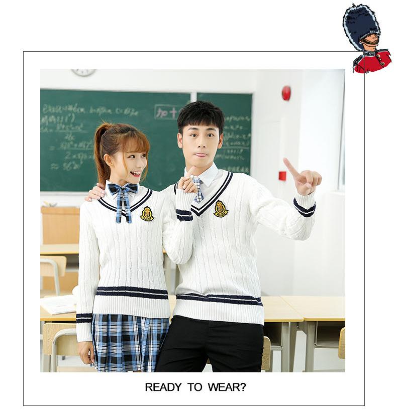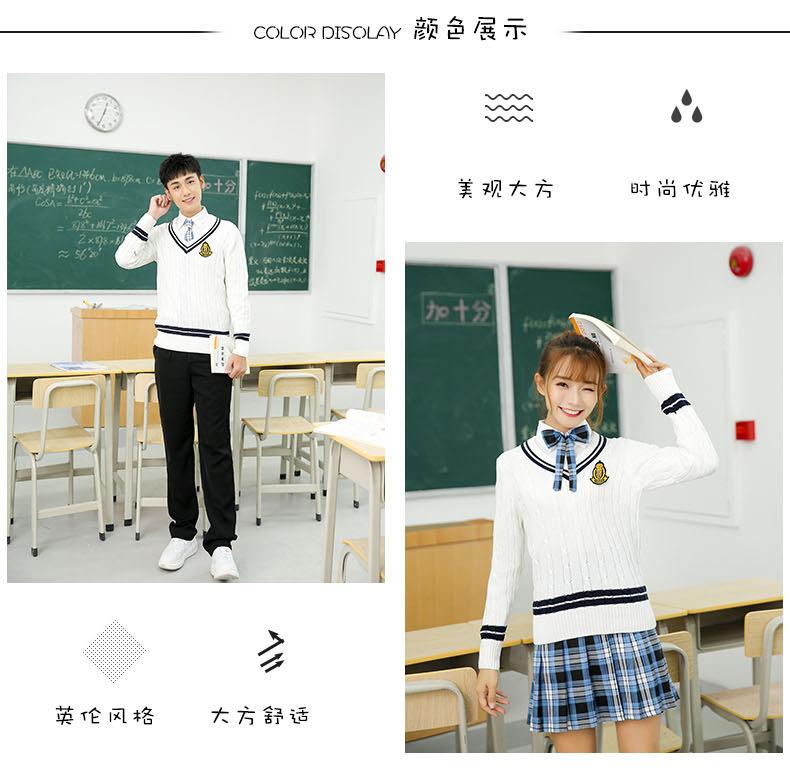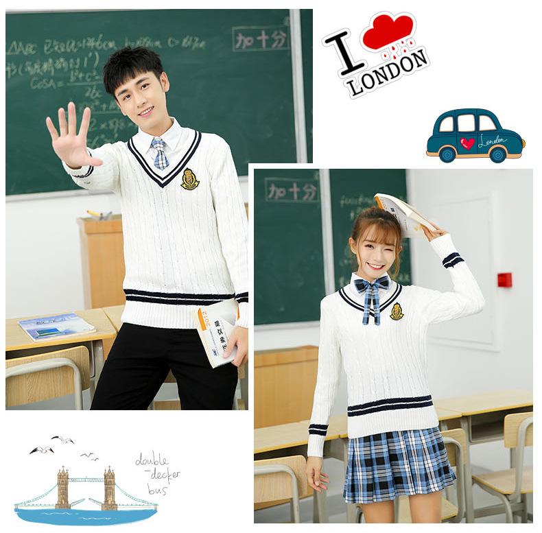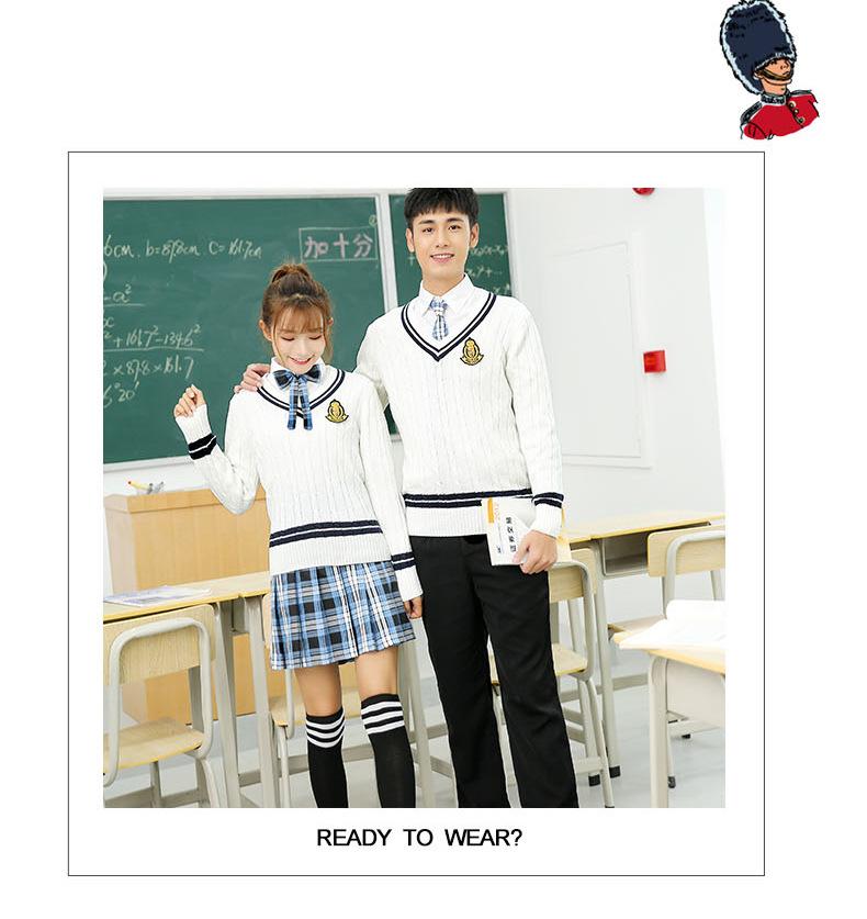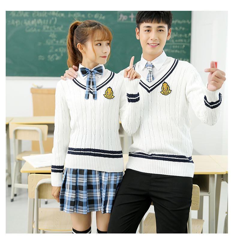 Uniforme de Secundaria Estilo Academia Británica Uniforme de Clase Pareja Uniforme JK Traje de Suéter Blanco de Punto Venta al por Mayor Insignia Escolar Imprimible
