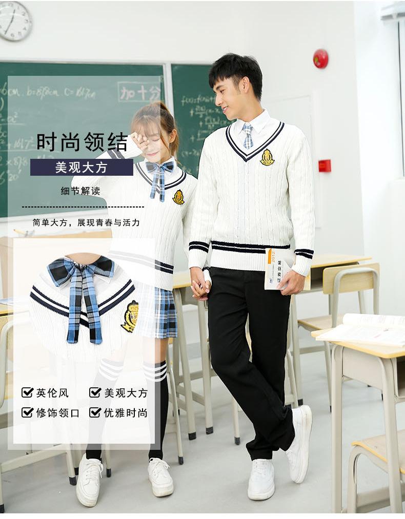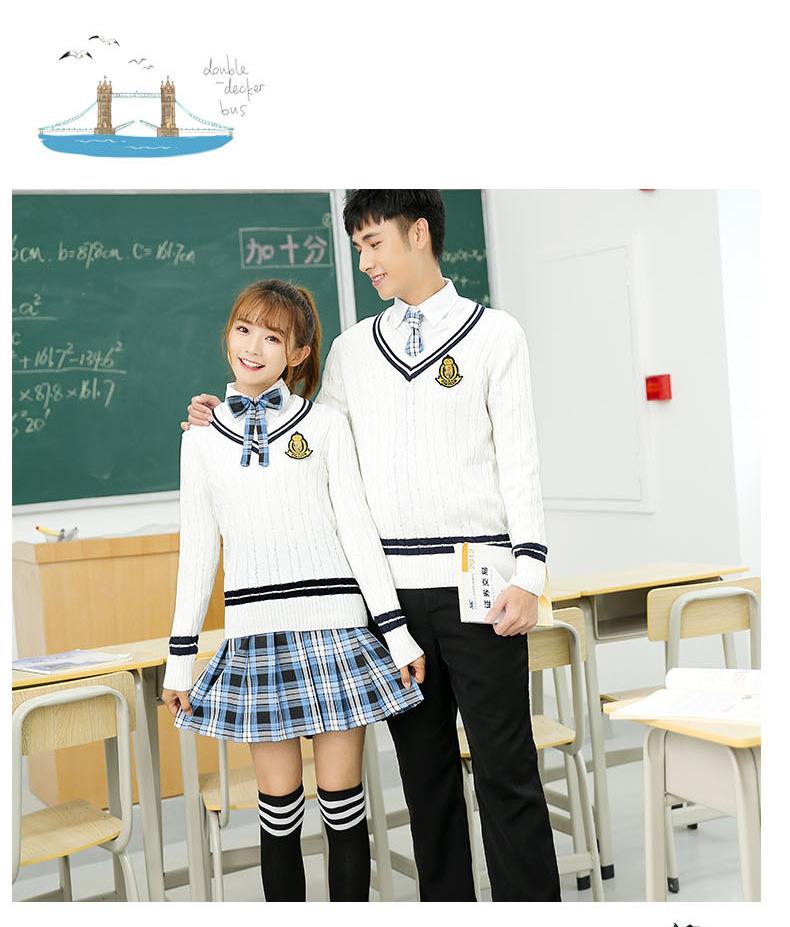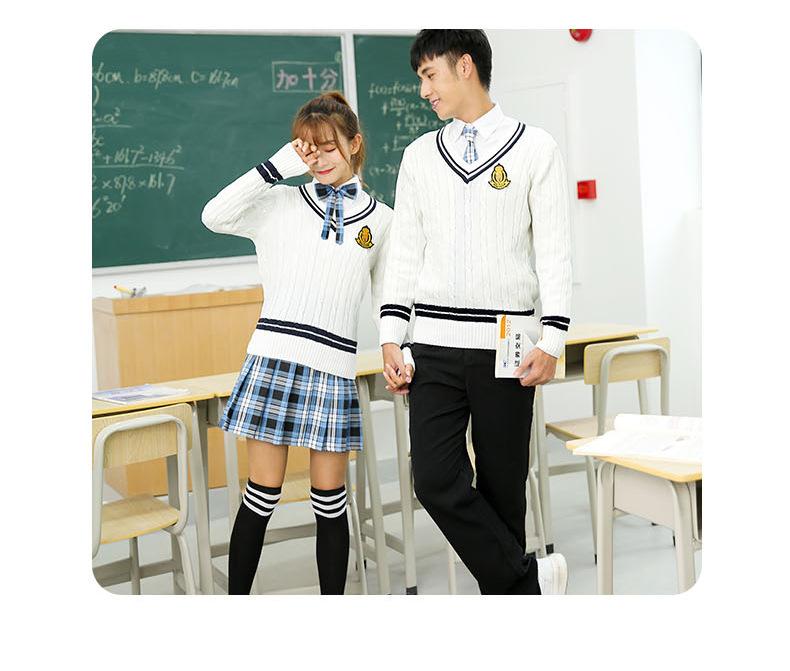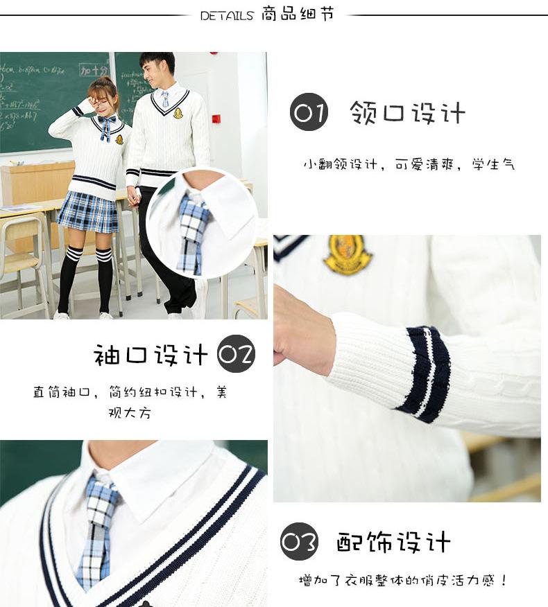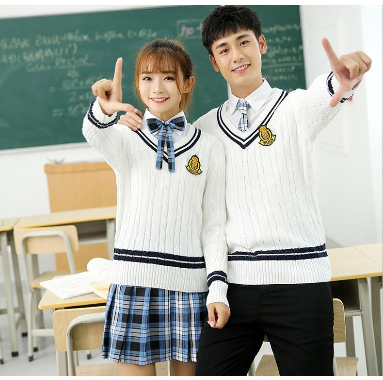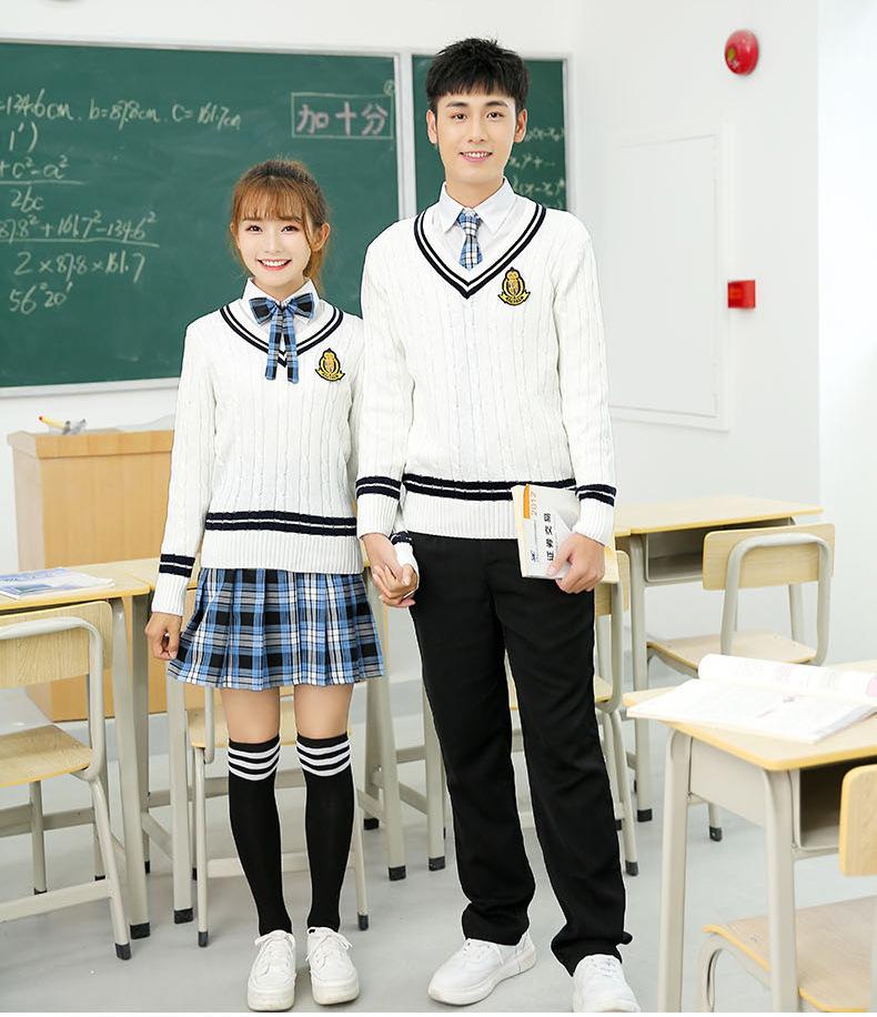 Uniforme de Secundaria Estilo Academia Británica Uniforme de Clase Pareja Uniforme JK Traje de Suéter Blanco de Punto Venta al por Mayor Insignia Escolar Imprimible