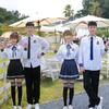 Women's BO6 White Sweater White Long Sleeve Blue Pair Skirt Blue Pair Bow, Men's BO6 White Sweater White Long ...