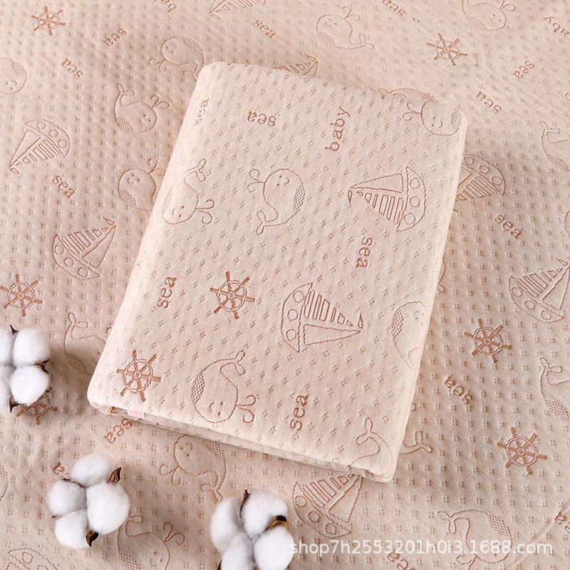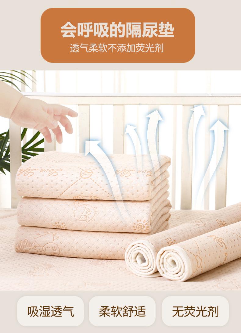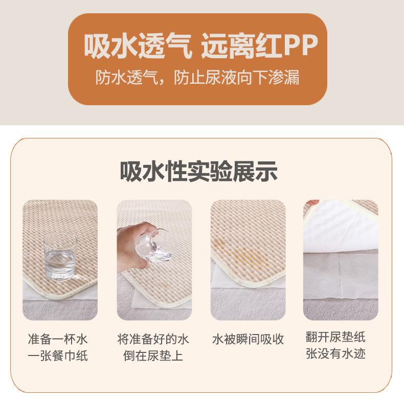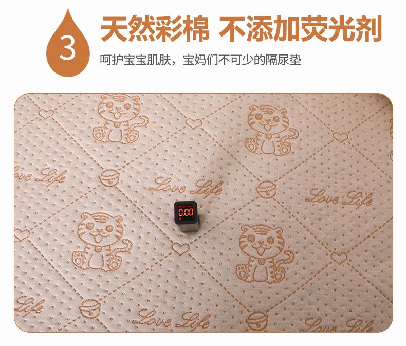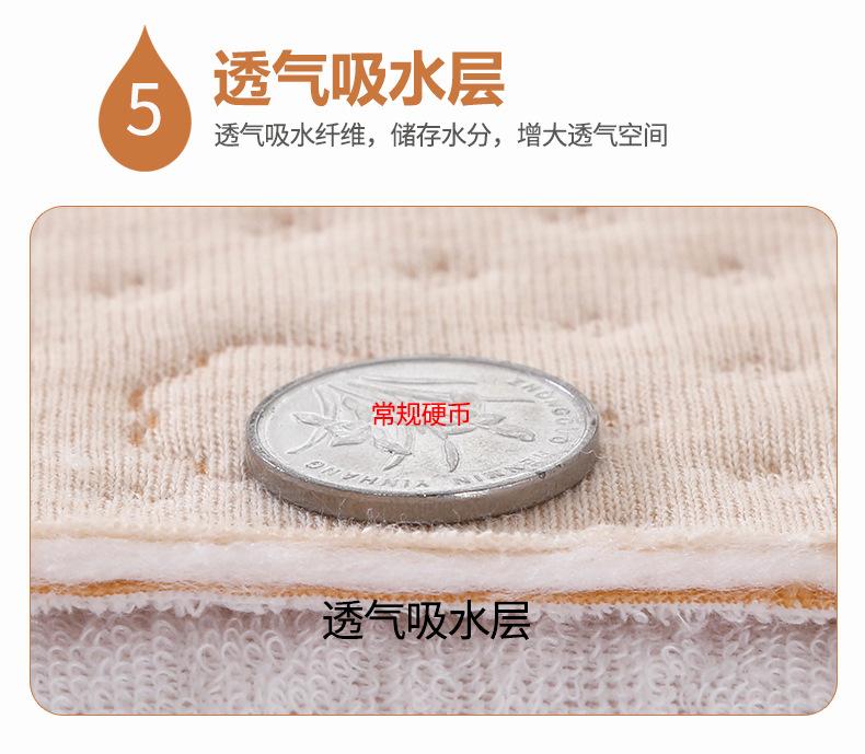 Superficie de algodón coloreado + capa absorbente de agua de fibra de poliéster + membrana impermeable de TPU + tela de rizo antideslizante / tela de rizo antideslizante de fibra de bambú