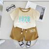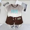 Ropa de verano para niños, traje de estilo occidental a la moda 2024, nueva y atractiva ropa de verano para bebés, moda para niños pequeños, manga corta, cabello a la moda.