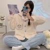 Pijamas especiales de lana coral para mujer, cárdigan de otoño e invierno, ropa de casa cálida y gruesa, pijamas de oso de fresa para otoño para mujer