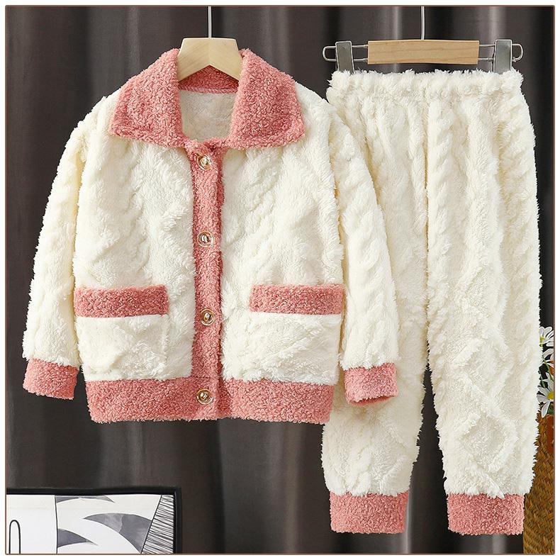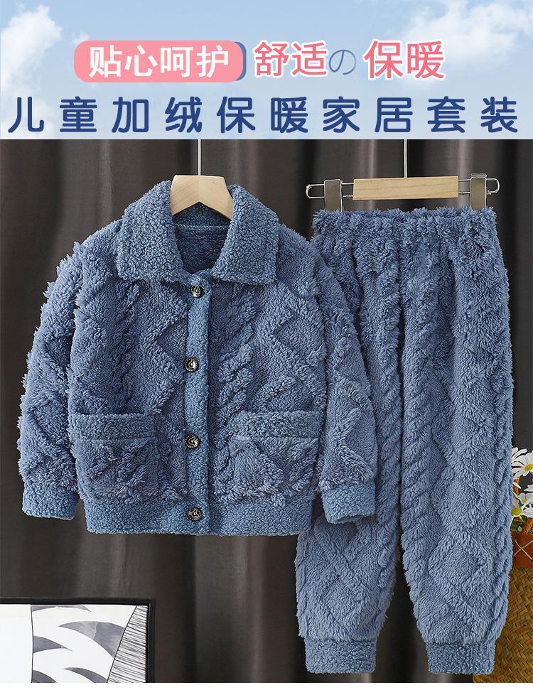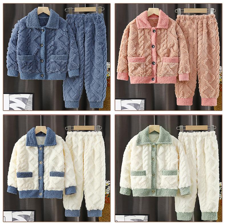 Pijama para Niños Forrado de Felpa Engrosado Polar Coral Otoño e Invierno Nuevo Franela Traje para Estar en Casa Pijama para Niños y Niñas