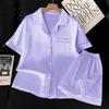 Nuevo traje de pijama de seda helada de verano, estilo ins, pantalones de manga corta con estampado retro de alta gama, ropa de red popular para el hogar, venta al por mayor