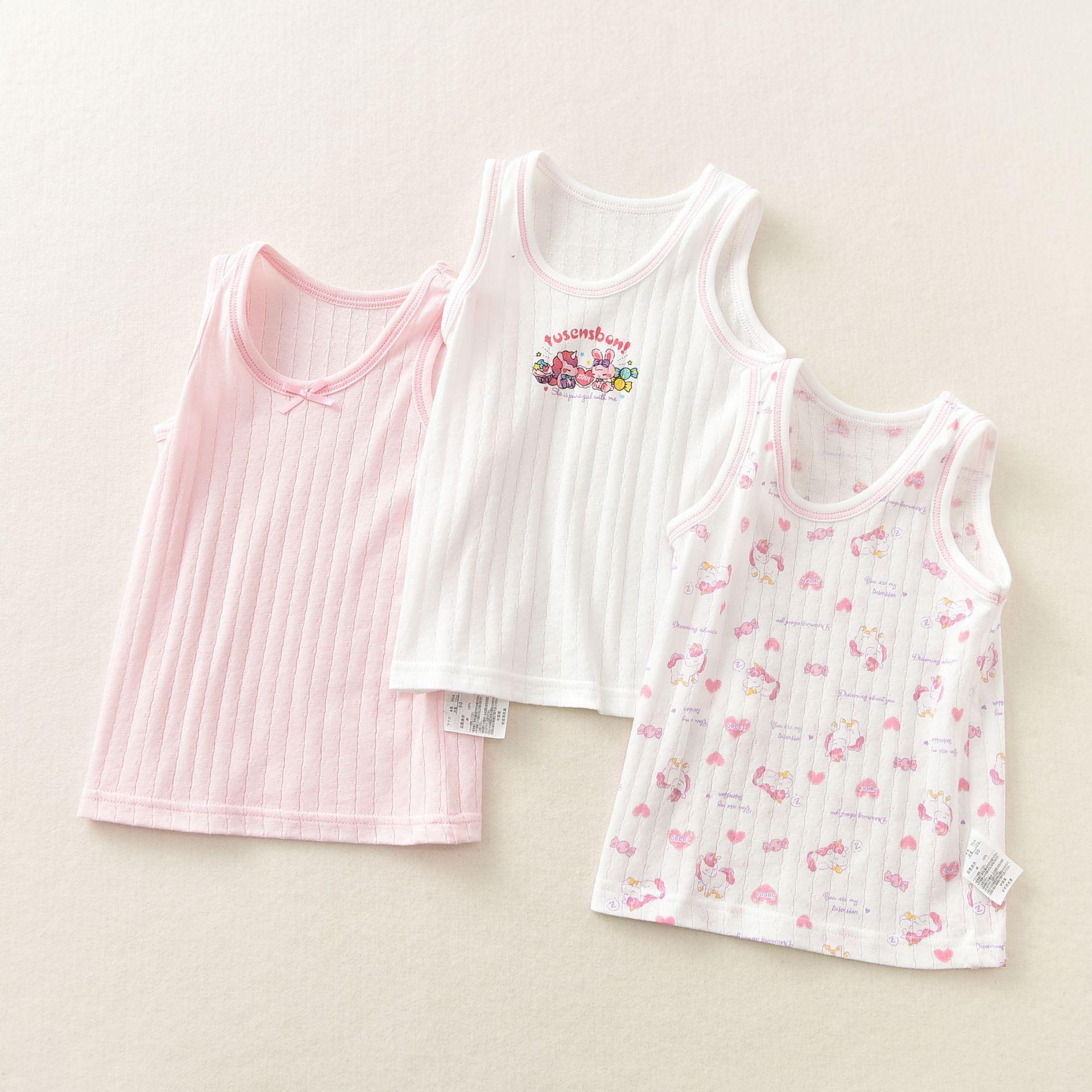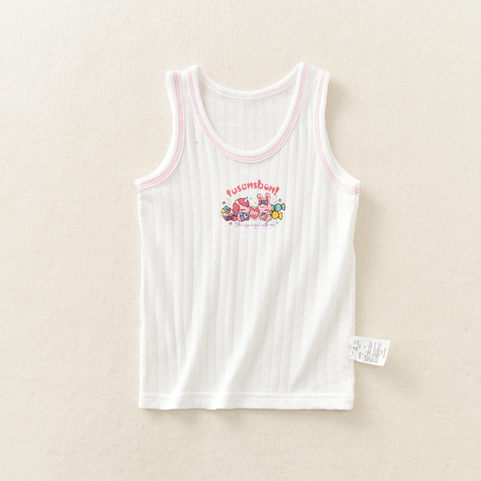 Fábrica de ropa infantil de exportación, nueva, japonesa, transpirable, absorbente de sudor, para niñas, primavera y verano, chaleco básico para el hogar, algodón para niños.
