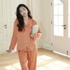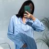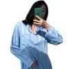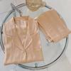Pijama simple de dos piezas de seda de hielo jacquard a rayas para mujer, de manga larga y pantalones holgados para primavera y verano 2023