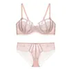 Sujetador de encaje estilo francés de talla grande, ropa interior antiflacidez, conjunto de ropa interior sexy ultrafino para mujer, sujetador pequeño de pecho grande.