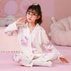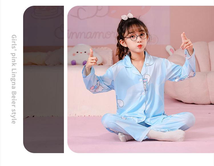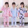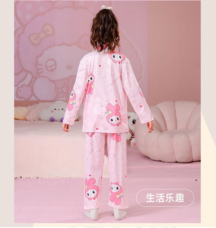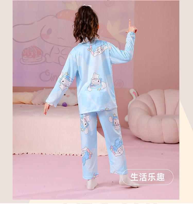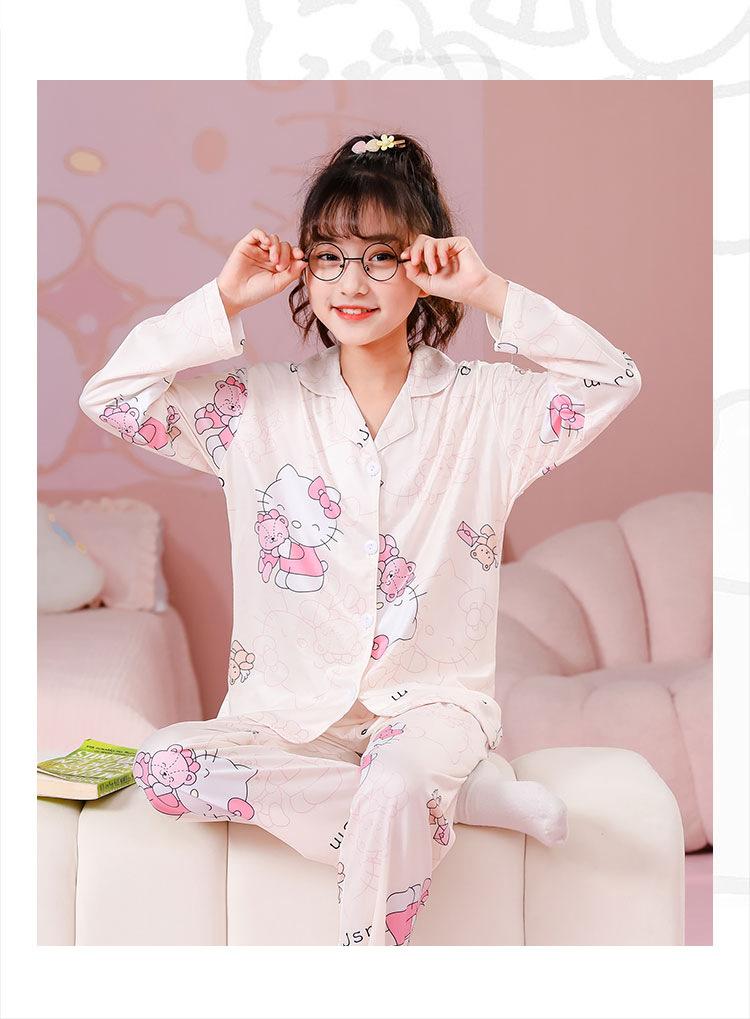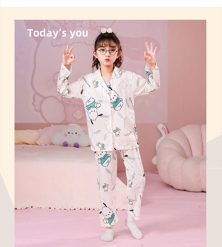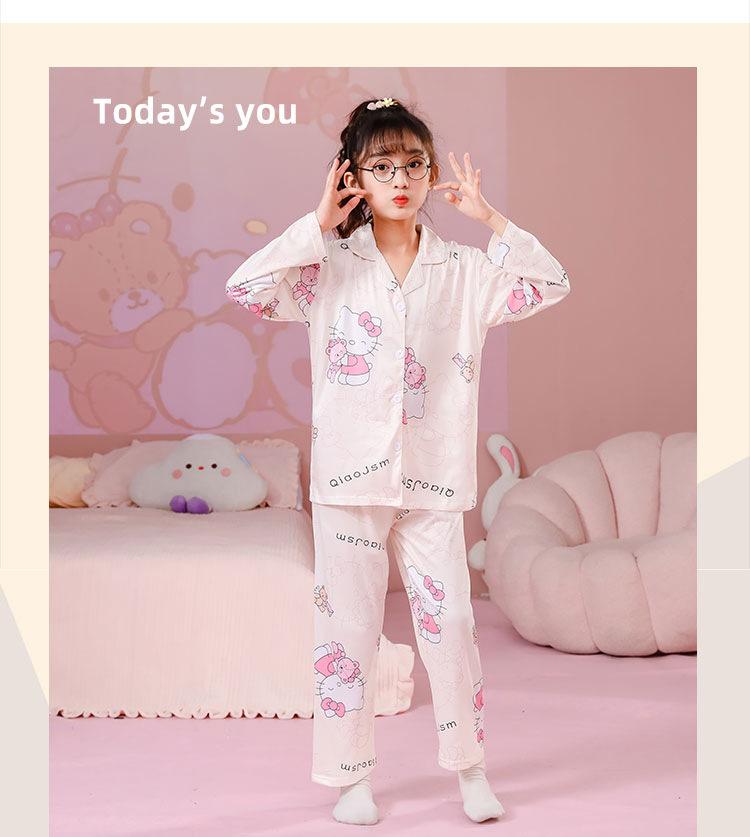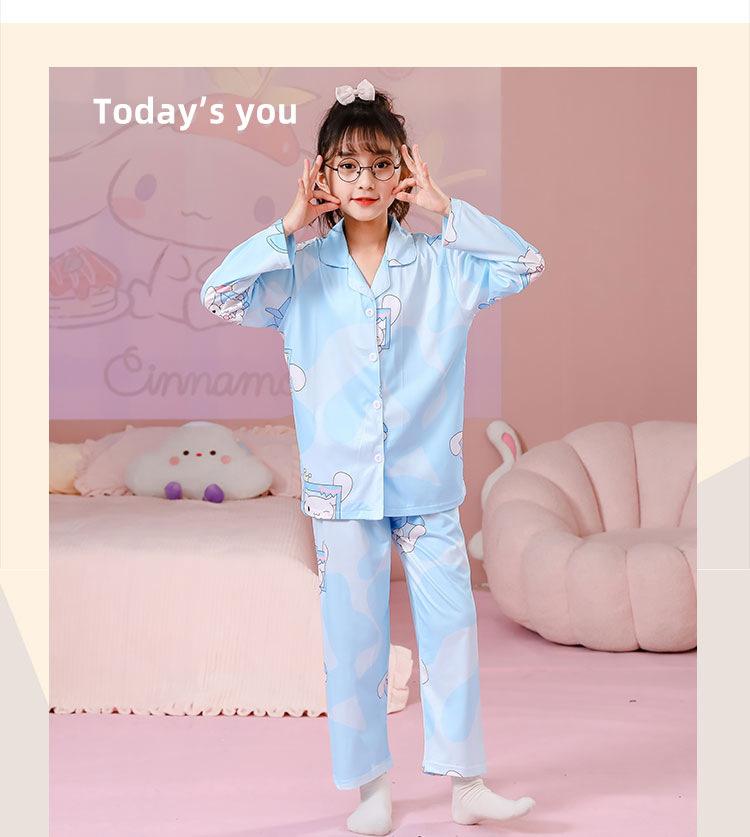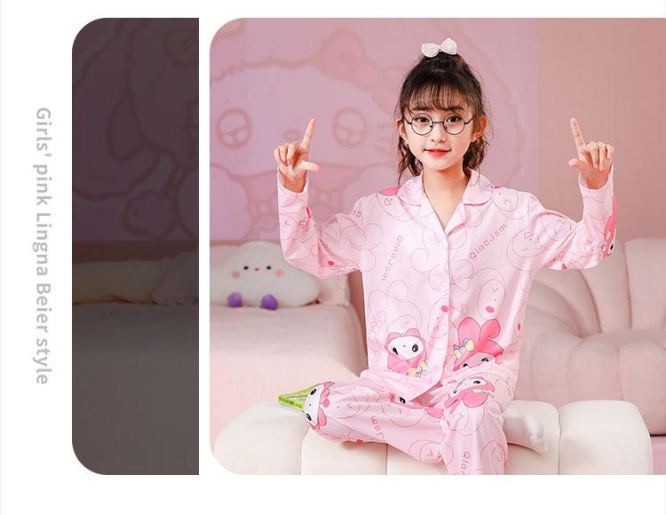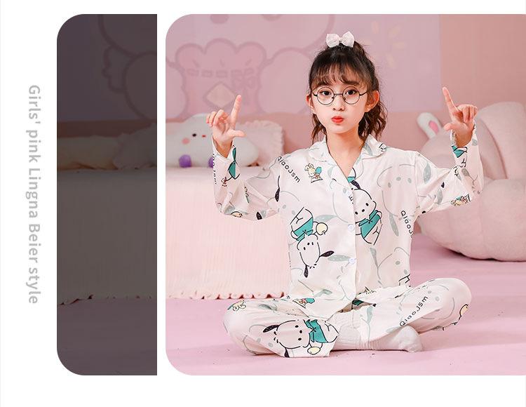 Pijamas de primavera y otoño para niños, cárdigan de mujer con solapa, manga larga, dulce conjunto de ropa de hogar para niños medianos y grandes con dibujos animados coreanos