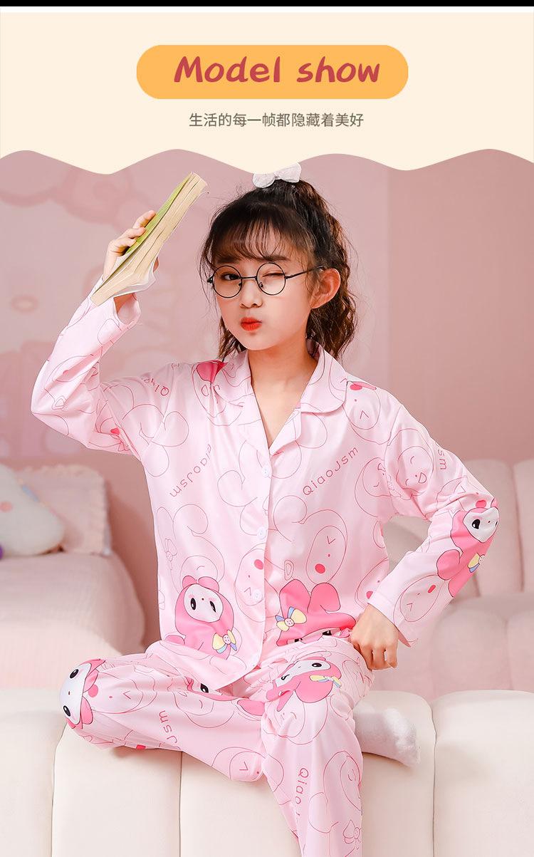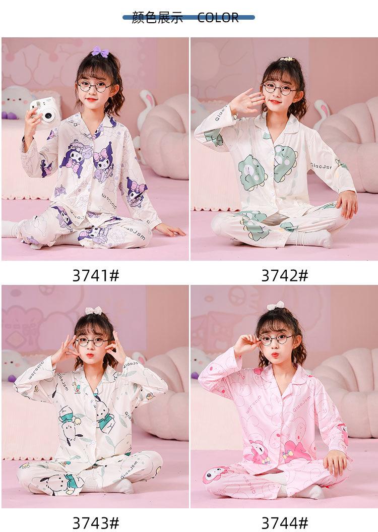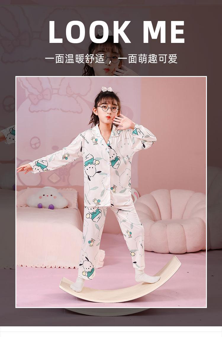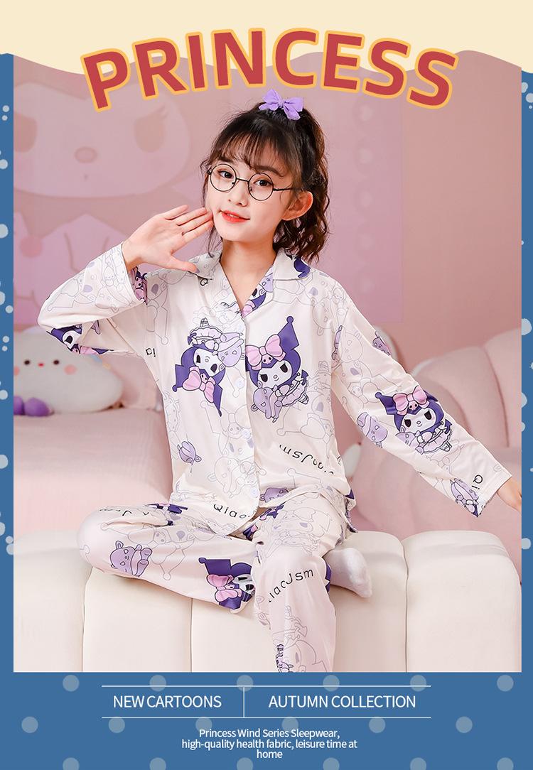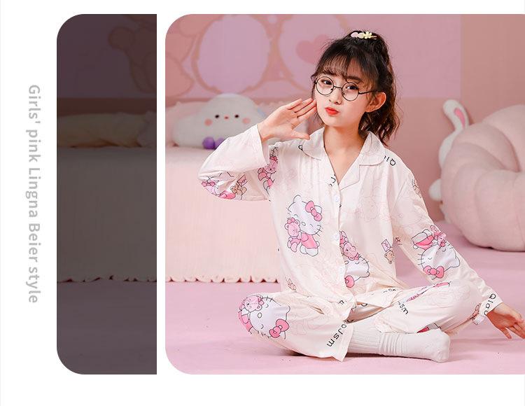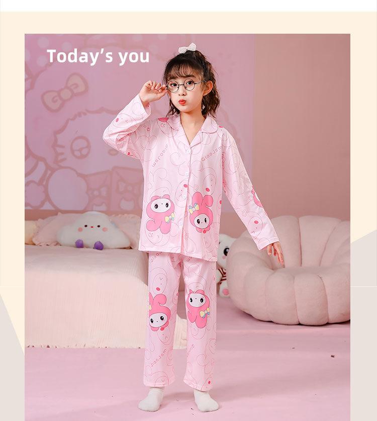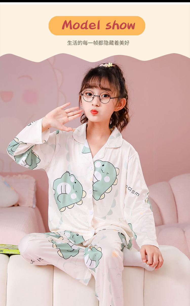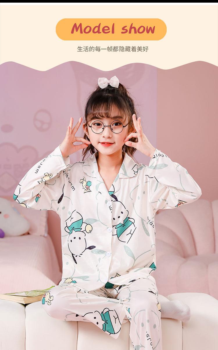 Pijamas de primavera y otoño para niños, cárdigan de mujer con solapa, manga larga, dulce conjunto de ropa de hogar para niños medianos y grandes con dibujos animados coreanos