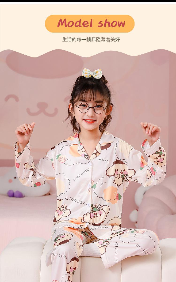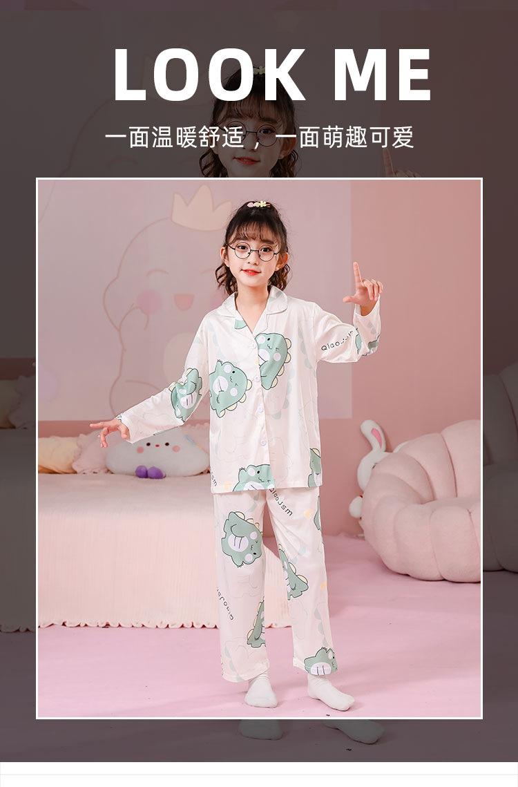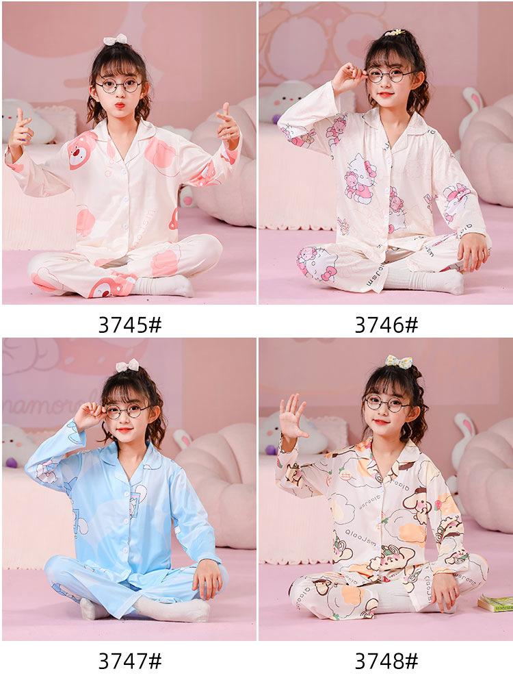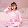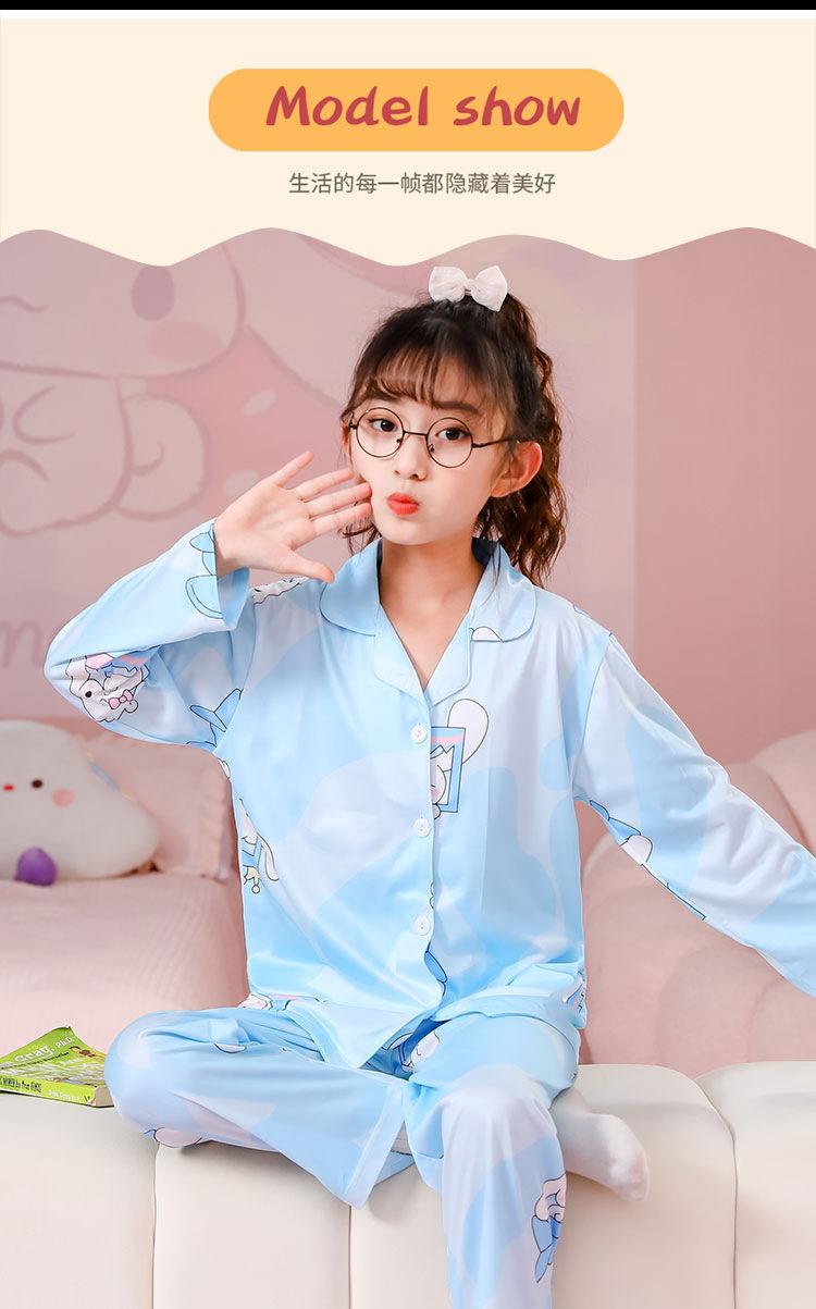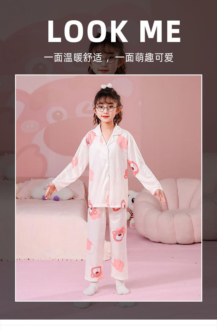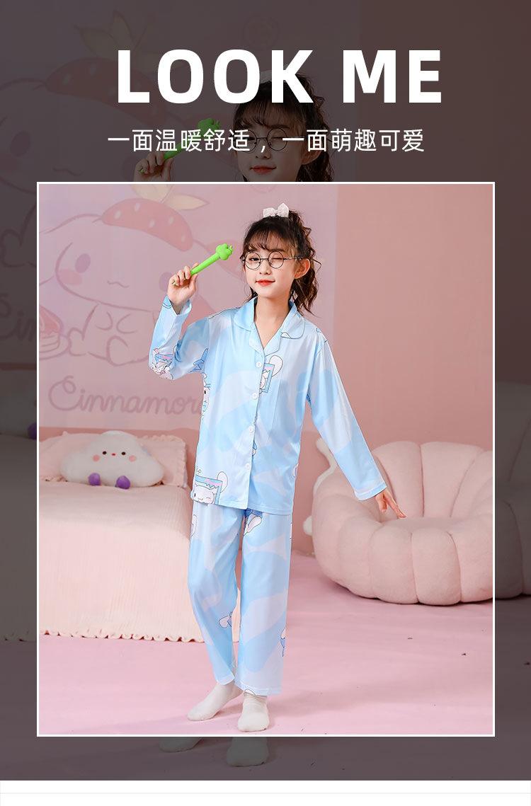 Pijamas de primavera y otoño para niños, cárdigan de mujer con solapa, manga larga, dulce conjunto de ropa de hogar para niños medianos y grandes con dibujos animados coreanos