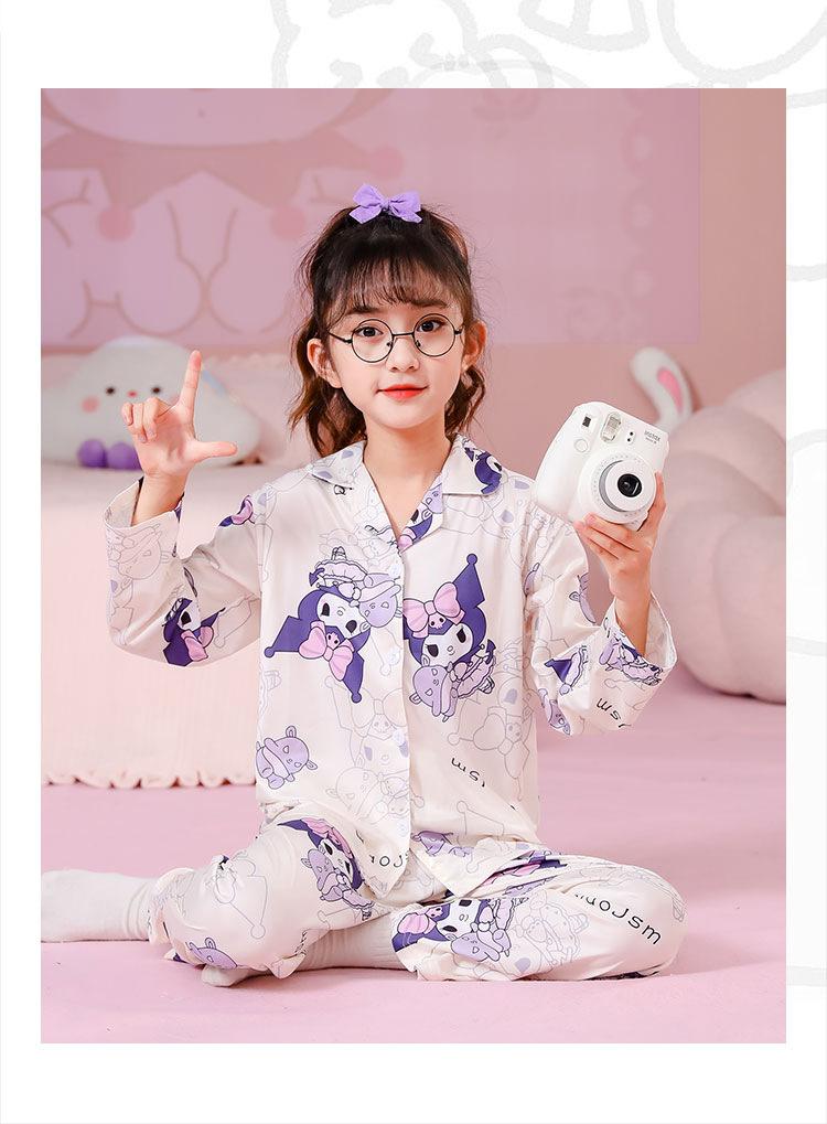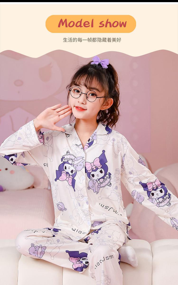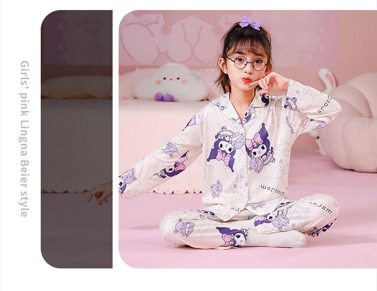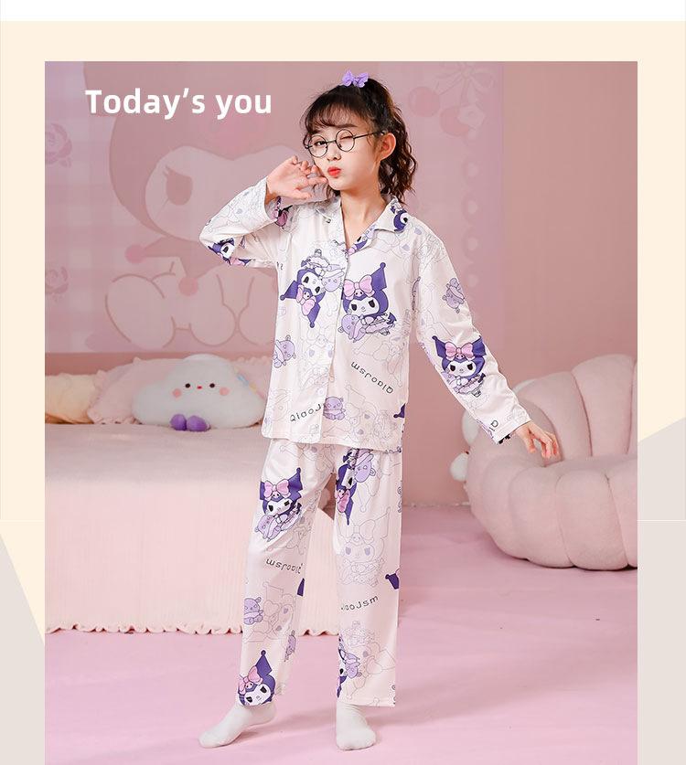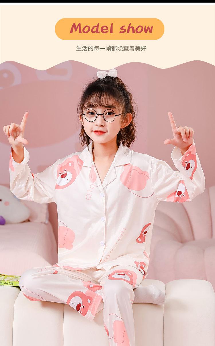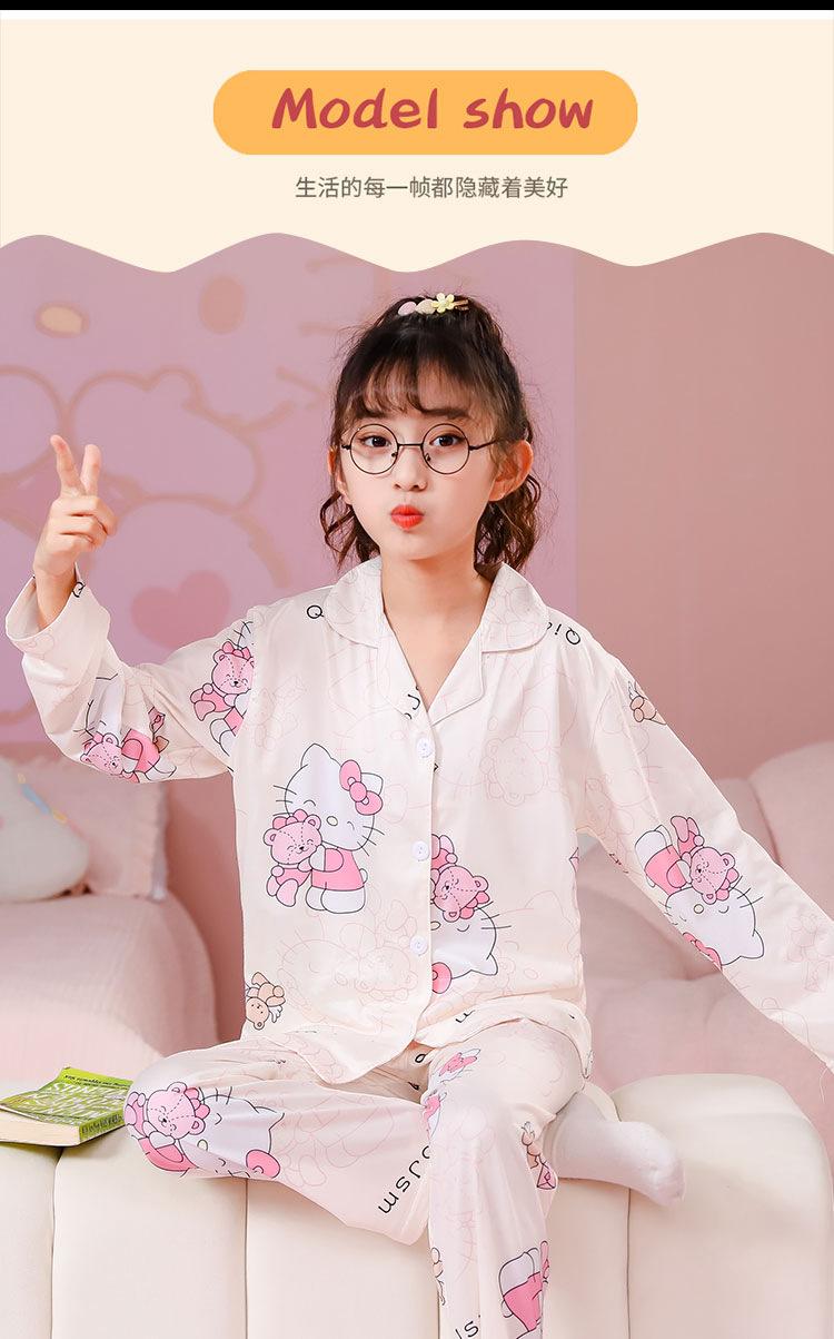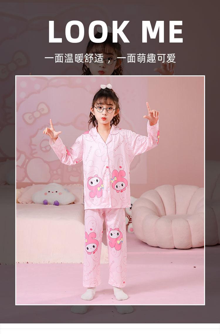 Pijamas de primavera y otoño para niños, cárdigan de mujer con solapa, manga larga, dulce conjunto de ropa de hogar para niños medianos y grandes con dibujos animados coreanos
