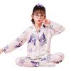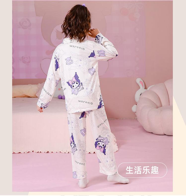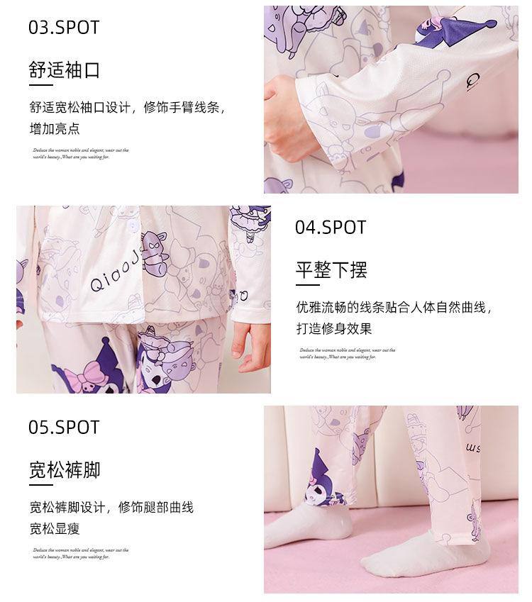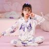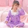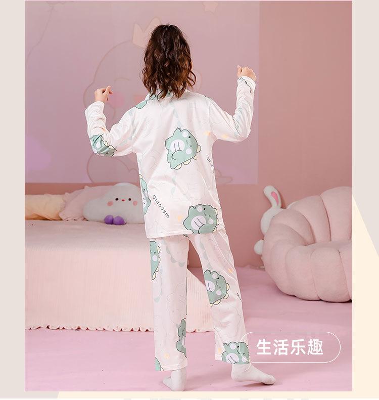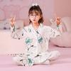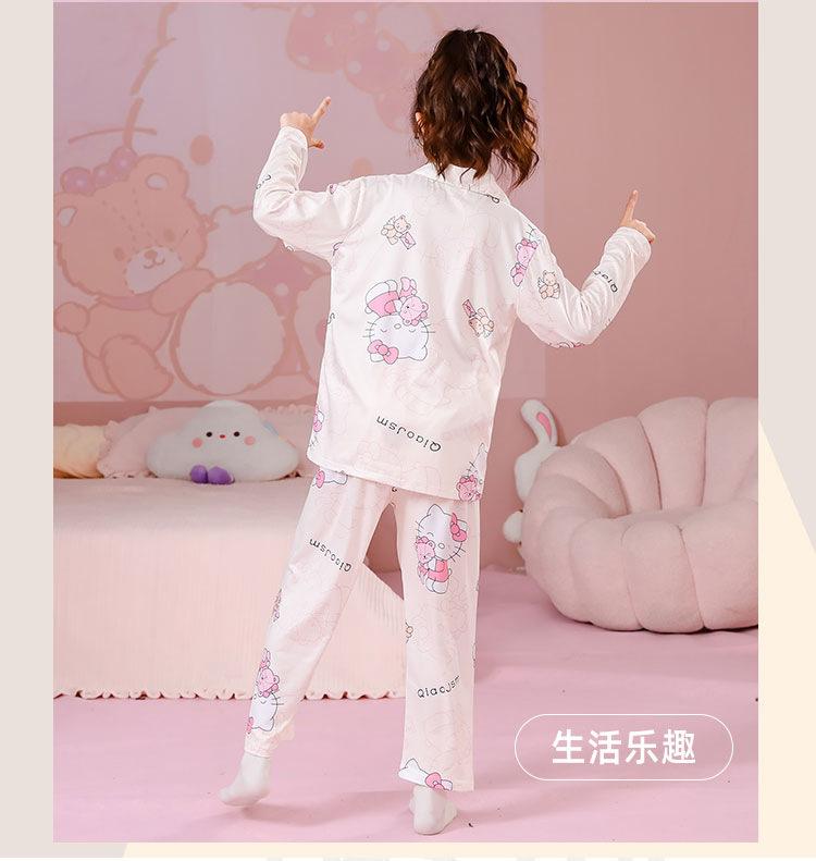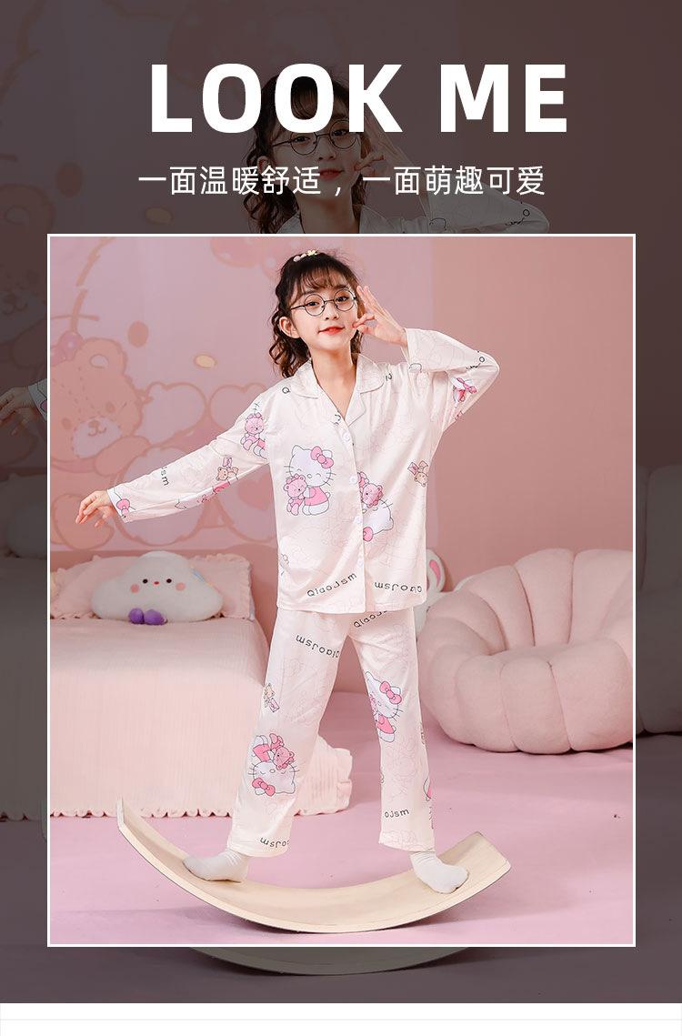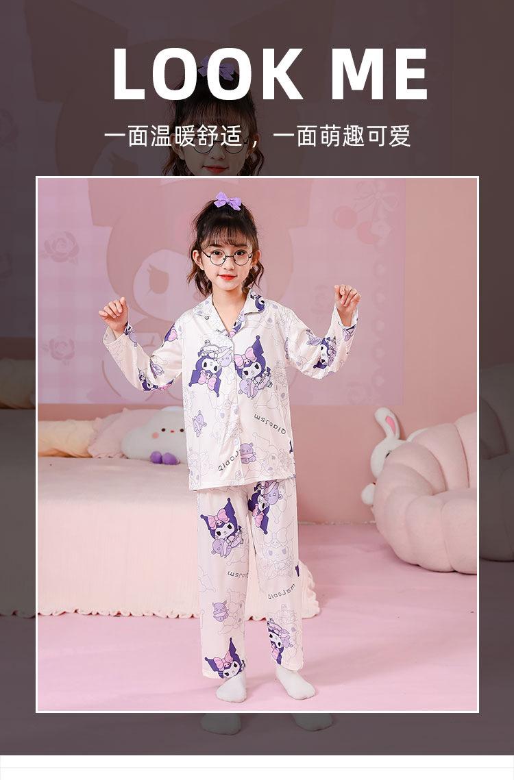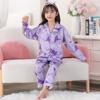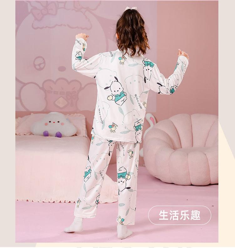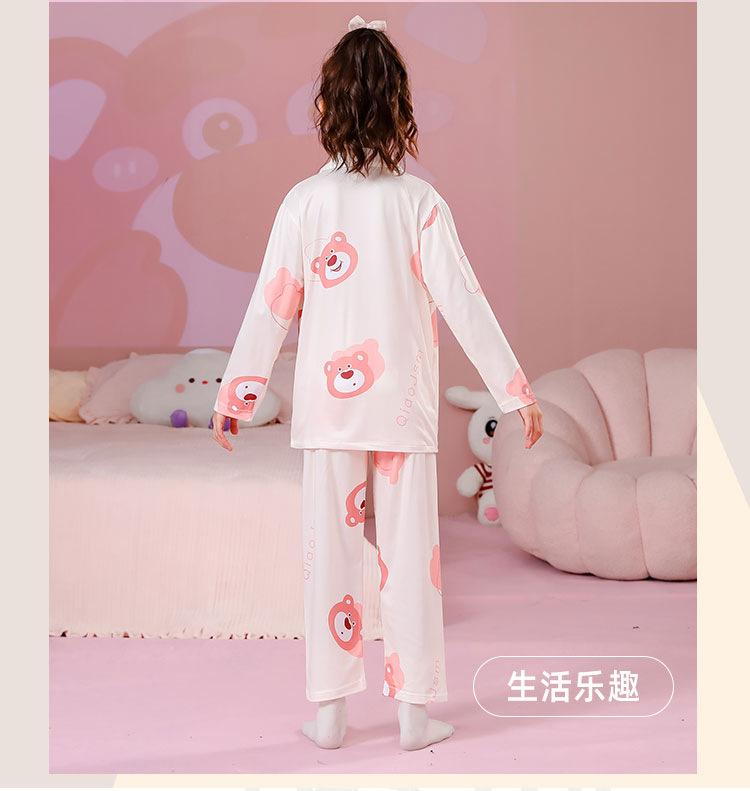 Pijamas de primavera y otoño para niños, cárdigan de mujer con solapa, manga larga, dulce conjunto de ropa de hogar para niños medianos y grandes con dibujos animados coreanos