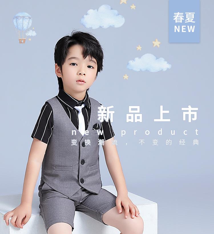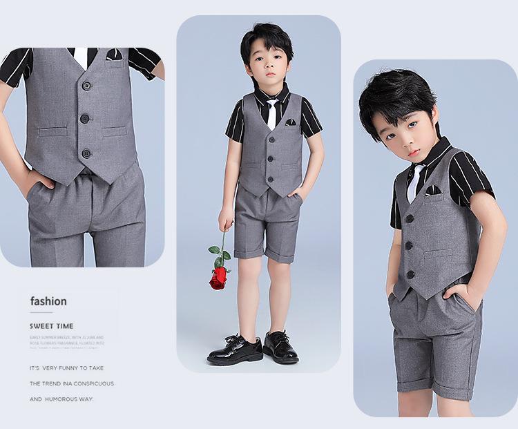 Vestido de verano para niño de un año, nuevo estilo coreano, chaleco infantil, traje de tres piezas para actuación de piano.