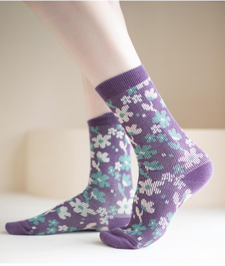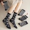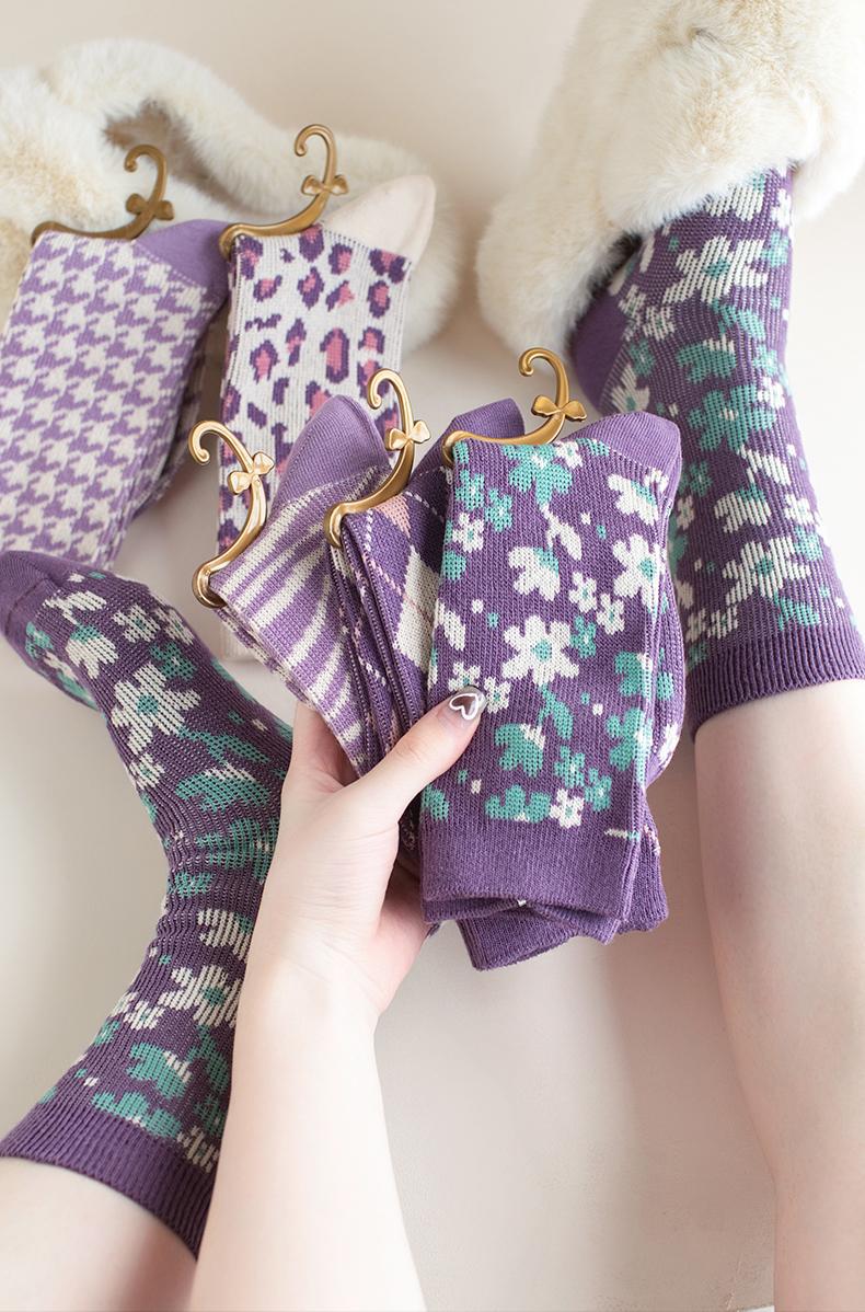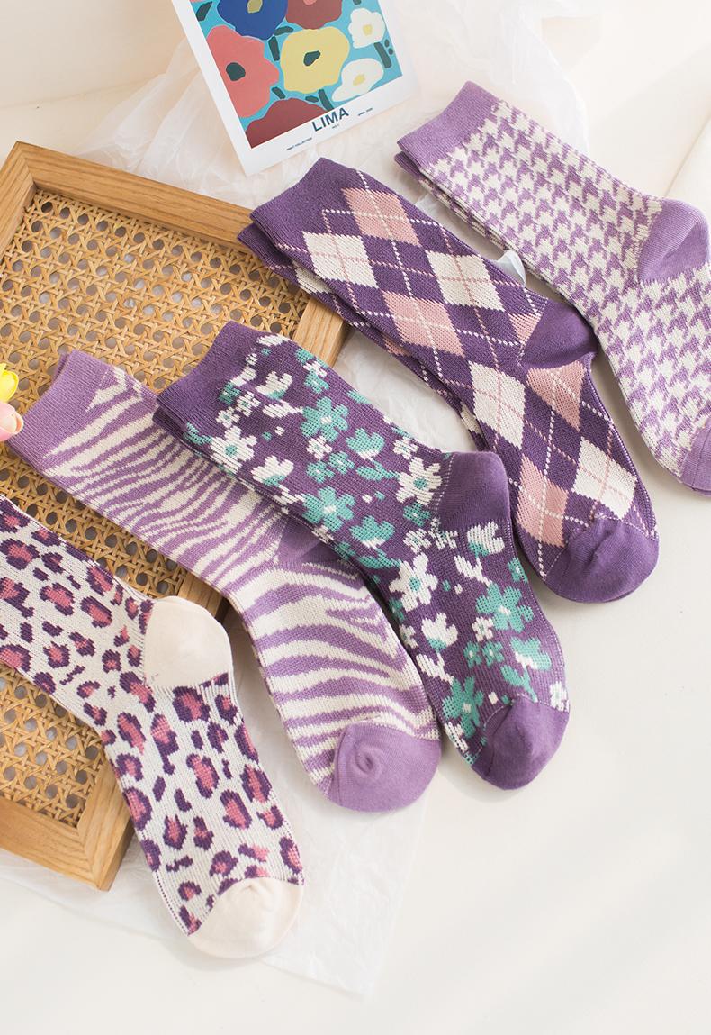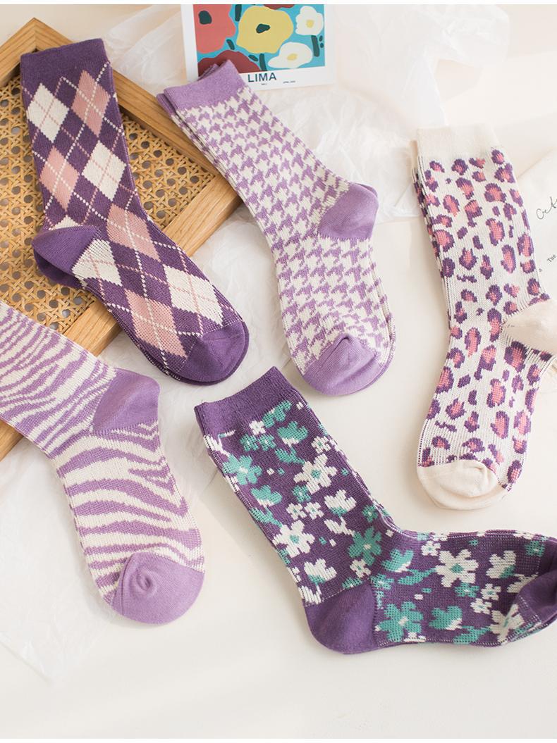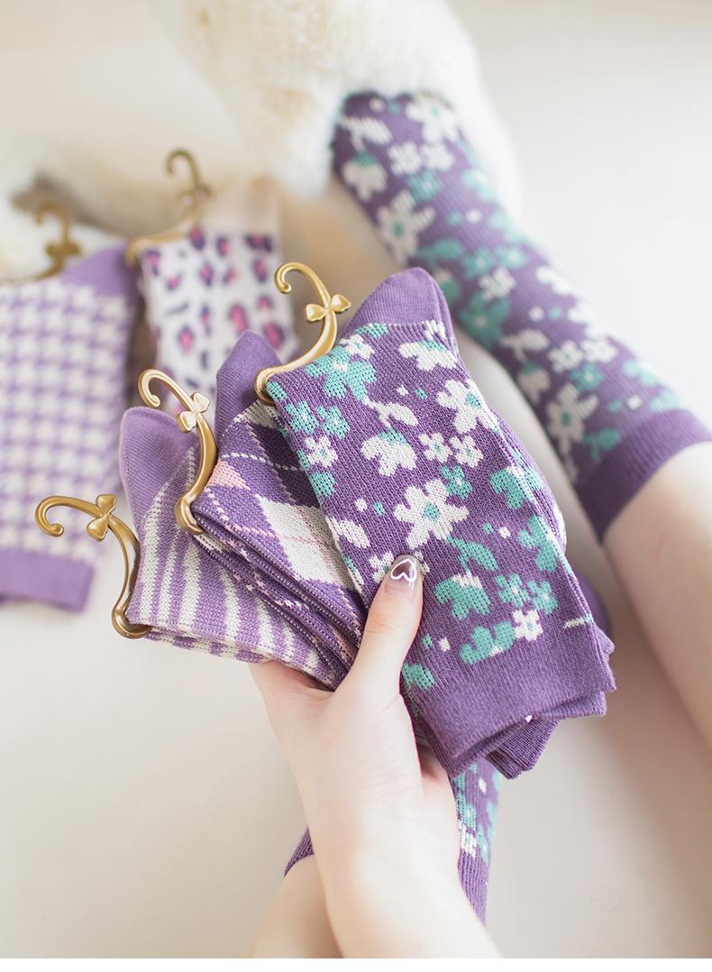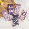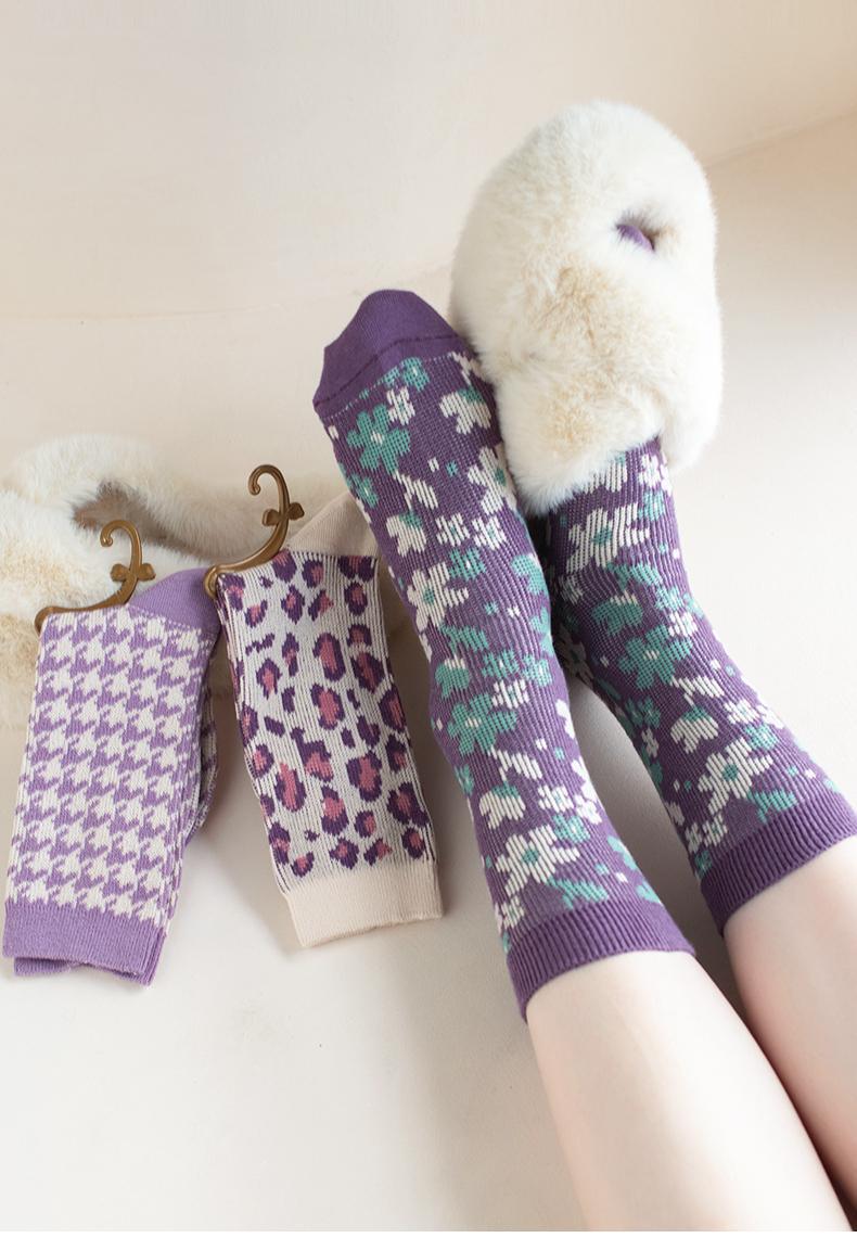 Otoño e Invierno nuevos calcetines de algodón para mujer estilo preppy retro versátiles japoneses y coreanos de media caña doble aguja doble vía boca suelta calcetines de rizo