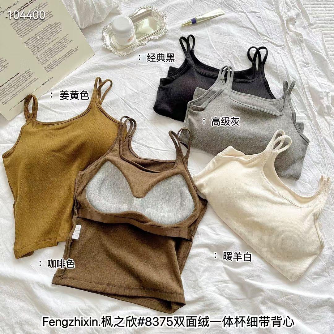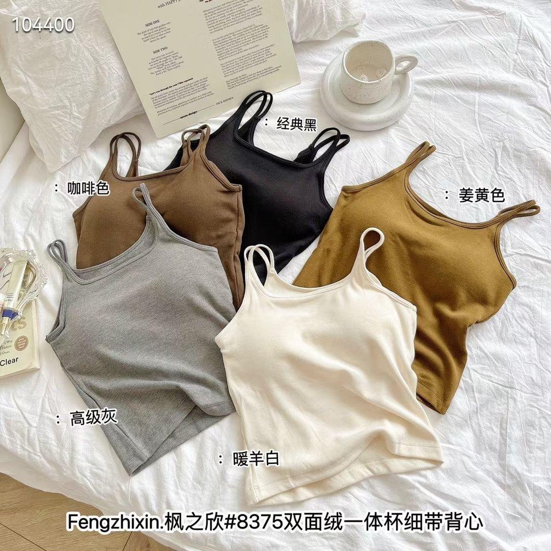 Chaleco cálido con almohadilla para el pecho cepillada y correa de hombro fina fija, ropa interior adelgazante elástica para otoño e invierno para mujer