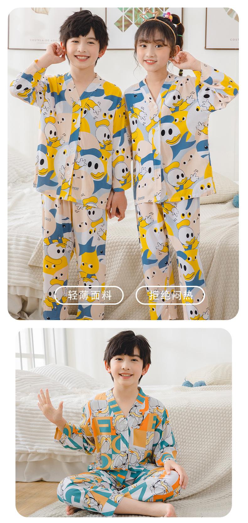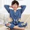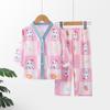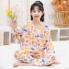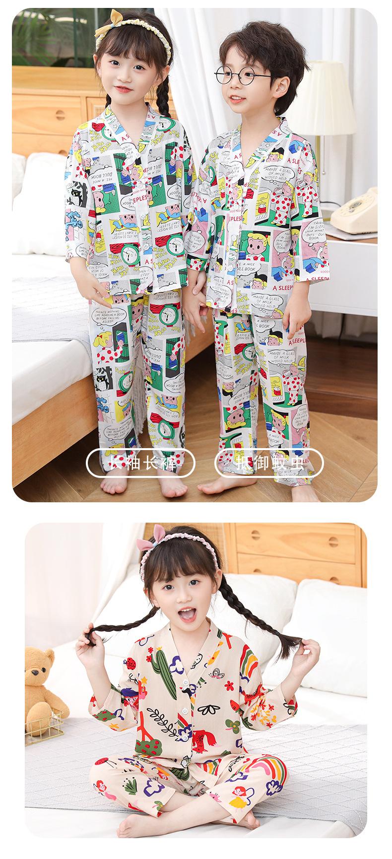 Pijamas de Algodón Seda Ropa para el Hogar para Niños Ropa para Aire Acondicionado Cuello en V Manga Larga Niños y Niñas Ropa de Verano para Bebés Ropa para Niños Algodón Verano