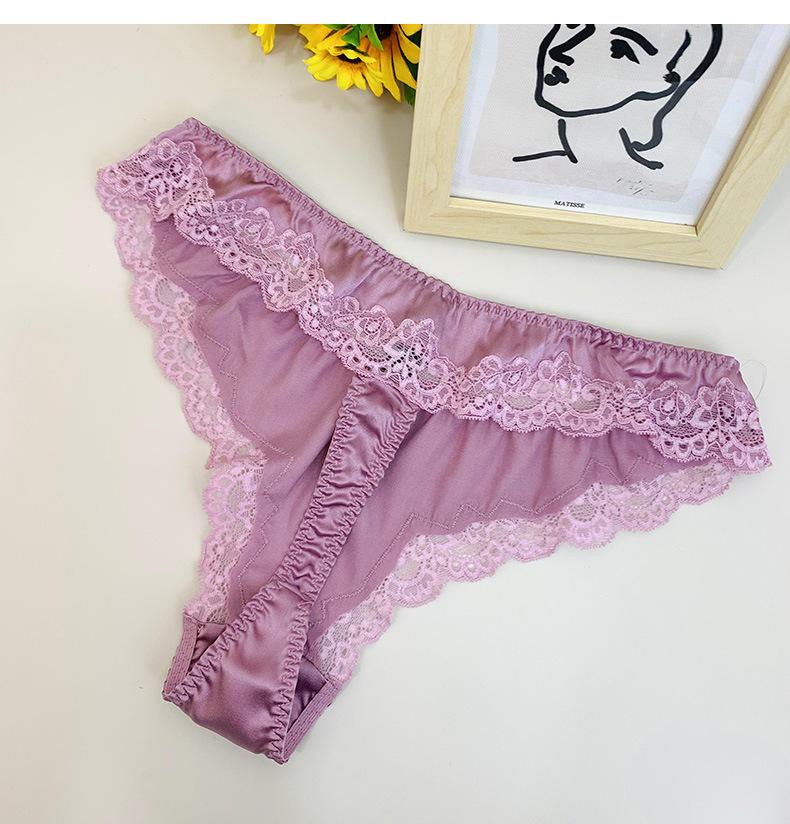 Fábrica transfronteriza al por mayor para mujer tanga sexy de seda de morera de cintura baja para adulto mujer púrpura ropa interior sexy de seda