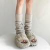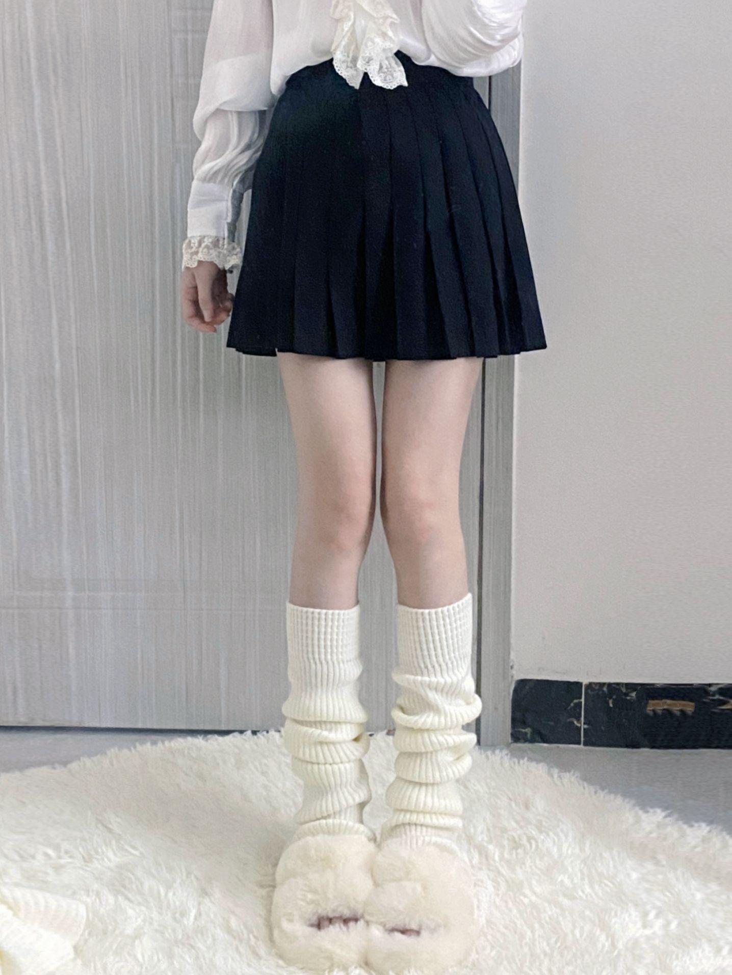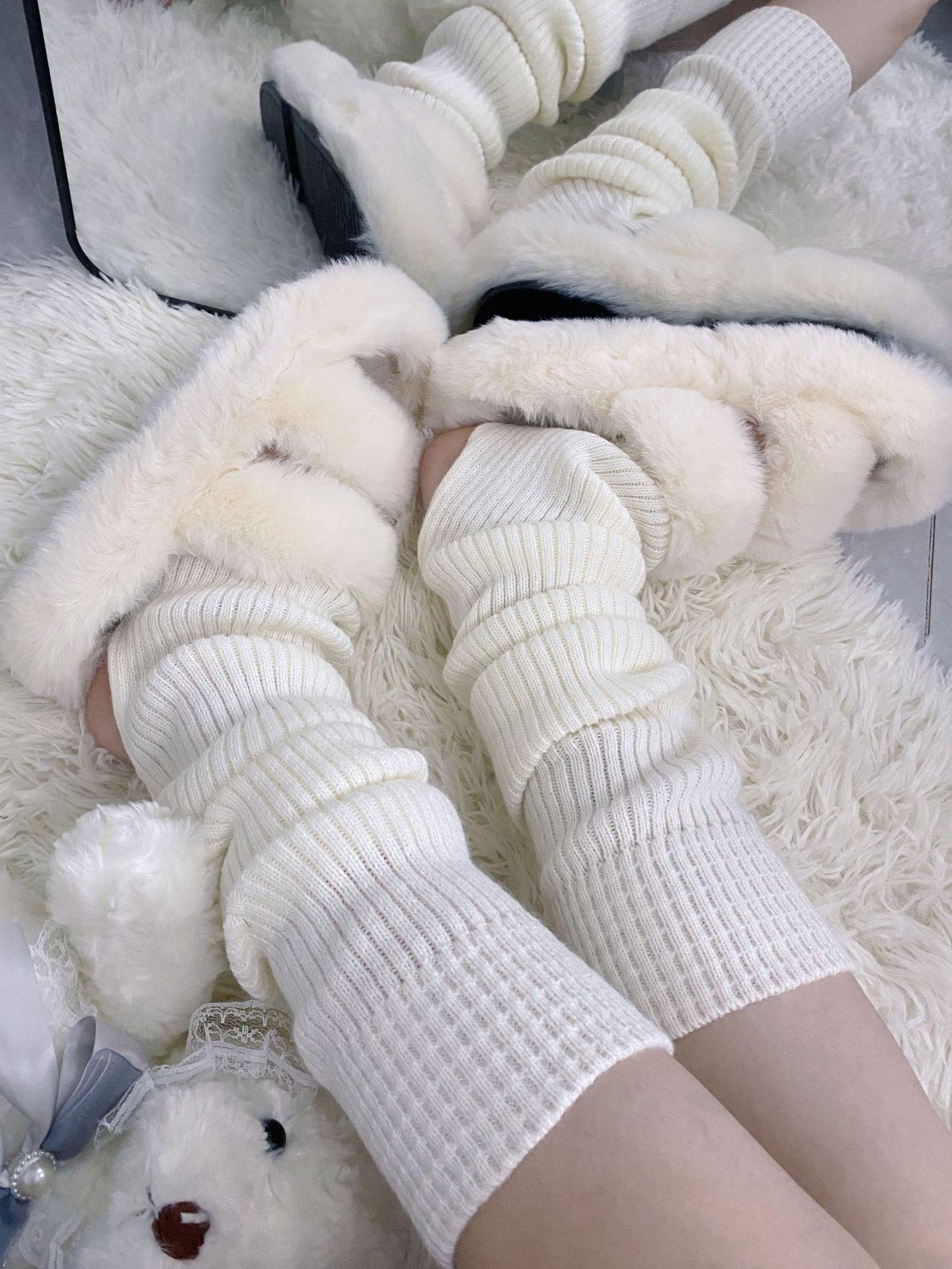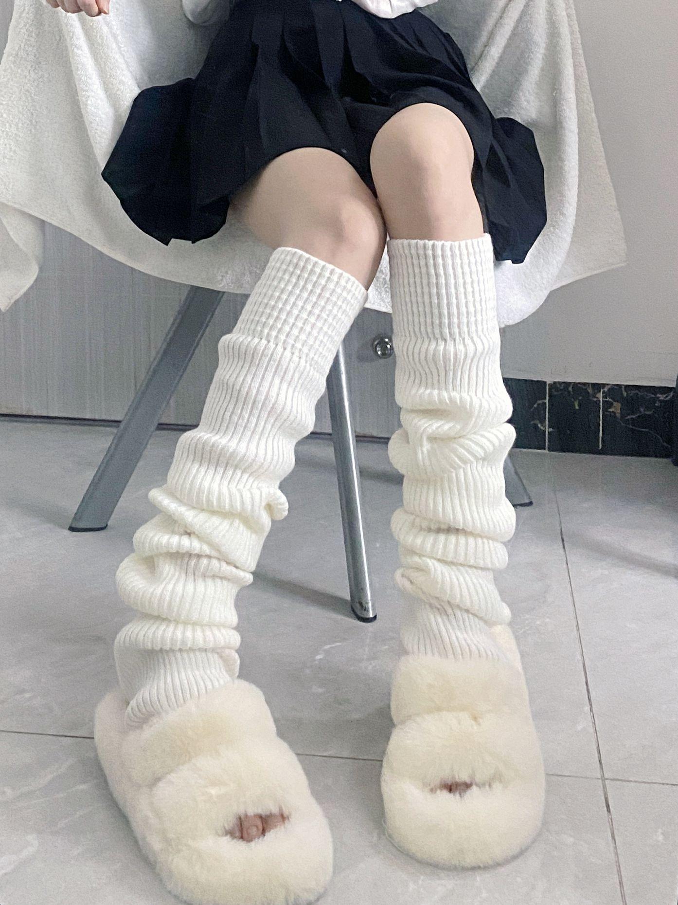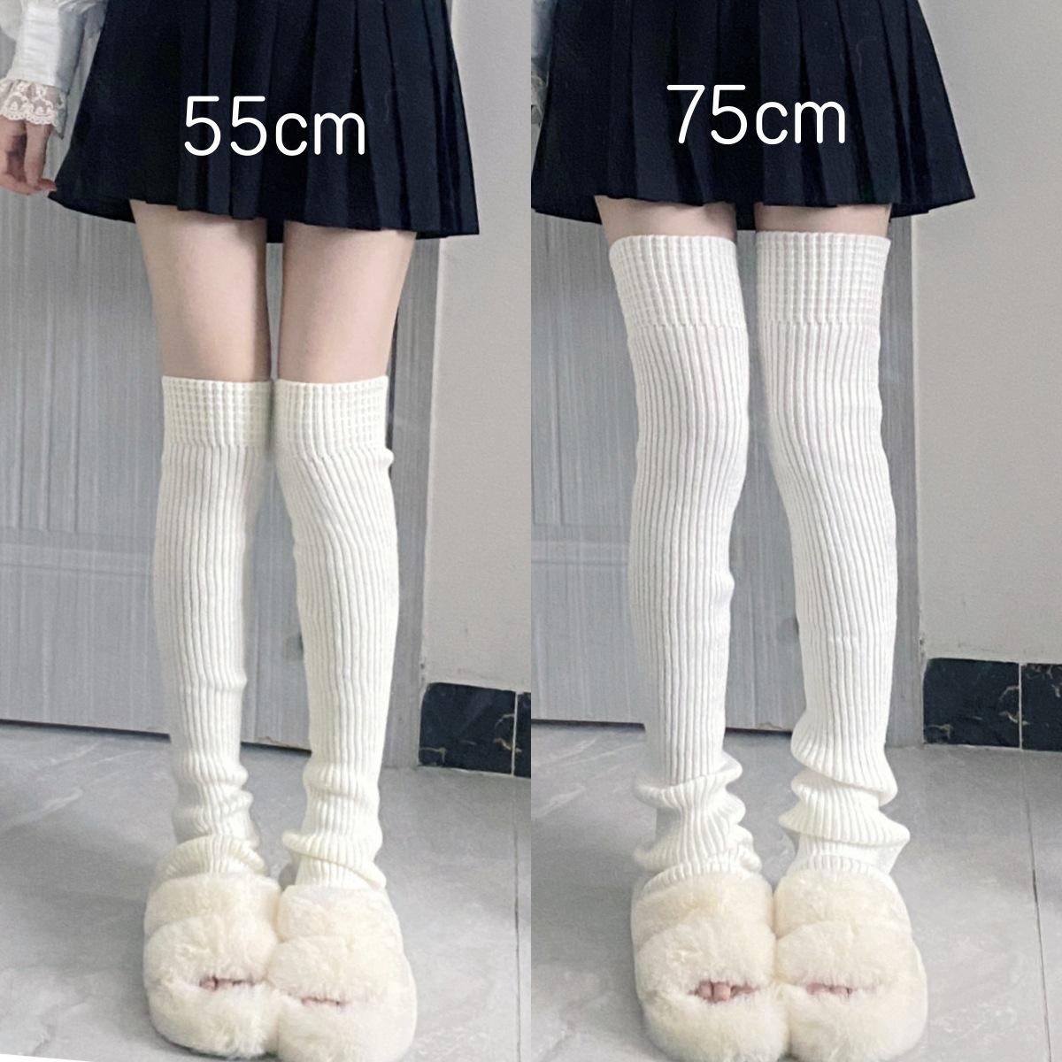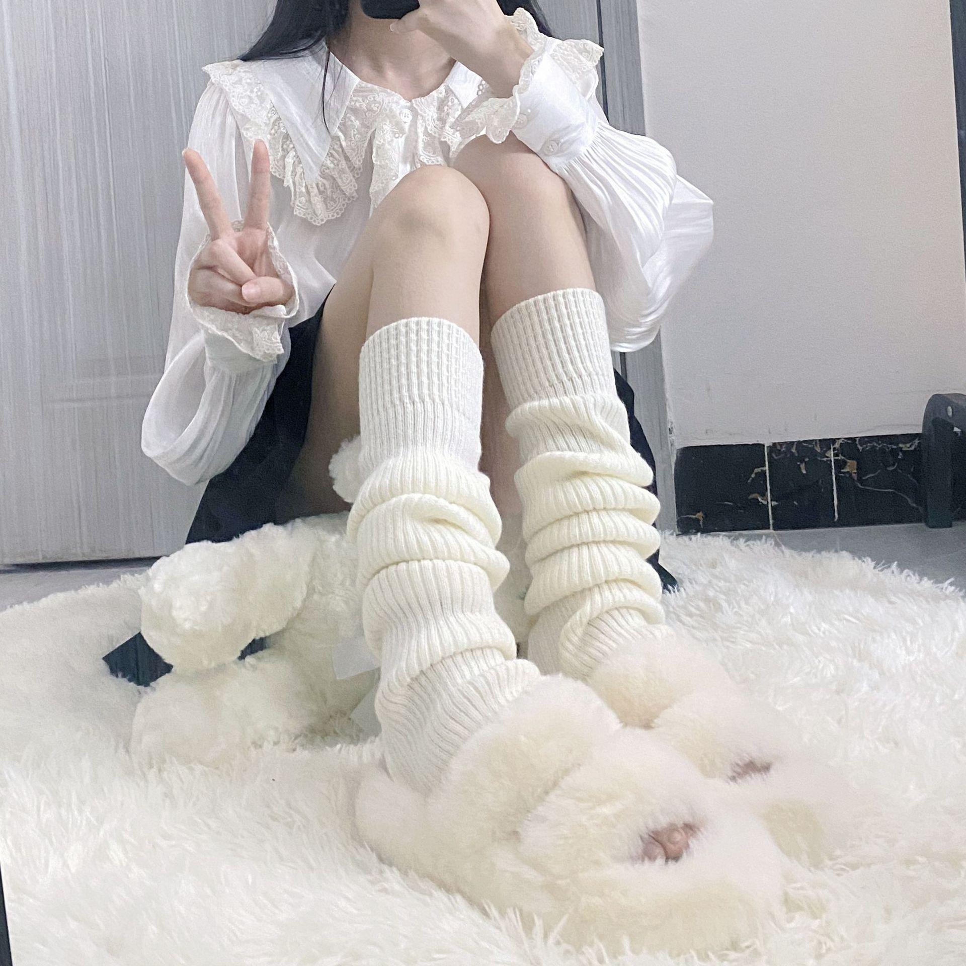 Calcetines por encima de la rodilla para mujer, de punto blanco, hasta la mitad de la pantorrilla, cálidos, japoneses, para otoño e invierno