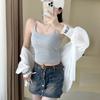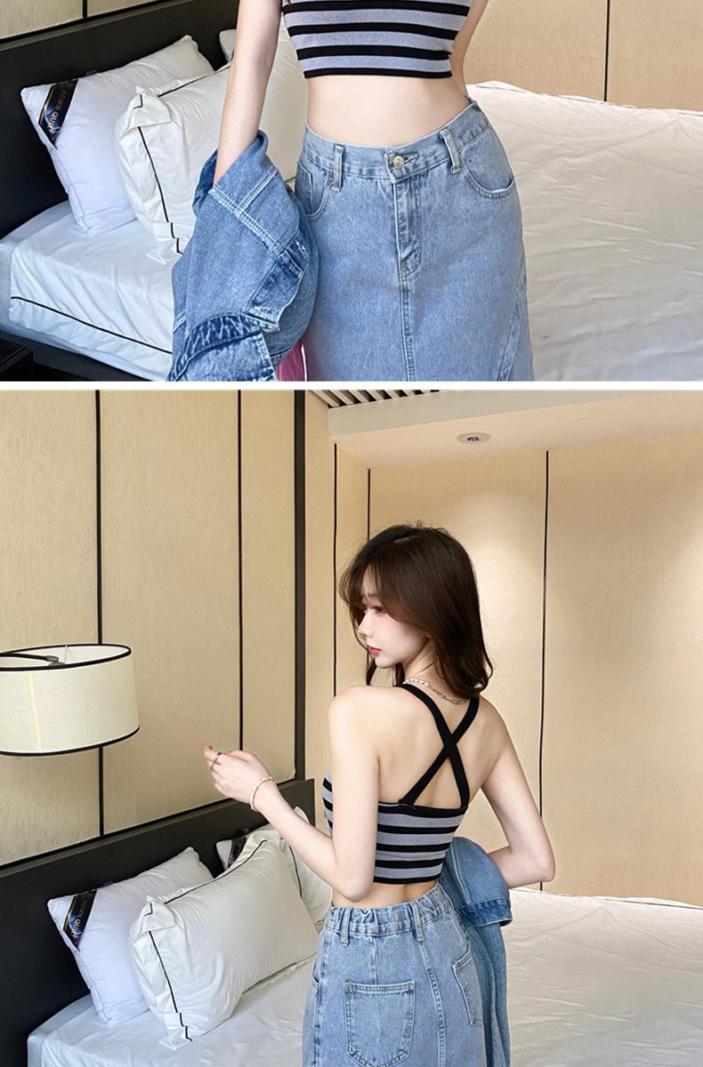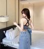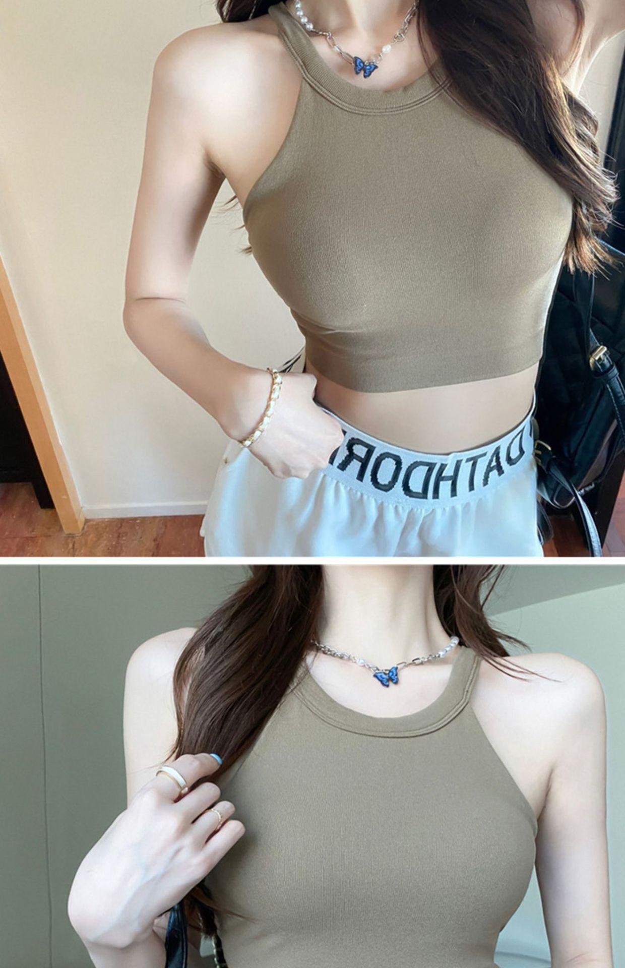 Camisola de Espalda Hermosa Estilo Spice Girl Pura para Mujer con Cinturón y Almohadilla para el Pecho Integrada Ropa Interior Base Caliente Top Corto de Cintura Alta