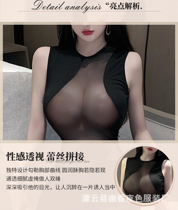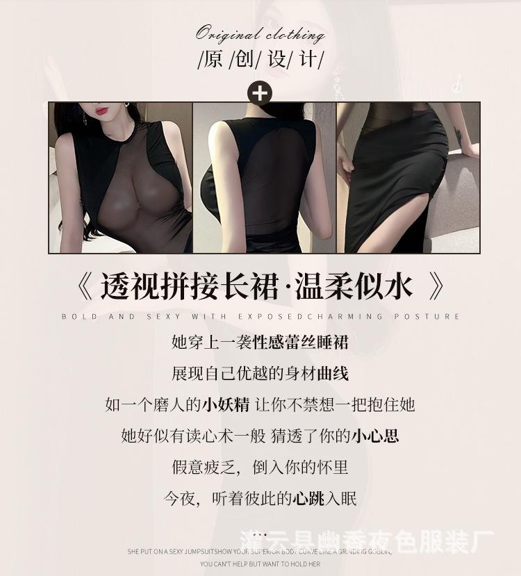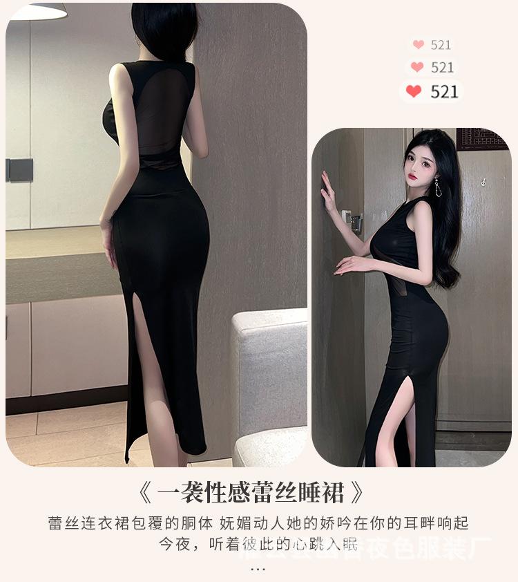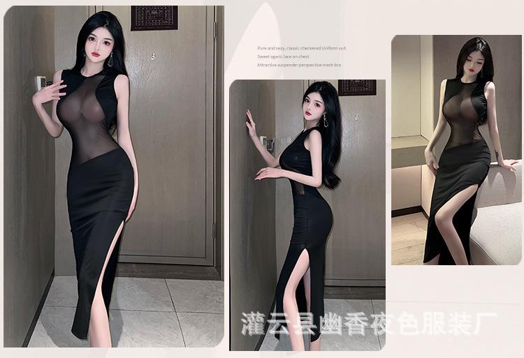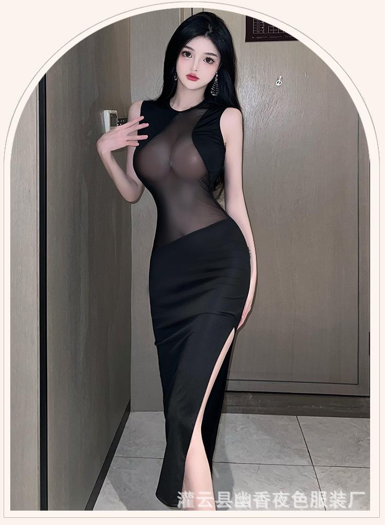 Lin Linting Ropa Interior Sexy Vestido de Malla con Perspectiva Sexy para Mujer con Abertura en la Pierna, Corte Slim, Adelgazante 1228