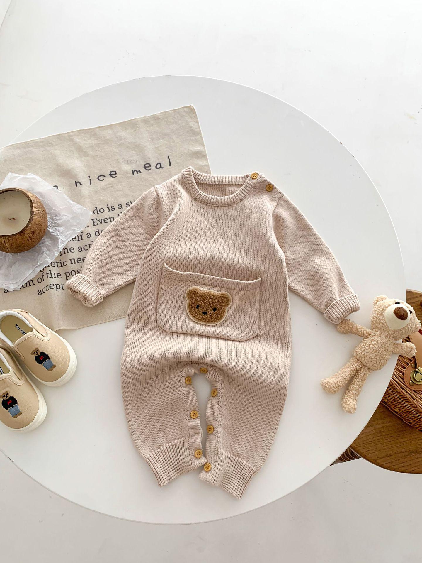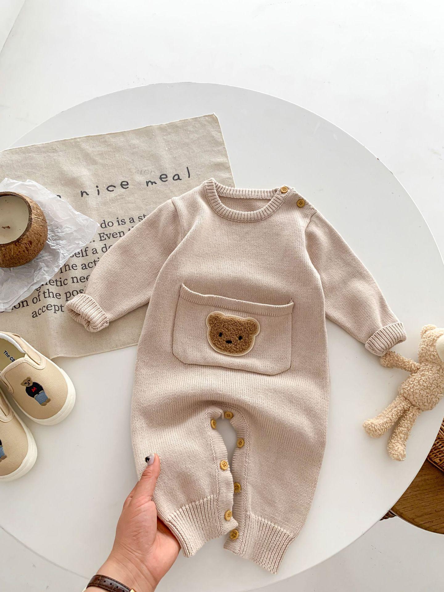 Mono de punto de manga larga para bebés y niñas, traje de escalada de dibujos animados para bebés, suéter informal de estilo occidental, primavera y otoño