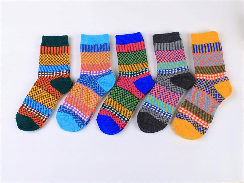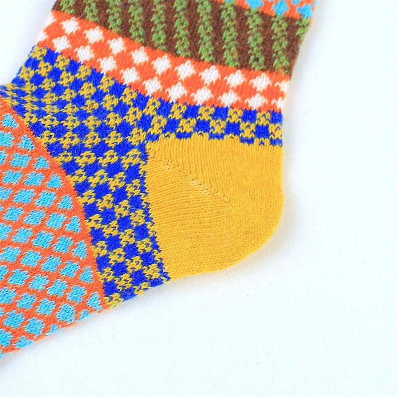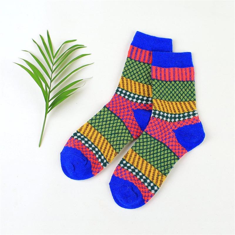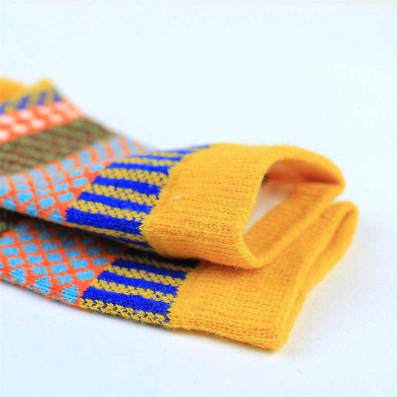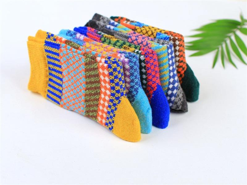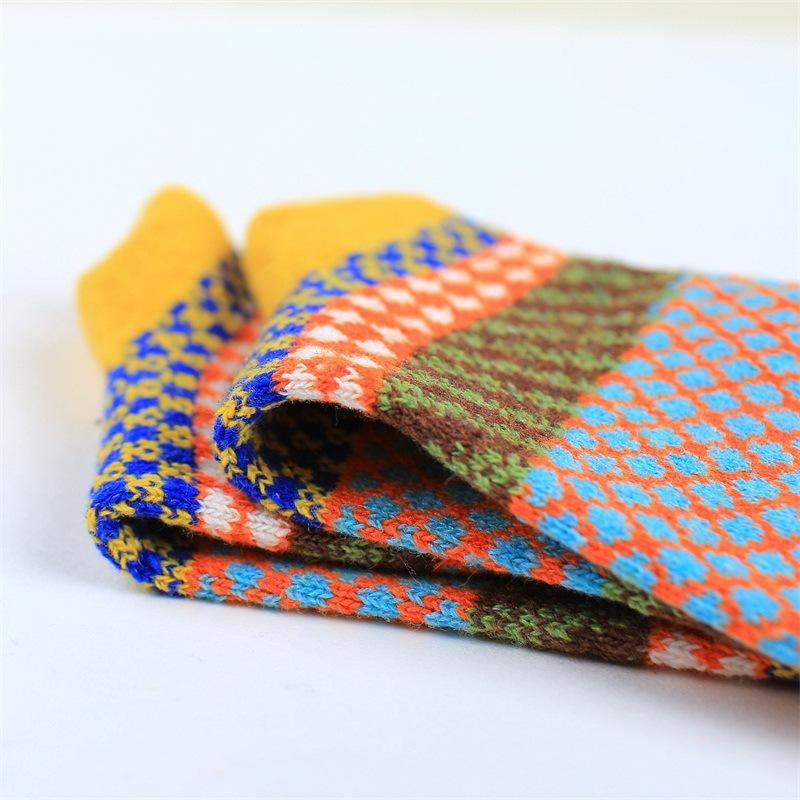 Calcetines de lana tutú de invierno para mujer, calcetines tótem de ráfaga de color en contraste de doble carretera, calcetines de tubo vintage gruesos y cálidos, calcetines de algodón