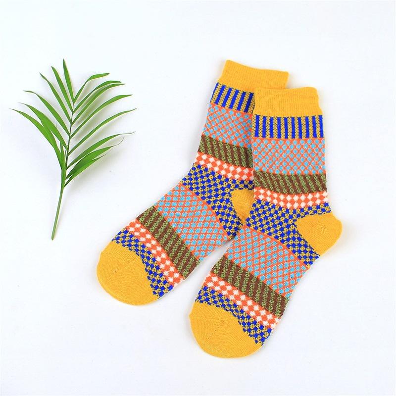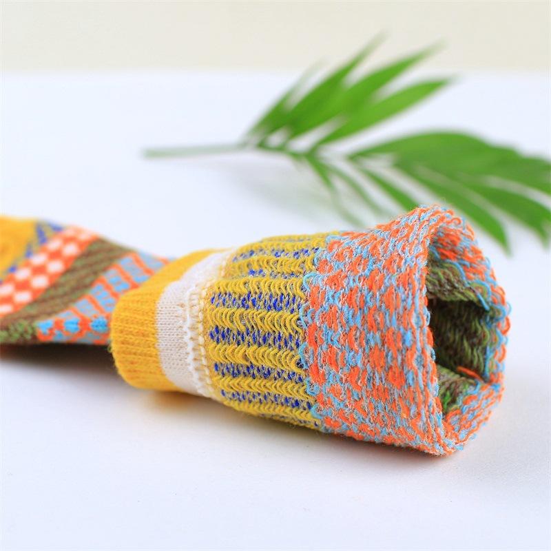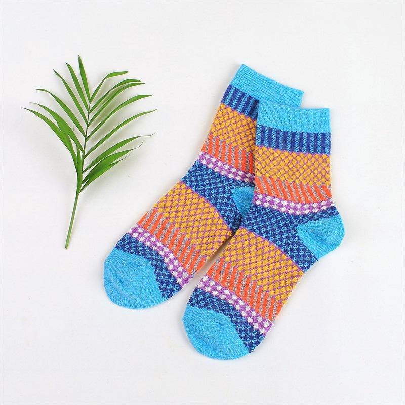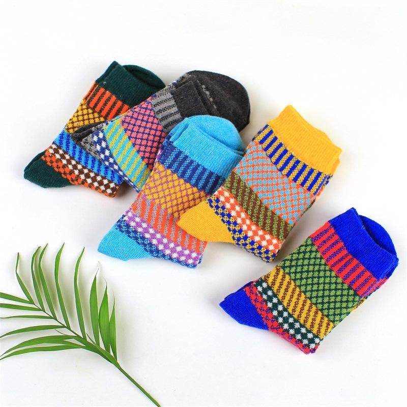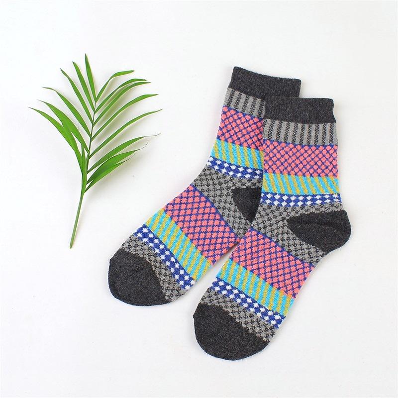 Calcetines de lana tutú de invierno para mujer, calcetines tótem de ráfaga de color en contraste de doble carretera, calcetines de tubo vintage gruesos y cálidos, calcetines de algodón