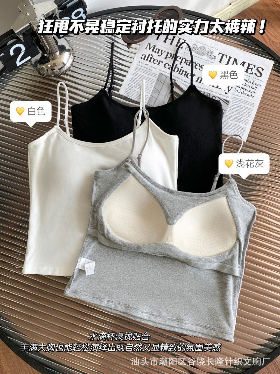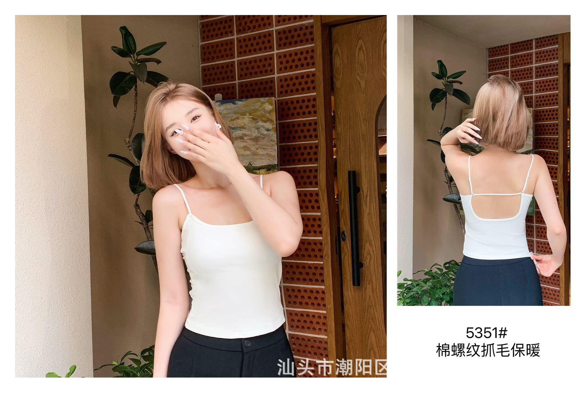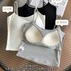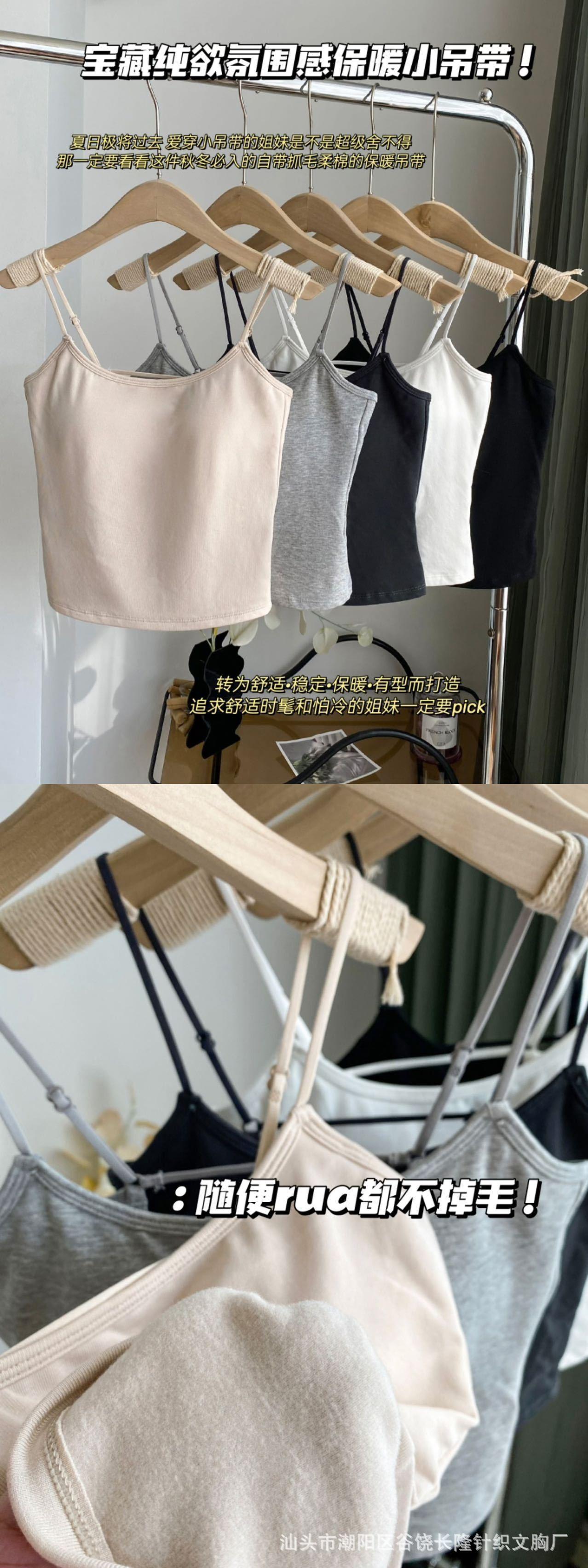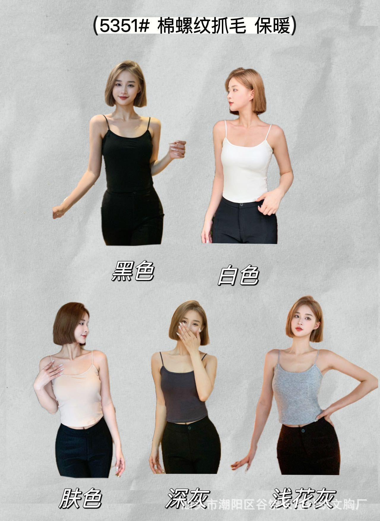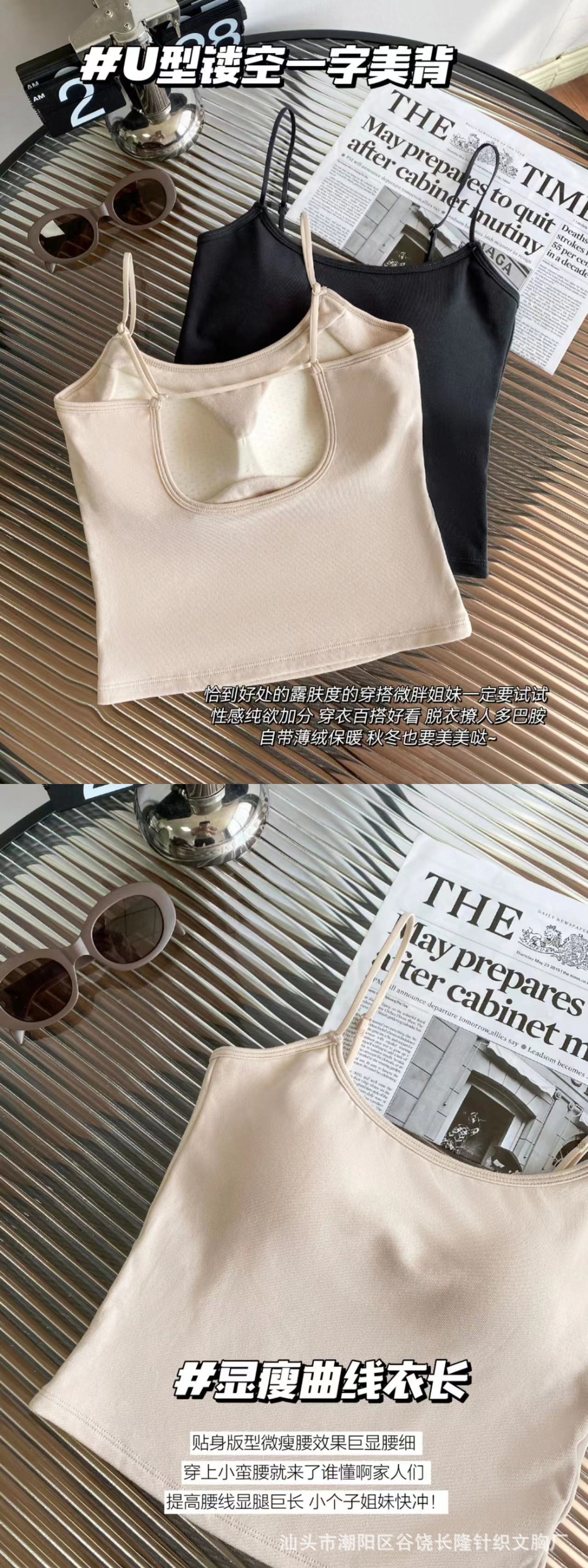 Otoño e Invierno hilo algodón cepillado térmico camisola tirante ajustable almohadilla pecho sexy térmico fondo ropa interior espalda