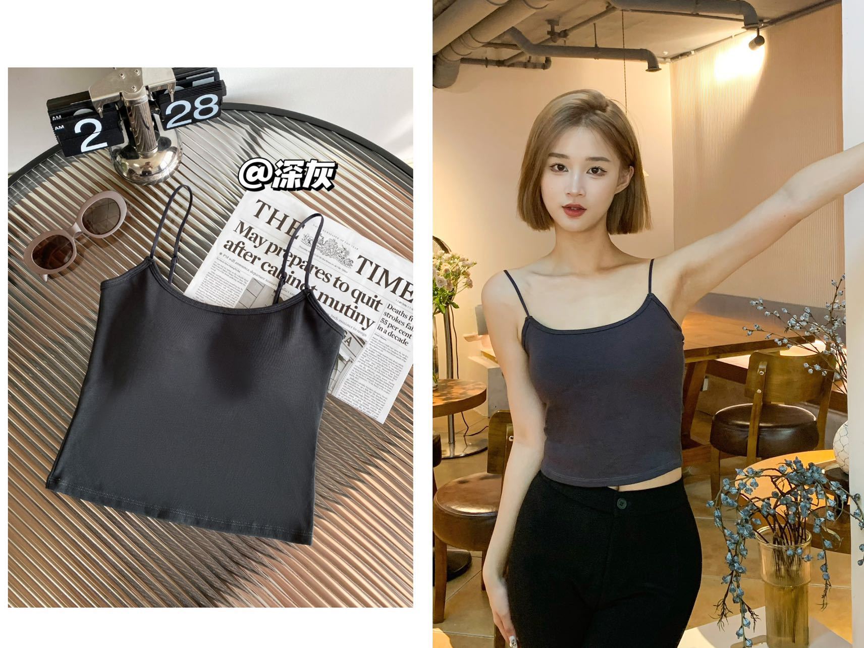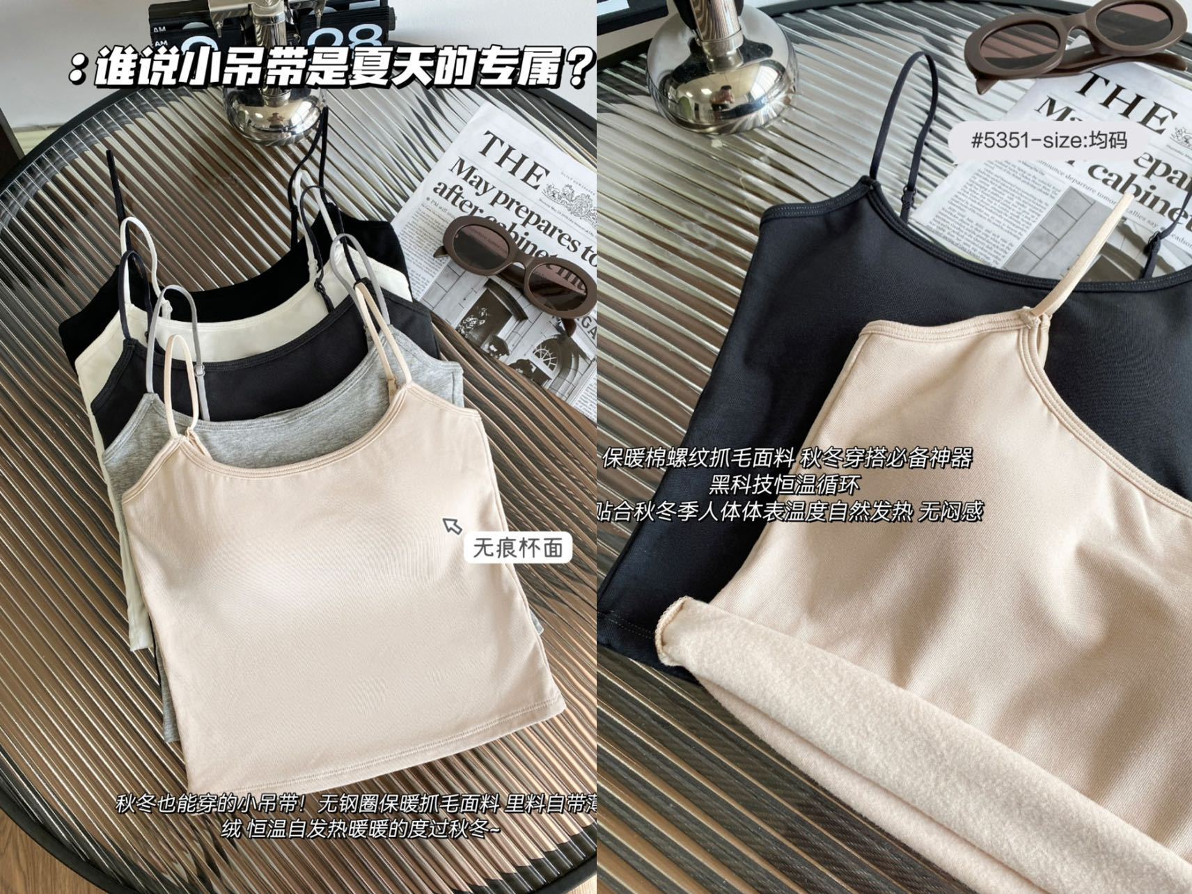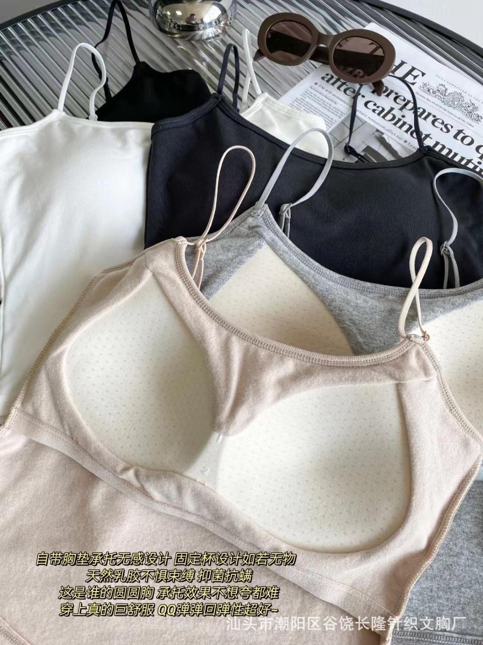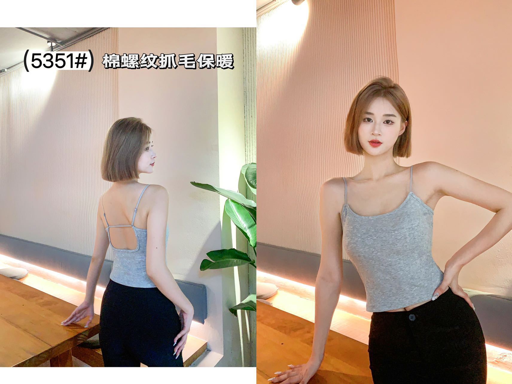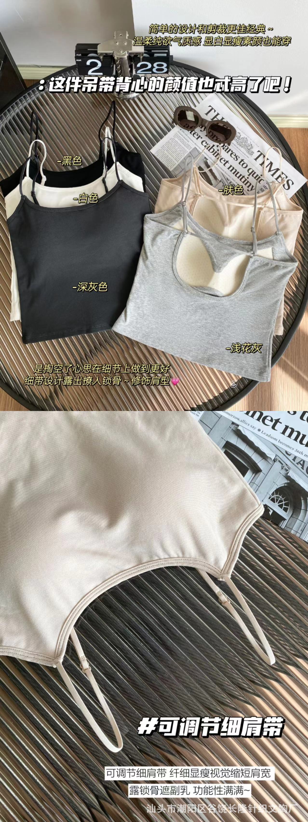 Otoño e Invierno hilo algodón cepillado térmico camisola tirante ajustable almohadilla pecho sexy térmico fondo ropa interior espalda