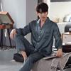 Pijamas de hombre Han Yatong nuevos de satén de gasa para primavera y verano, de seda, de manga larga, para el hogar, pijamas de seda helada para mujer de otoño