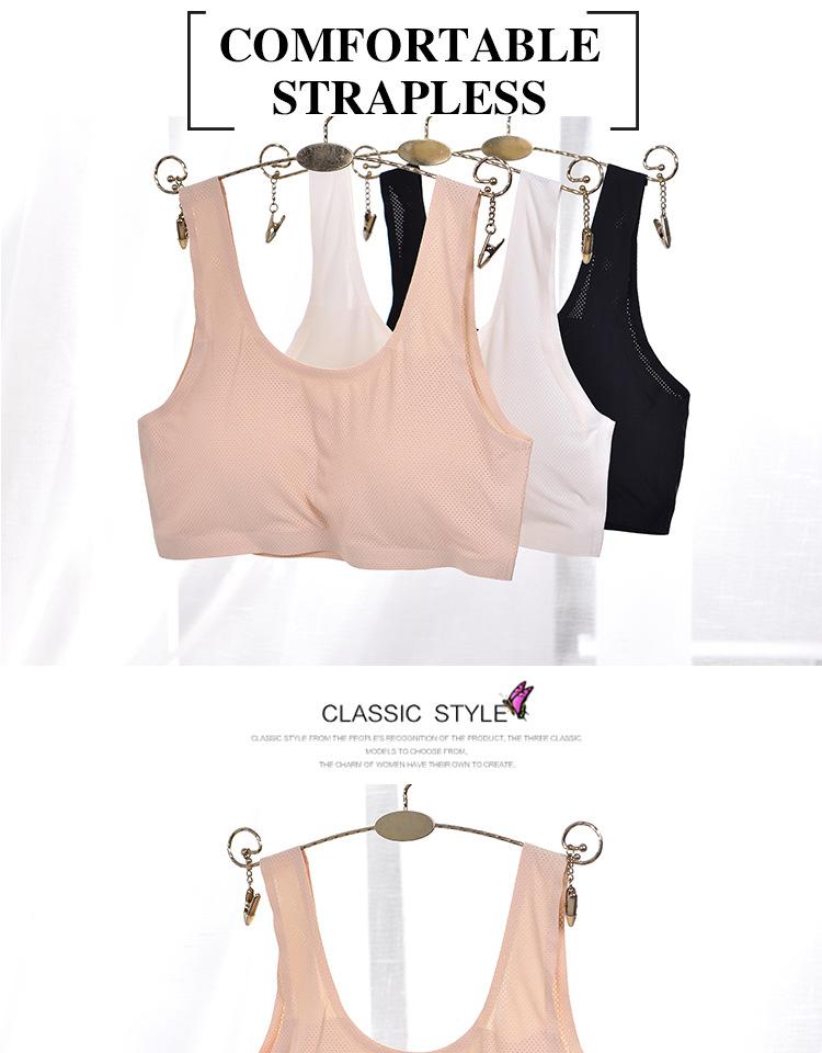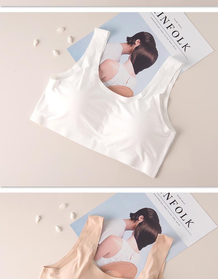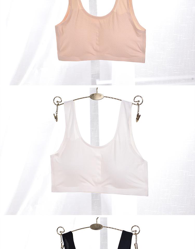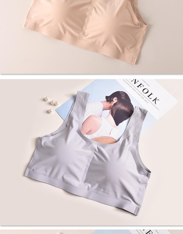 Top de tubo de seda de hielo anti-exposición con agujeros transpirables, fondo de una pieza ligero sin costuras, pecho envuelto, chaleco sin varillas, sujetador deportivo