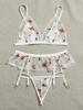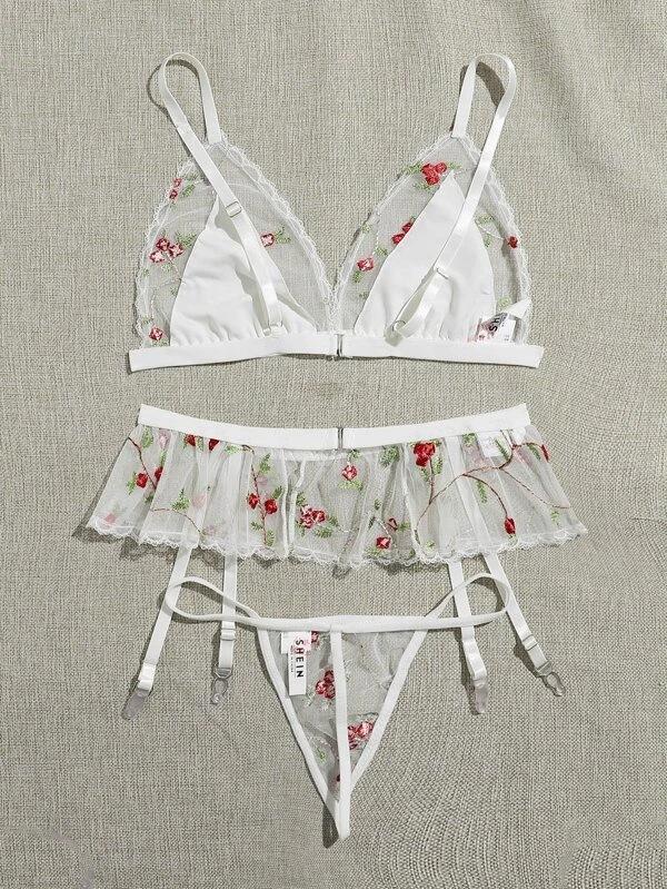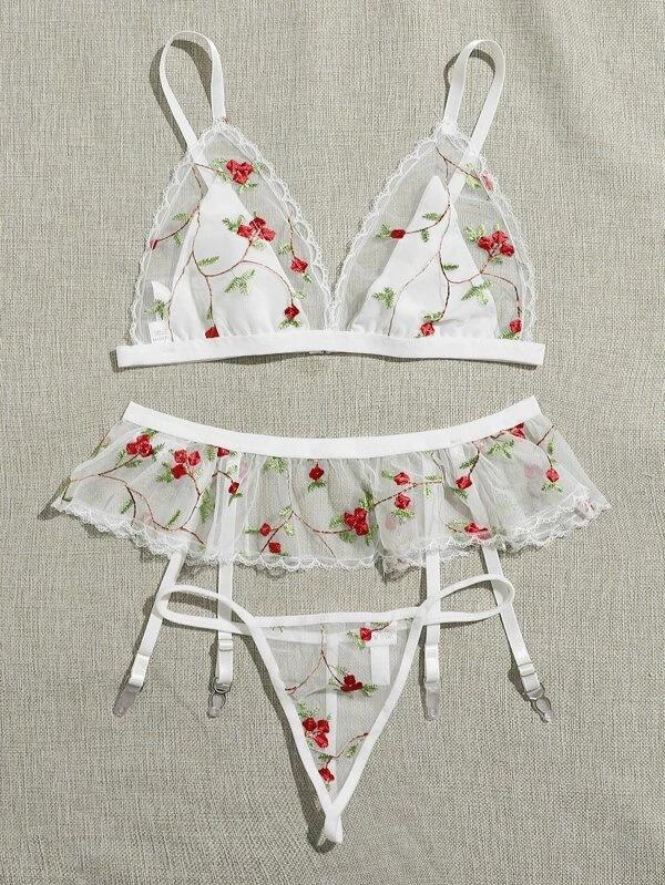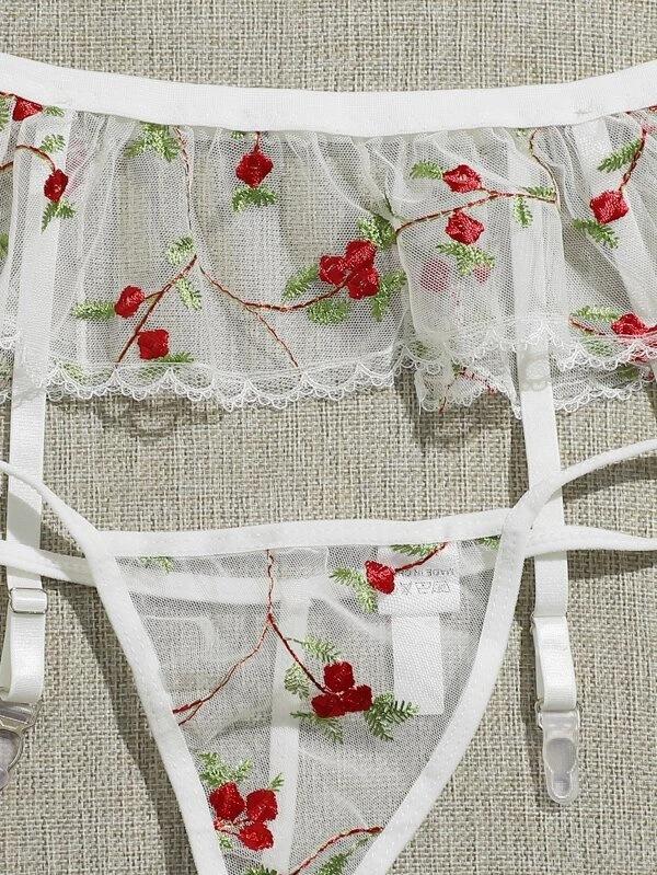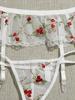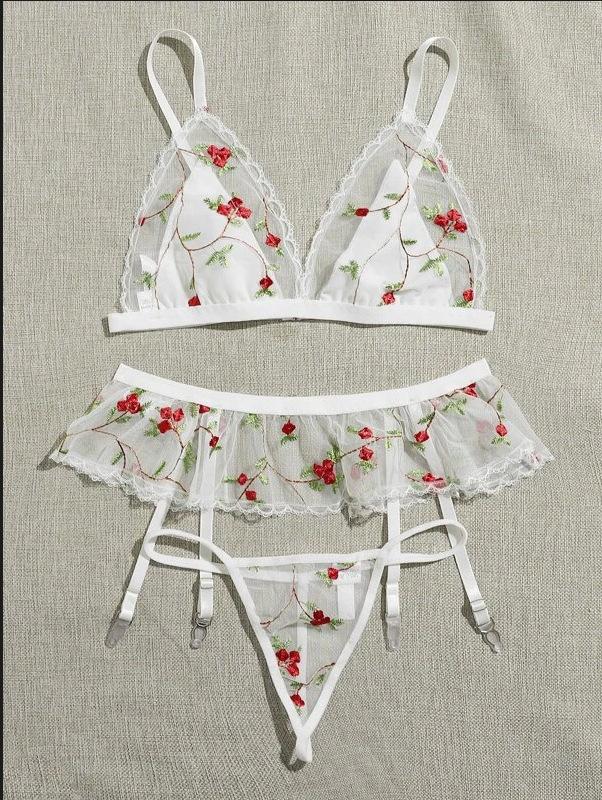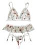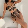 Lencería Transfronteriza de Nuevo Estilo Europeo y Americano, Set de Tres Piezas de Liguero de Malla de Encaje Fresco y Sexy, Venta al por Mayor