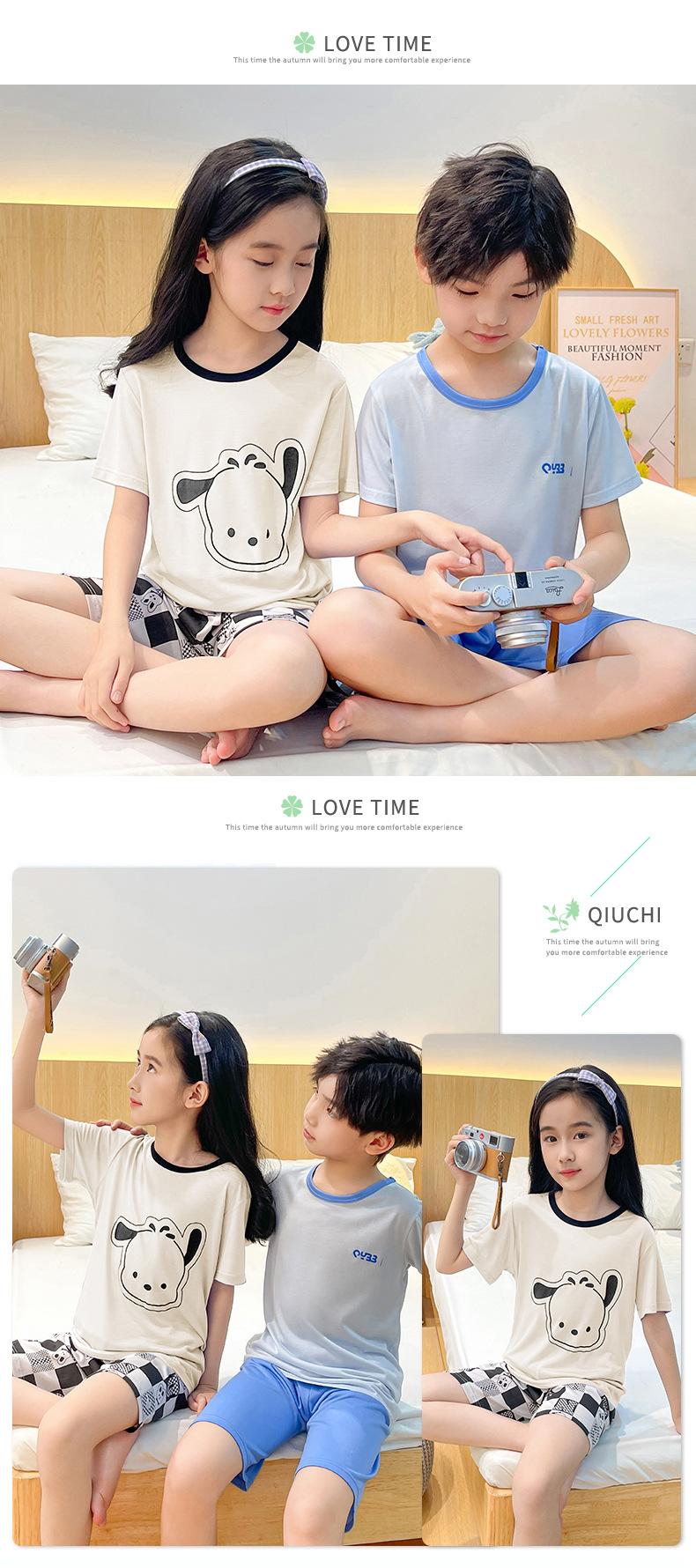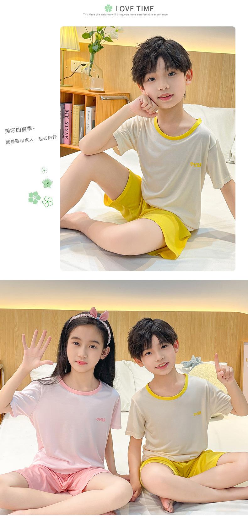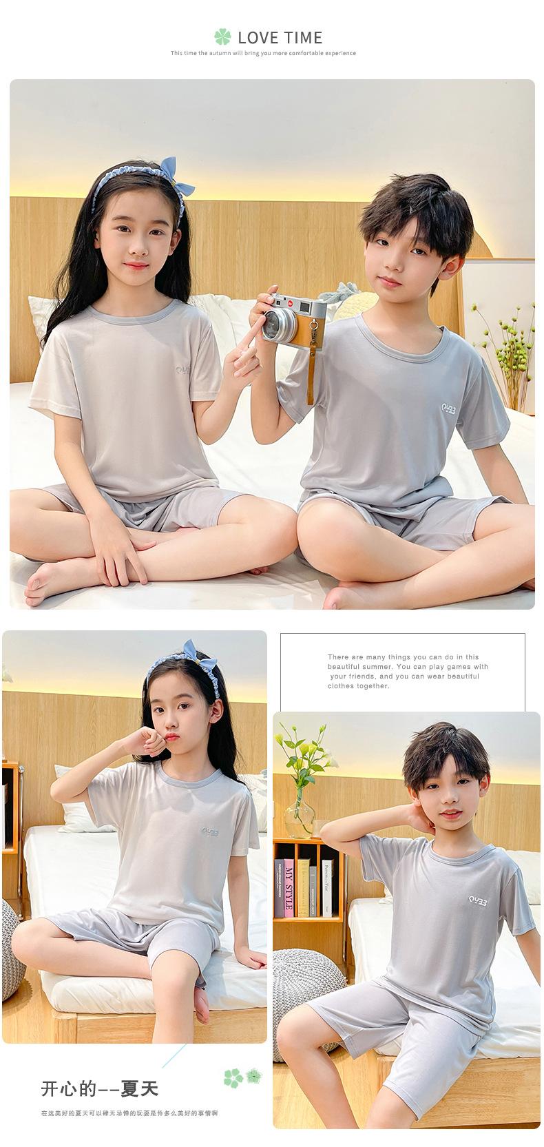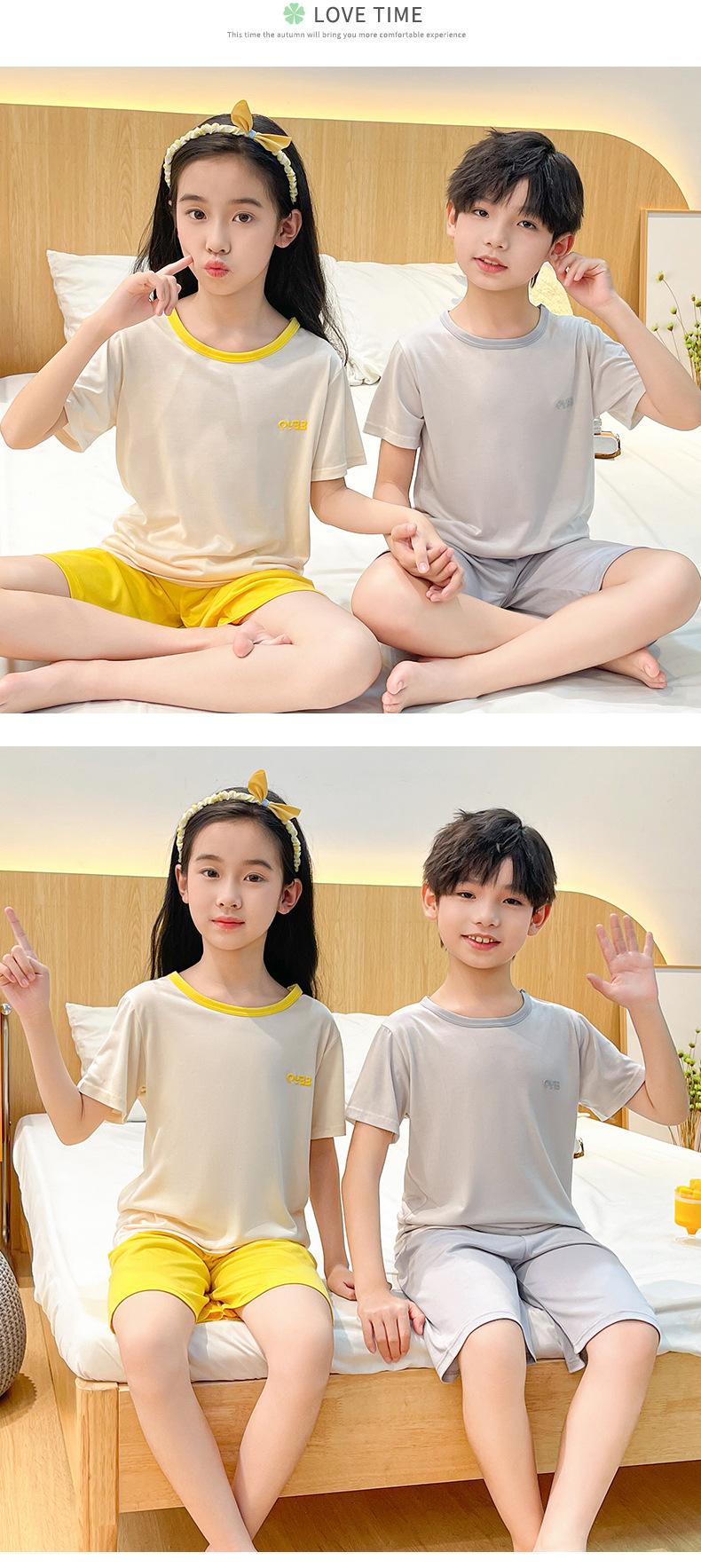 Pijamas para niños, de manga corta, de verano, finos, con aire acondicionado, para niños de mediana y mayor edad, ropa de casa para bebés.
