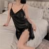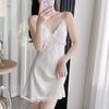 Pijama sexy de mariposa blanca para mujer, de seda helada, fino, de verano, de color liso, con escote en V y encaje.