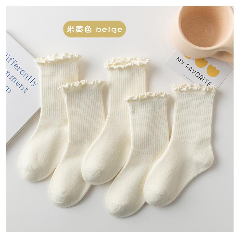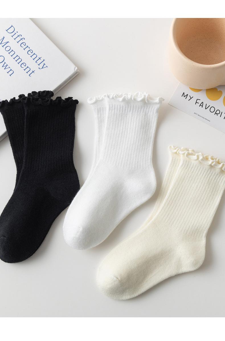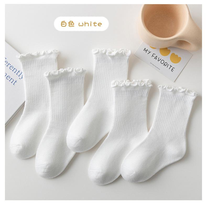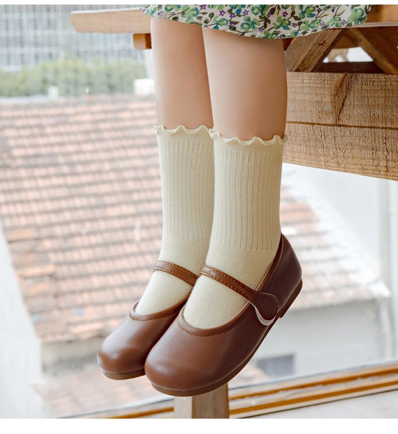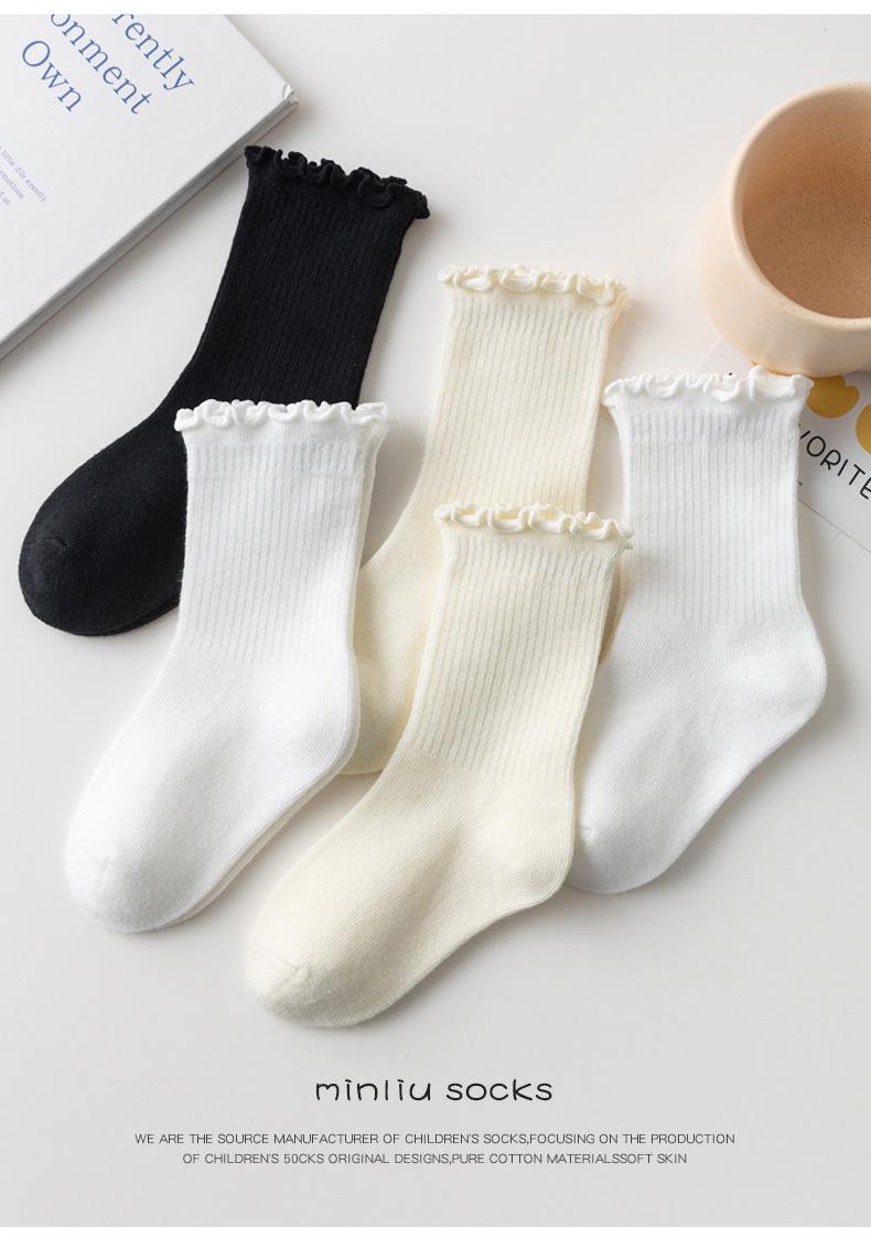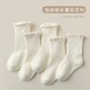 Calcetines infantiles de otoño e invierno Minqi 2023, venta al por mayor, con orejas de madera, lindas princesas, calcetines de algodón para niños medianos y grandes, calcetines de bebé con volantes blancos