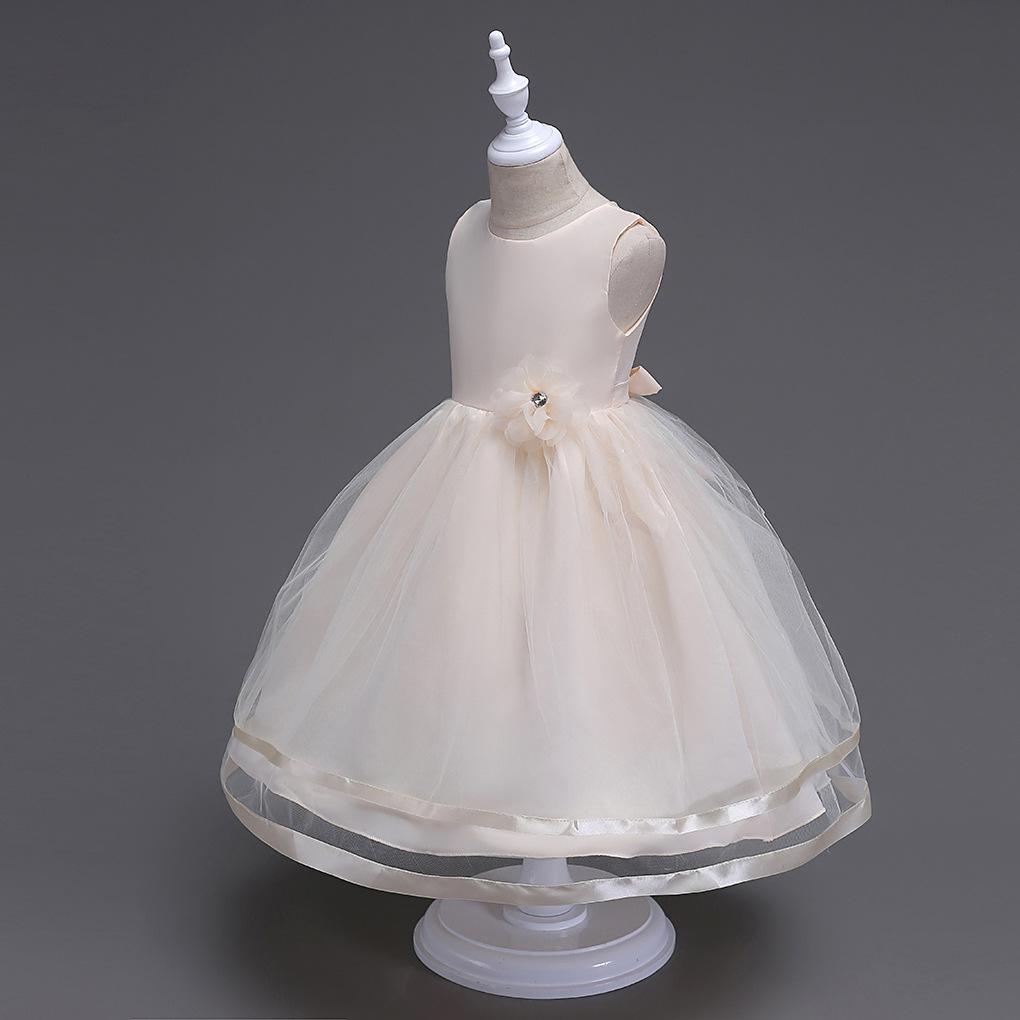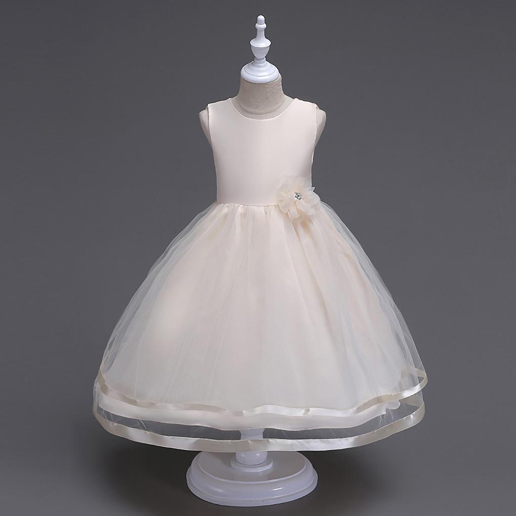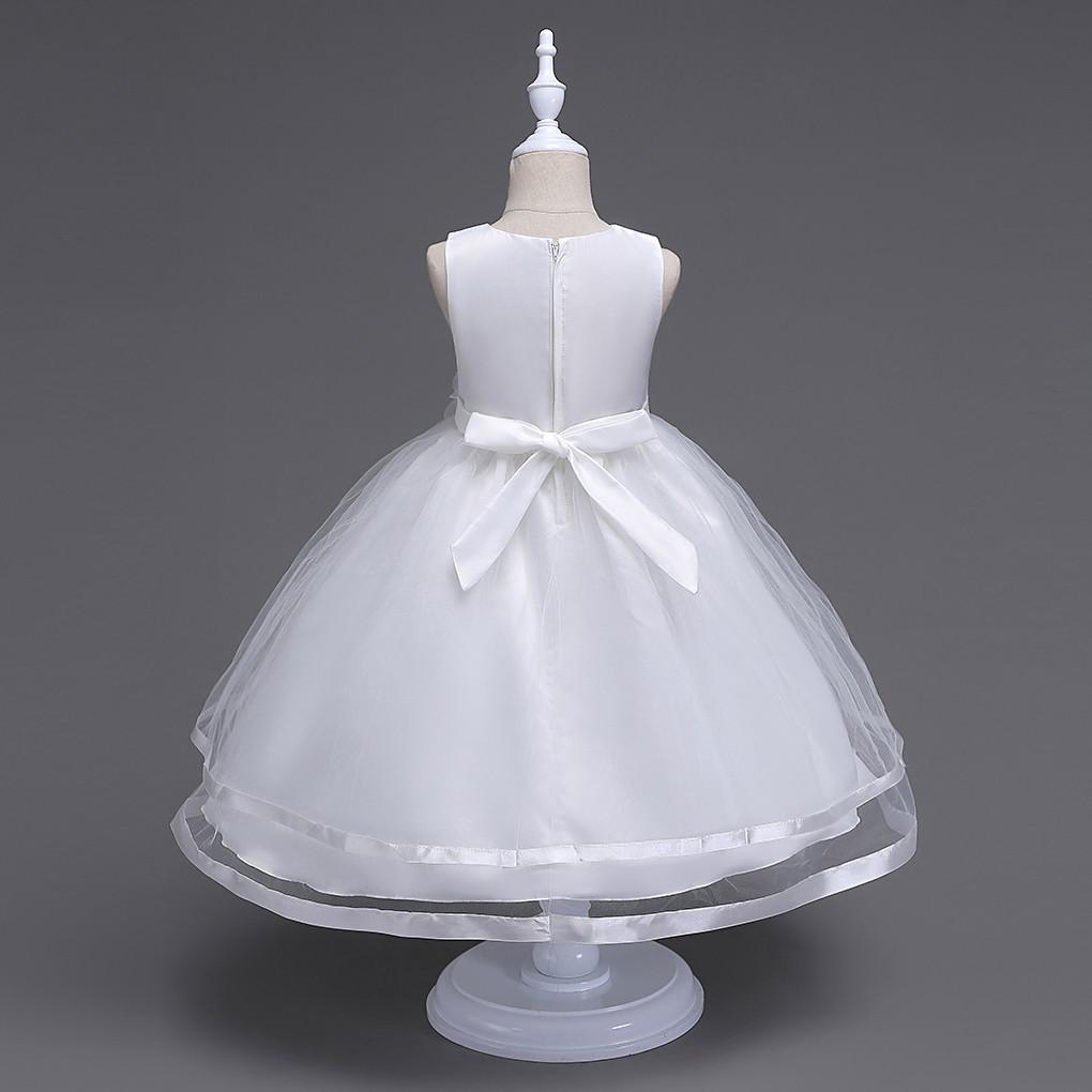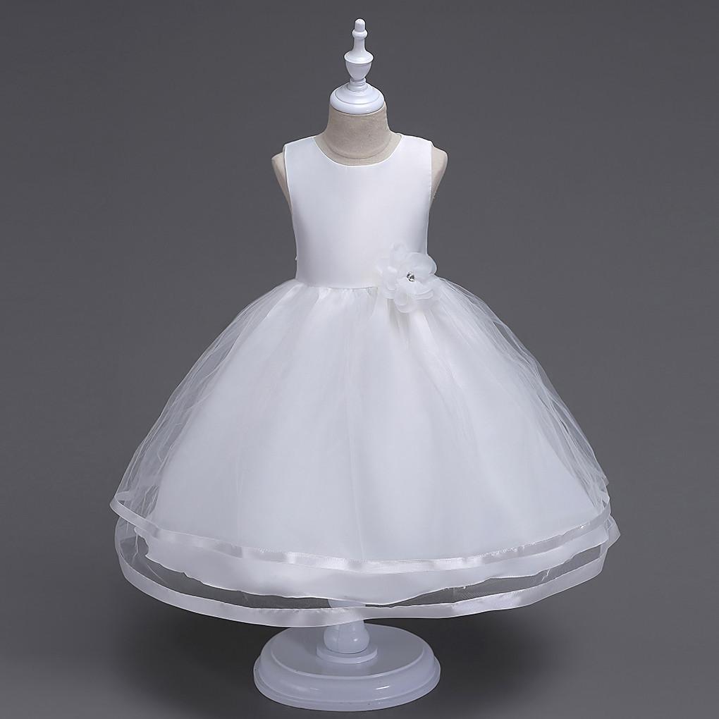 Vestido de princesa largo hasta el suelo para niñas europeas y americanas, con vuelo, para niñas medianas y grandes, vestido de novia blanco sin mangas para niñas de flores