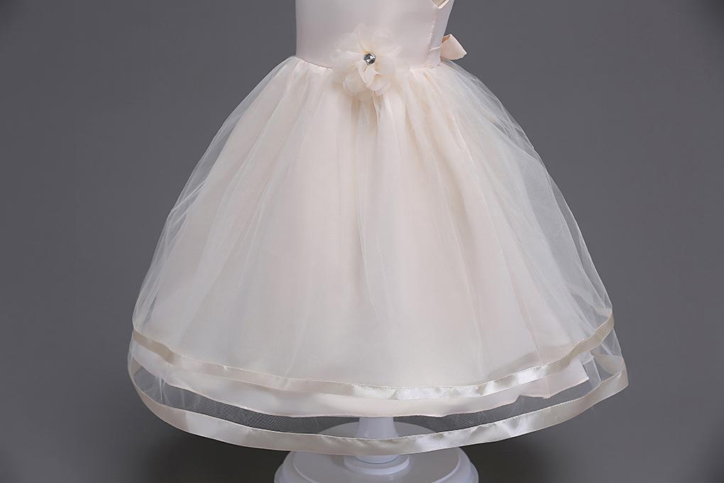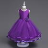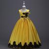 Vestido largo de malla de manga corta para niñas europeas y americanas, falda para niñas medianas y grandes, vestido de princesa de una pieza con borde cruzado, nuevo