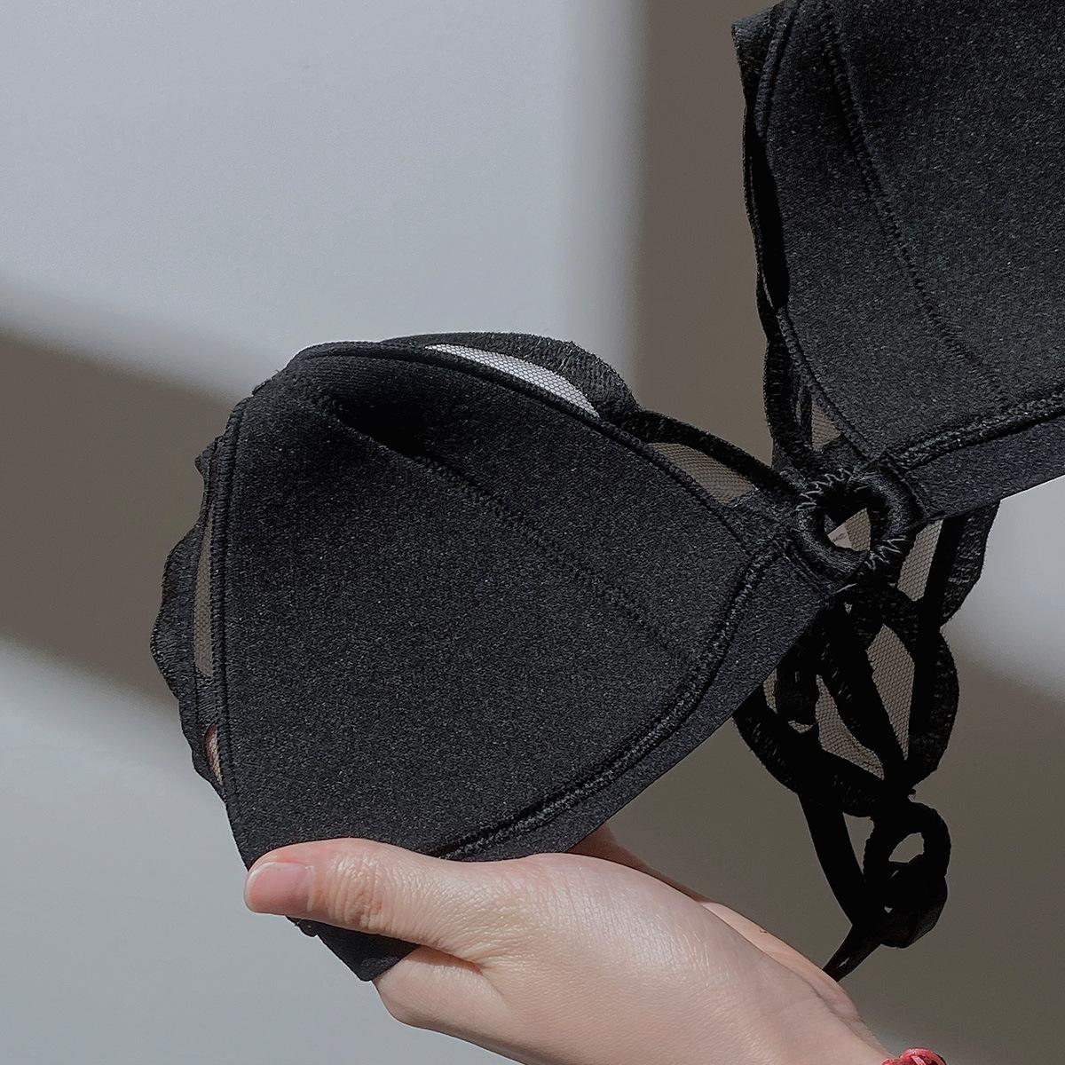 Venta directa de fábrica, nuevo conjunto de sujetador sexy de encaje pequeño con pecho grande y ropa interior hueca ultrafina para mujer |